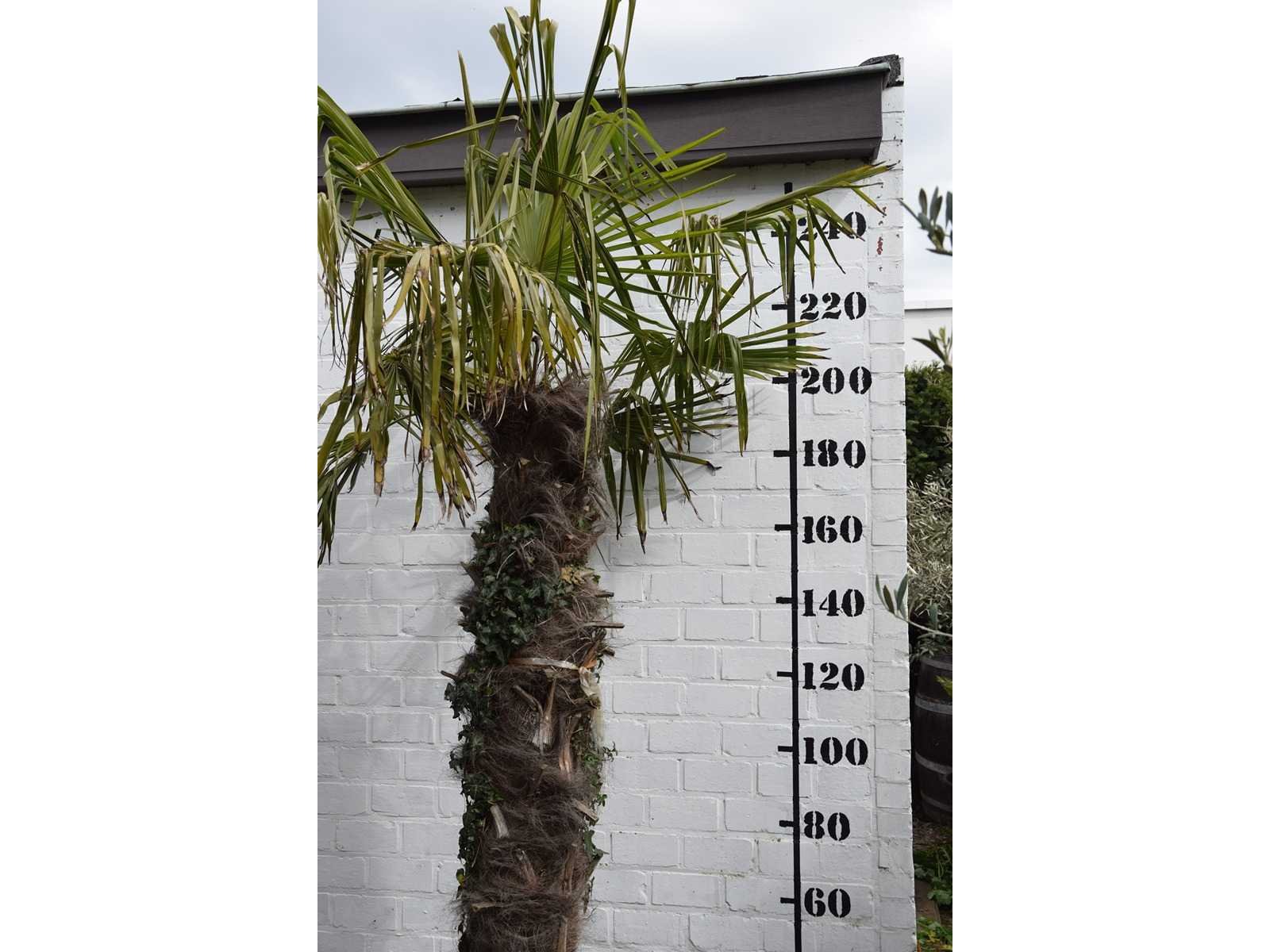 No Type: Chinese Waaierpalm Latijnse benaming: Trachycarpus Fortunei Hoogte ca.: 260cm In pot: true Stamdikte: 15cm