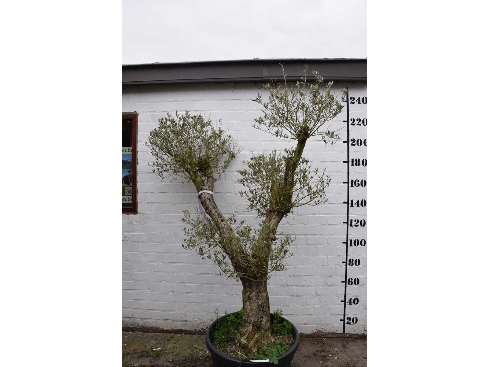 No Type: olive split old skin Latijnse benaming: olea europaea spanje Hoogte ca.: 240cm In pot: true Stamdikte: 27.5cm Leeftijd: 45 Eigen gewicht: 85