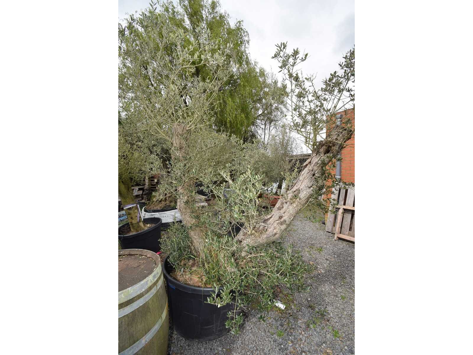 No Type: split old skin dubbel Latijnse benaming: olea europaea Hoogte ca.: 250cm In pot: true Stamdikte: 22cm Leeftijd: 112 Eigen gewicht: 145