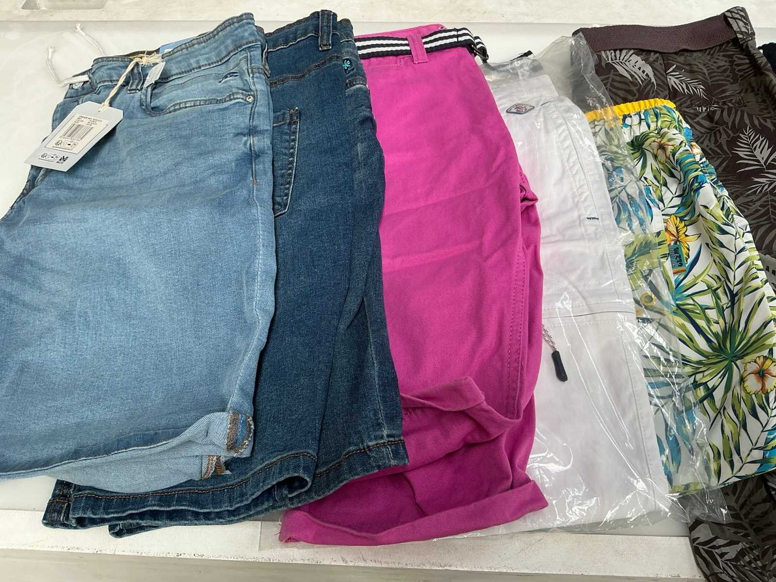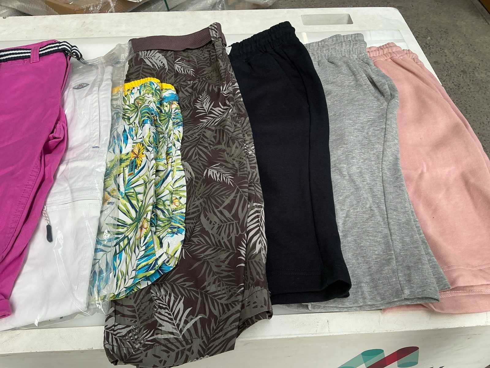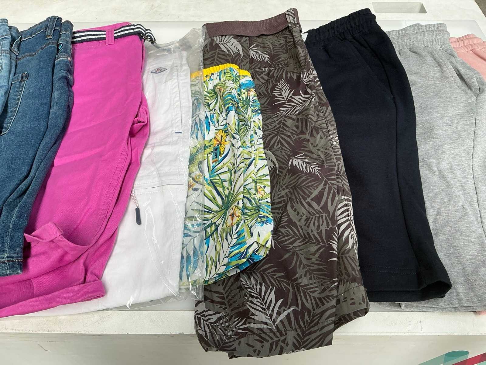 In diverse uitvoeringen waaronder jeans- en joggingsshorten. In diverse kleuren en maten waaronder 28/38, 30/40, 32/42, 34/44 en 36/46. Liggende in 2x doos. Nee Merk: MZ72 en T-Traxx