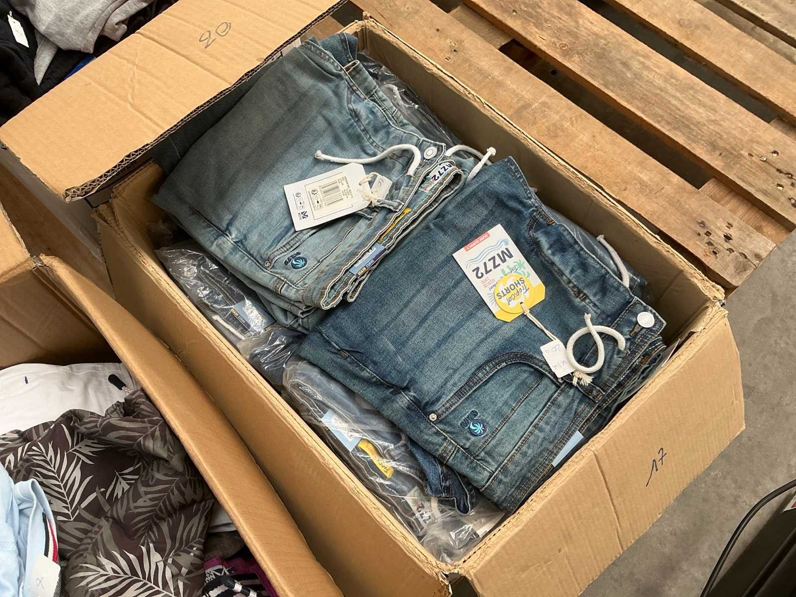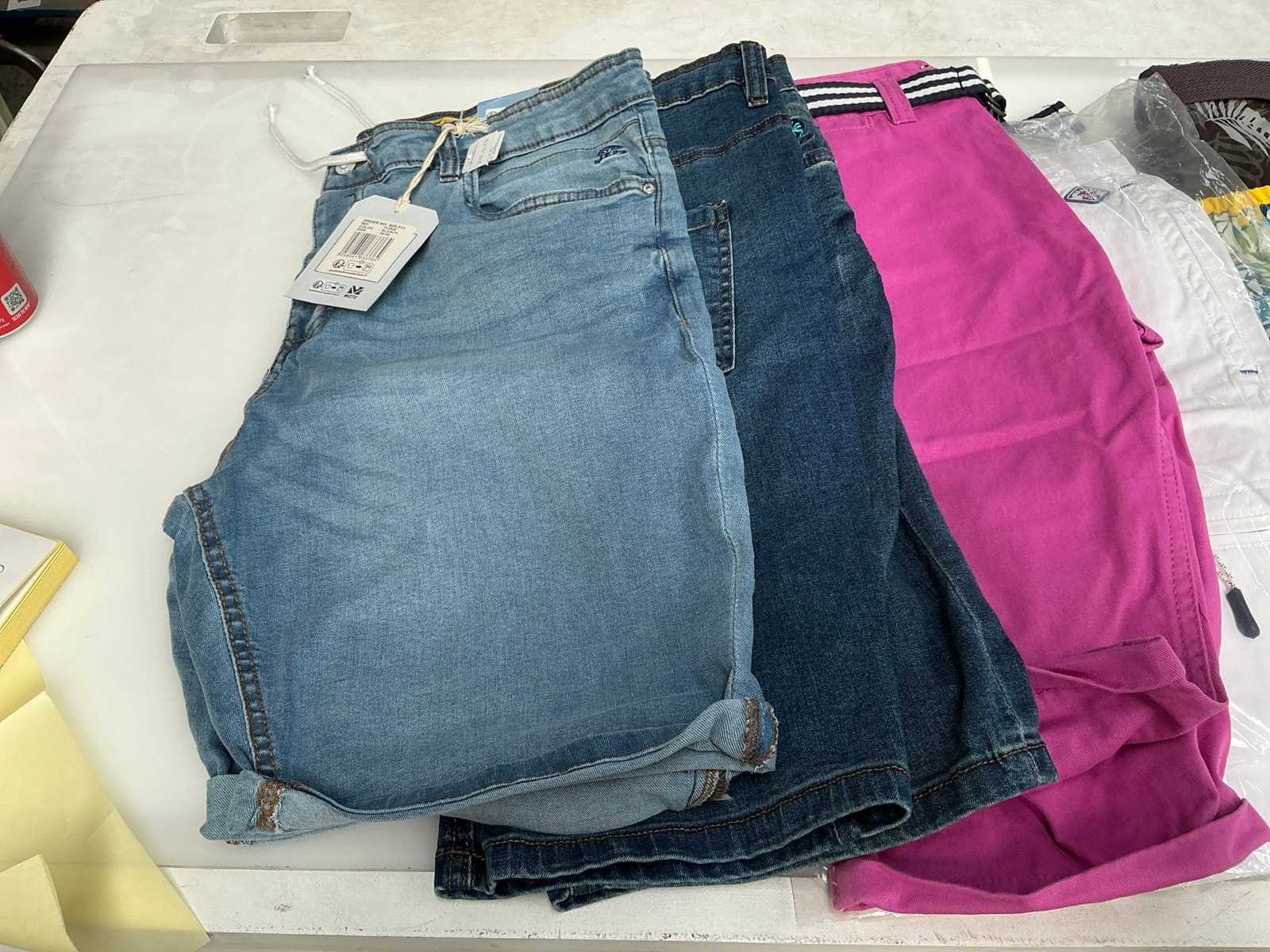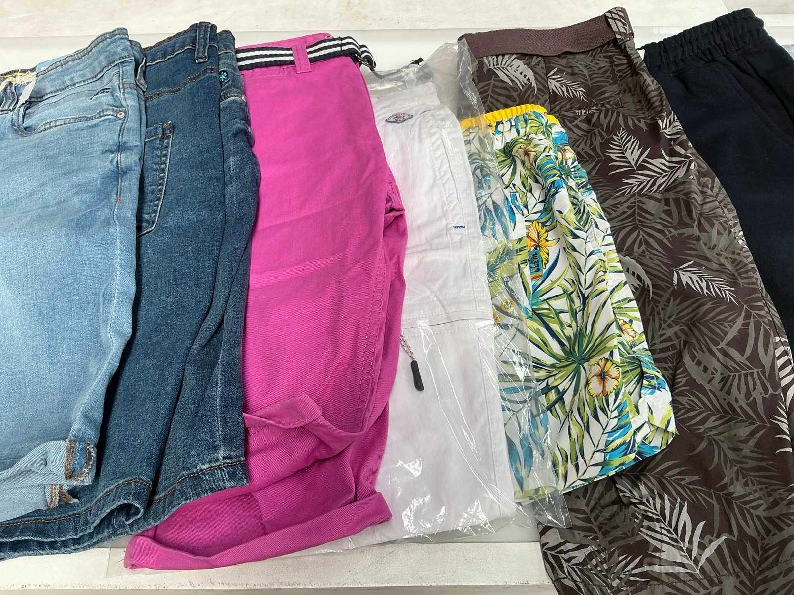 In diverse uitvoeringen waaronder jeans- en joggingsshorten. In diverse kleuren en maten waaronder 28/38, 30/40, 32/42, 34/44 en 36/46. Liggende in 2x doos. Nee Merk: MZ72 en T-Traxx