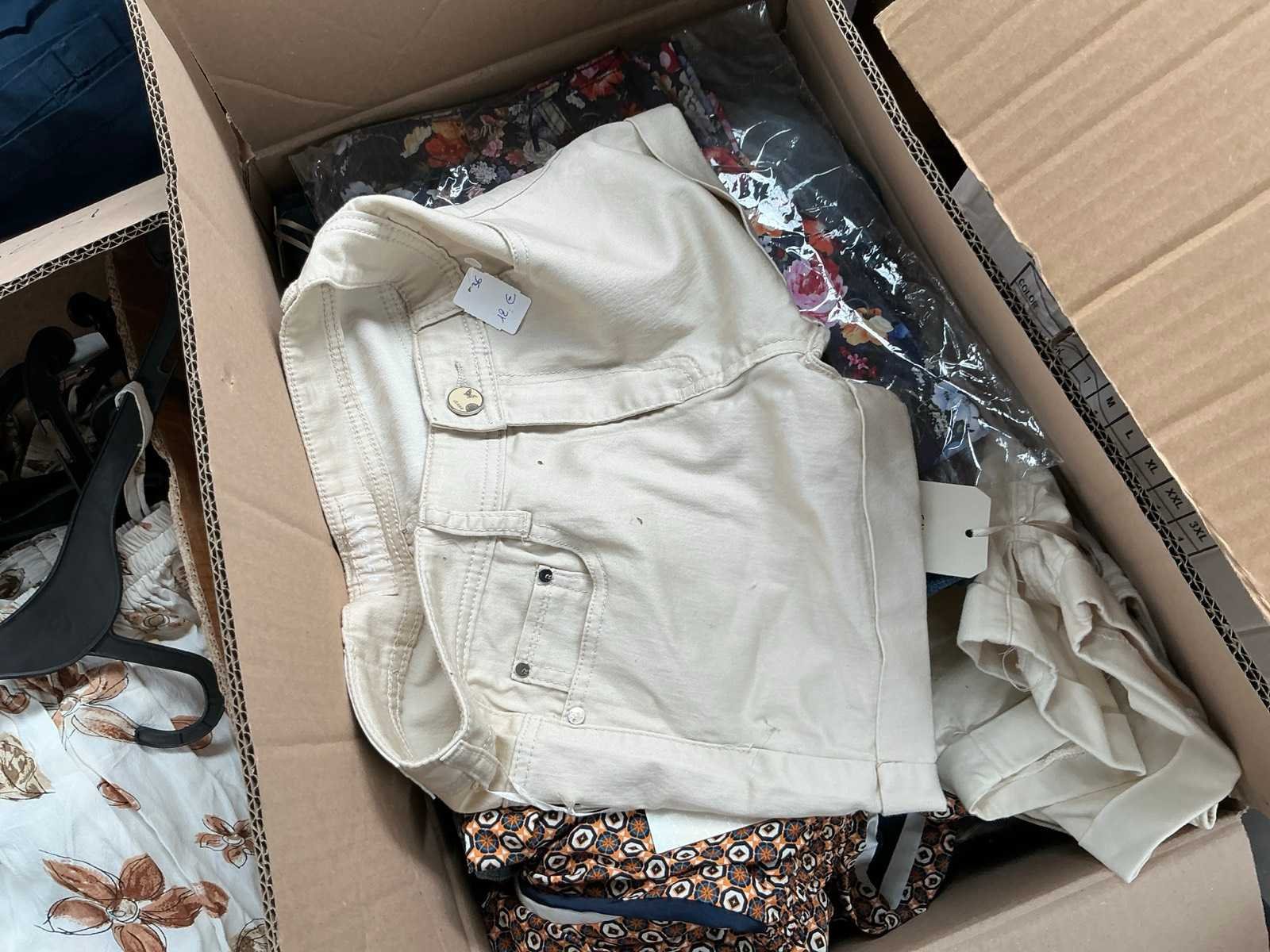 Waaronder circa. 50 damesshorts, circa. 68 jeansbroeken, circa 50 shorts en truien en circa 66 herenshorts, allen in diverse kleuren en maten Nee