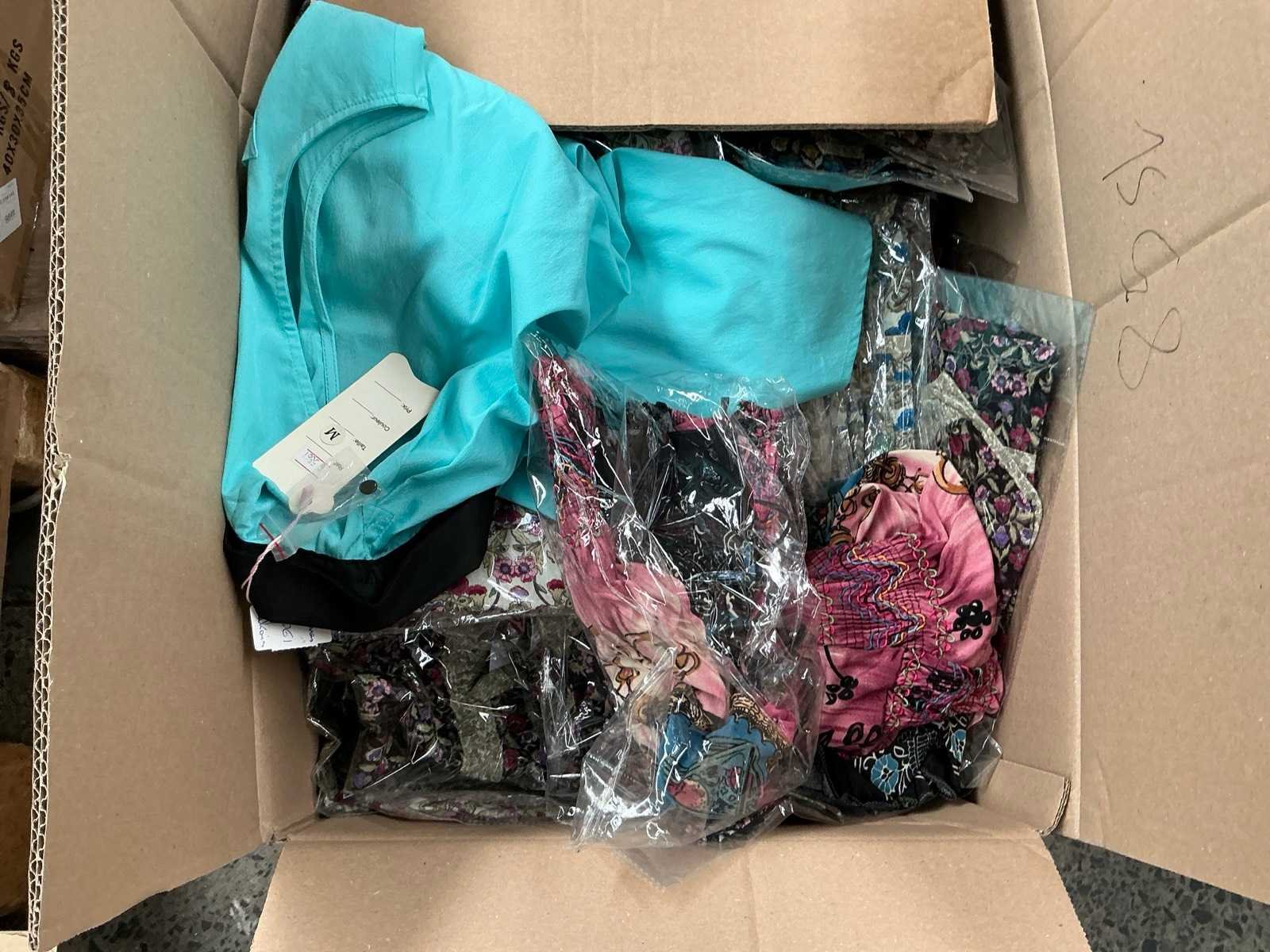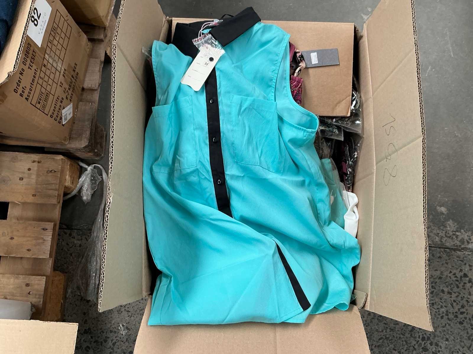 Waaronder 38 diverse hemden, 13 pulls en witte T-shirts, circa 85 diverse bodies en jurken G-ladies, en 14 diverse jassen MZ72 Nee Merk: MZ72