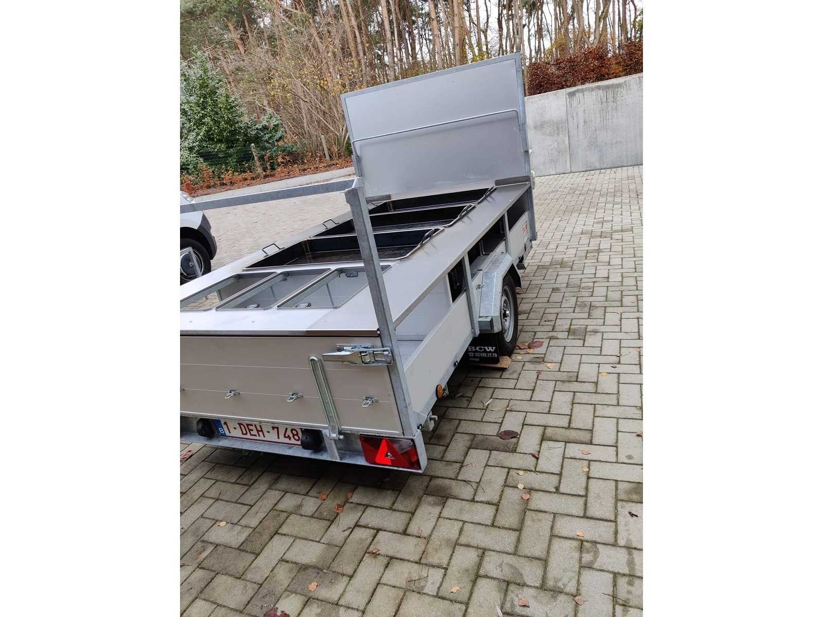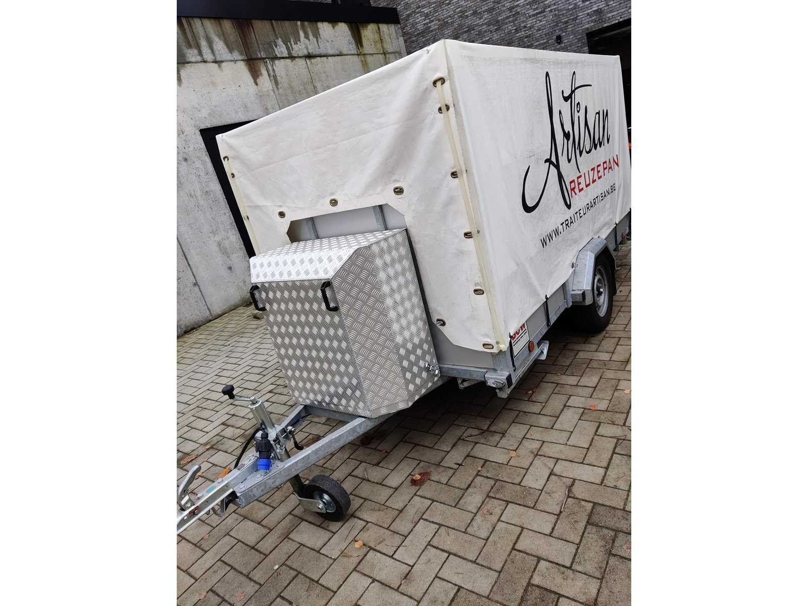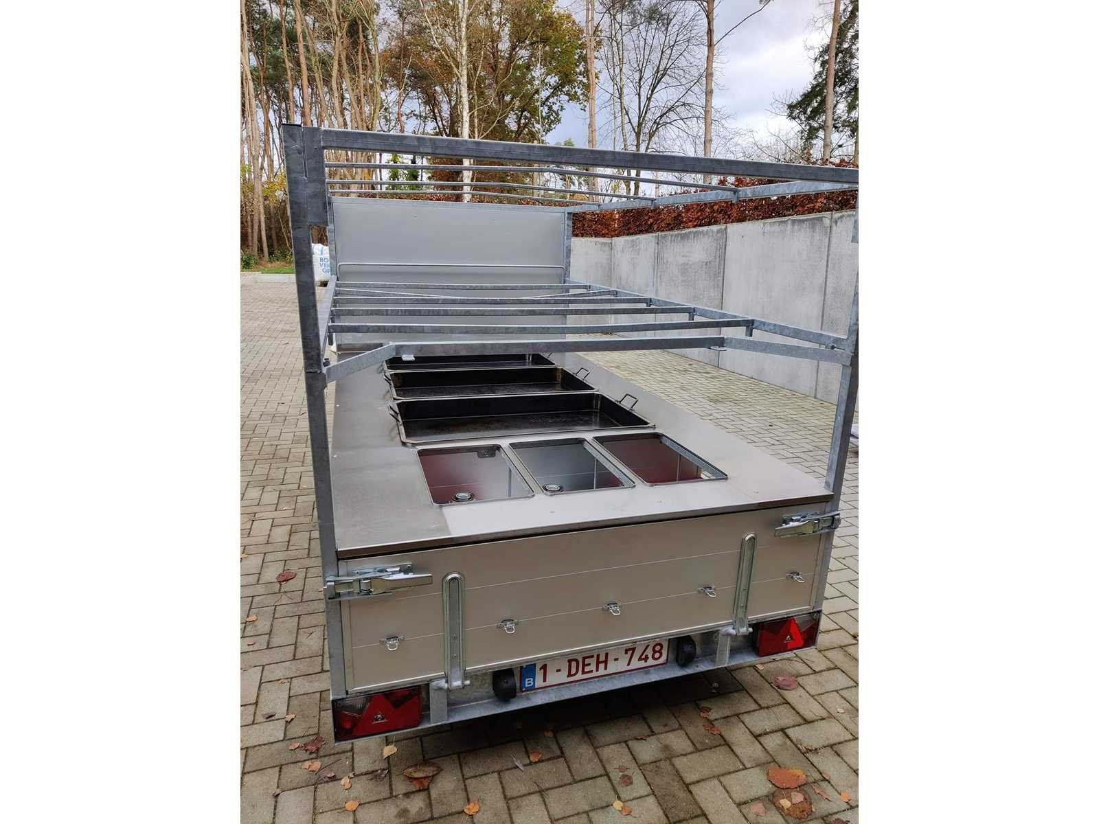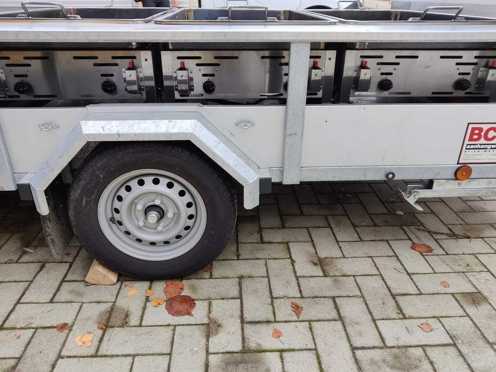 Enkelas, voorzien van alle verlichting en 13-poligestekker, lengte plm zonder trekhaak 3m x breedte 1m80 x hoogte 1m80, voorzien van afneembare huif en tussenverdieping voor stockage, ingericht als mobiele keuken en voorzien van 12 branders op propaan met 3 grote plaatstalenpannen, voorzien van houders/ruimte voor 3 bain-maries en opslagruimte achteraan, onderaan voorzien van 4 uitdraaisteunen (1 op elke hoek), op trekhaak koffer voor 2 propaangasflessen, aanhangwagen is volledig gegalvaniseerd en handmatig/uniek gemaakt door BCW aanhangwagens. Vertrekkensklaar. Nee Merk: BCW Type: -750kg Chassisnummer: YA9D11E75 14 241122 Aantal assen: 1 Laadbak afmeting l: 290cm Laadbak afmeting b: 178cm Ledig gewicht: 700kg Laadvermogen: 750kg Datum eerste toelating: 9/8/2013 Kentekenpapieren compleet?: false Hoogte: 187cm Lengte: 424cm Breedte: 178cm Zelf rijdend exporteren: Mogelijk