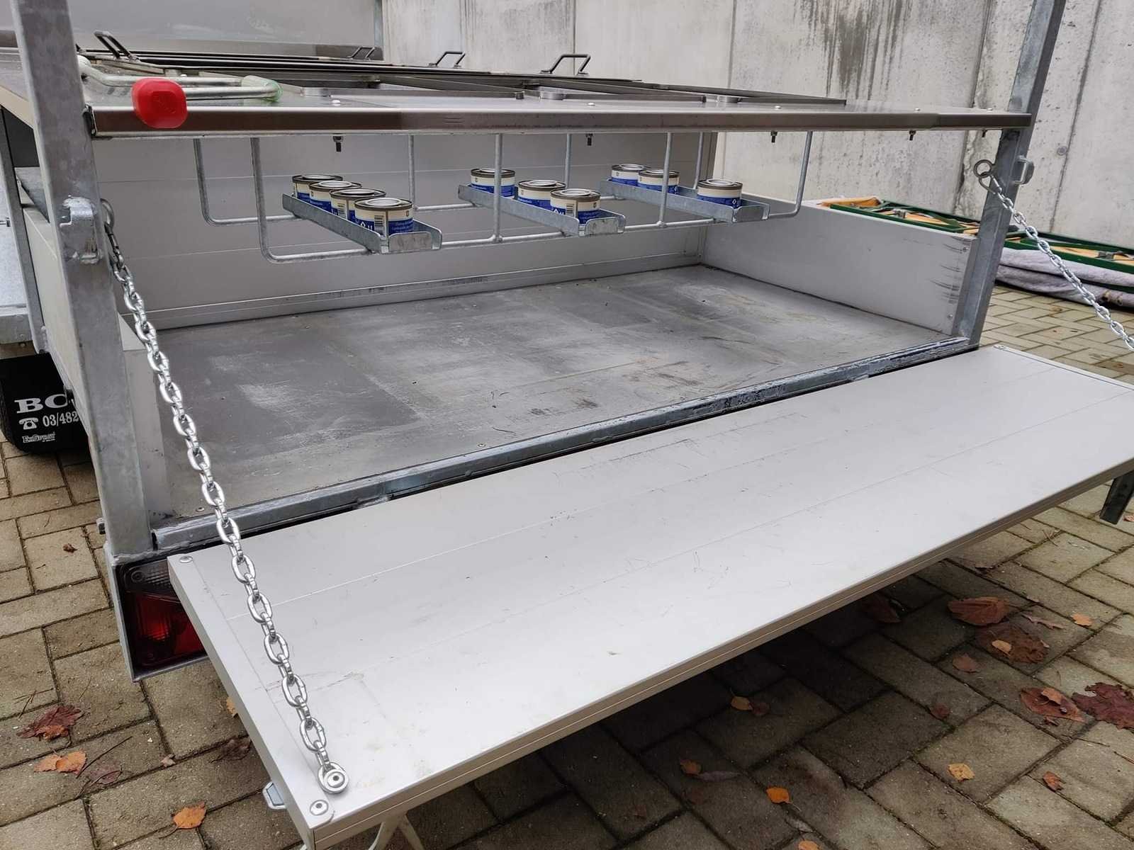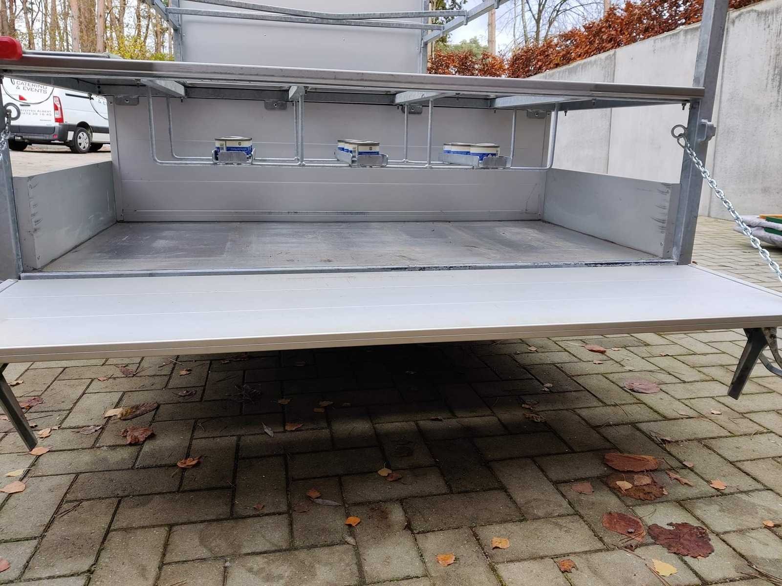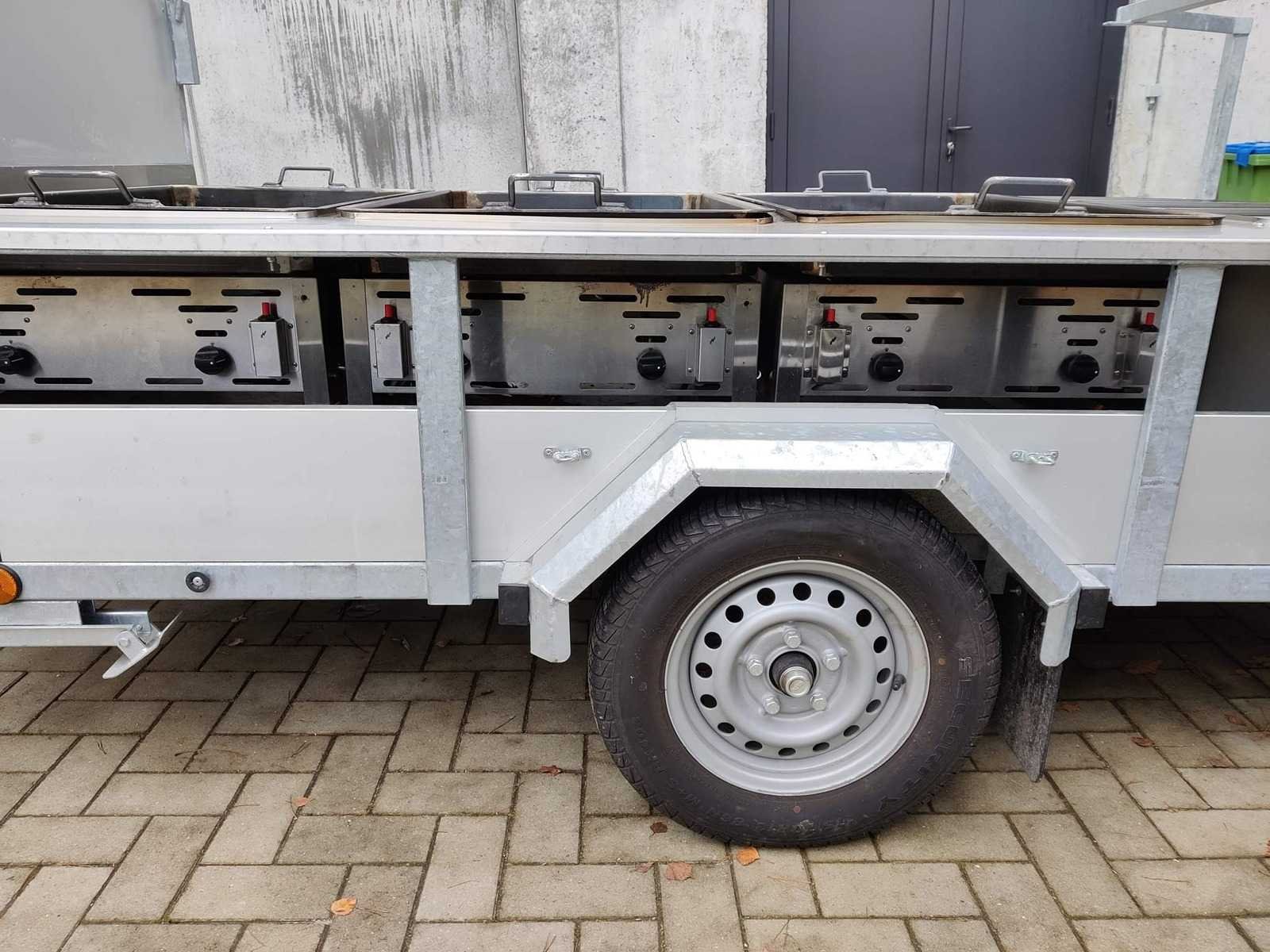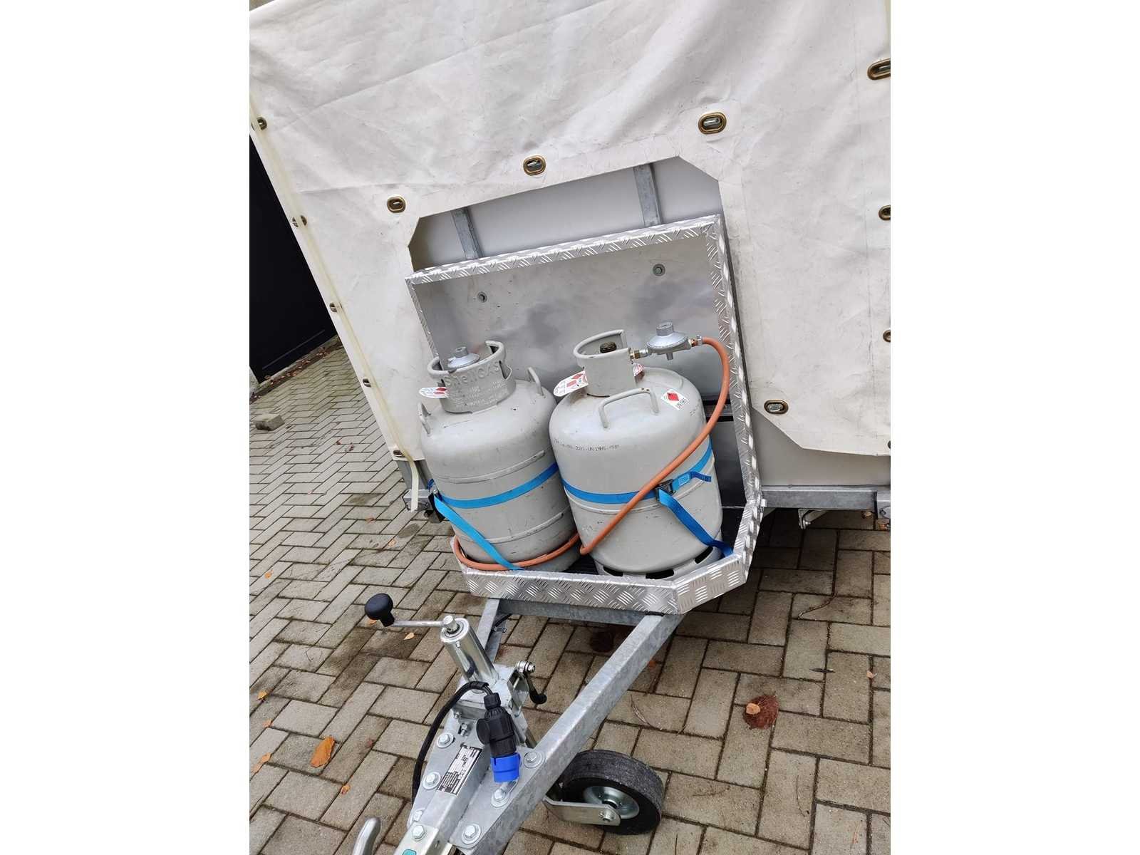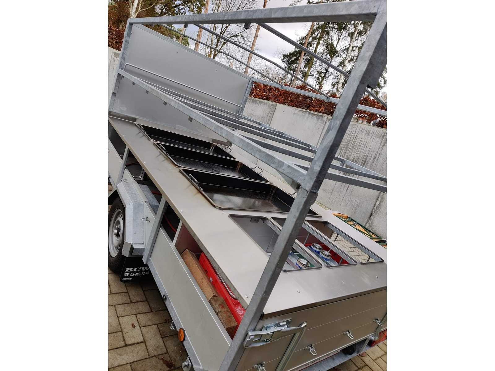 Enkelas, voorzien van alle verlichting en 13-poligestekker, lengte plm zonder trekhaak 3m x breedte 1m80 x hoogte 1m80, voorzien van afneembare huif en tussenverdieping voor stockage, ingericht als mobiele keuken en voorzien van 12 branders op propaan met 3 grote plaatstalenpannen, voorzien van houders/ruimte voor 3 bain-maries en opslagruimte achteraan, onderaan voorzien van 4 uitdraaisteunen (1 op elke hoek), op trekhaak koffer voor 2 propaangasflessen, aanhangwagen is volledig gegalvaniseerd en handmatig/uniek gemaakt door BCW aanhangwagens. Vertrekkensklaar. Nee Merk: BCW Type: -750kg Chassisnummer: YA9D11E75 14 241122 Aantal assen: 1 Laadbak afmeting l: 290cm Laadbak afmeting b: 178cm Ledig gewicht: 700kg Laadvermogen: 750kg Datum eerste toelating: 9/8/2013 Kentekenpapieren compleet?: false Hoogte: 187cm Lengte: 424cm Breedte: 178cm Zelf rijdend exporteren: Mogelijk