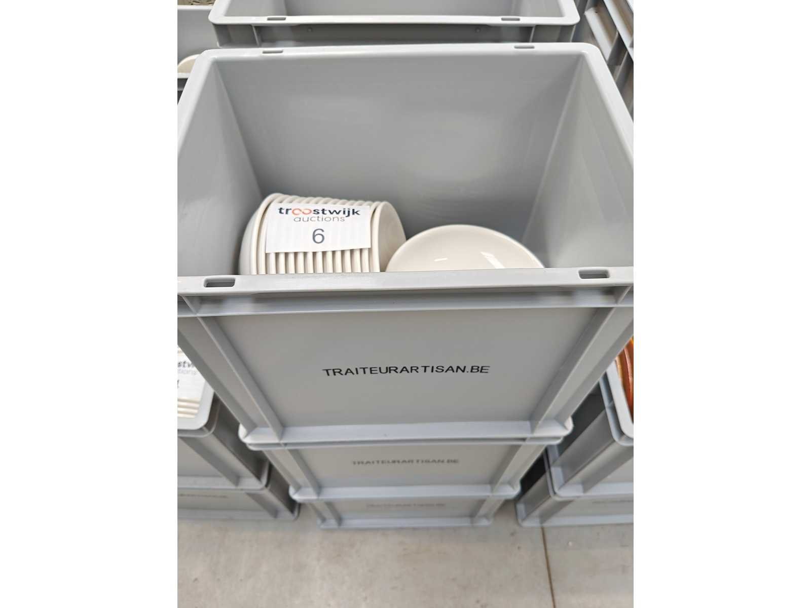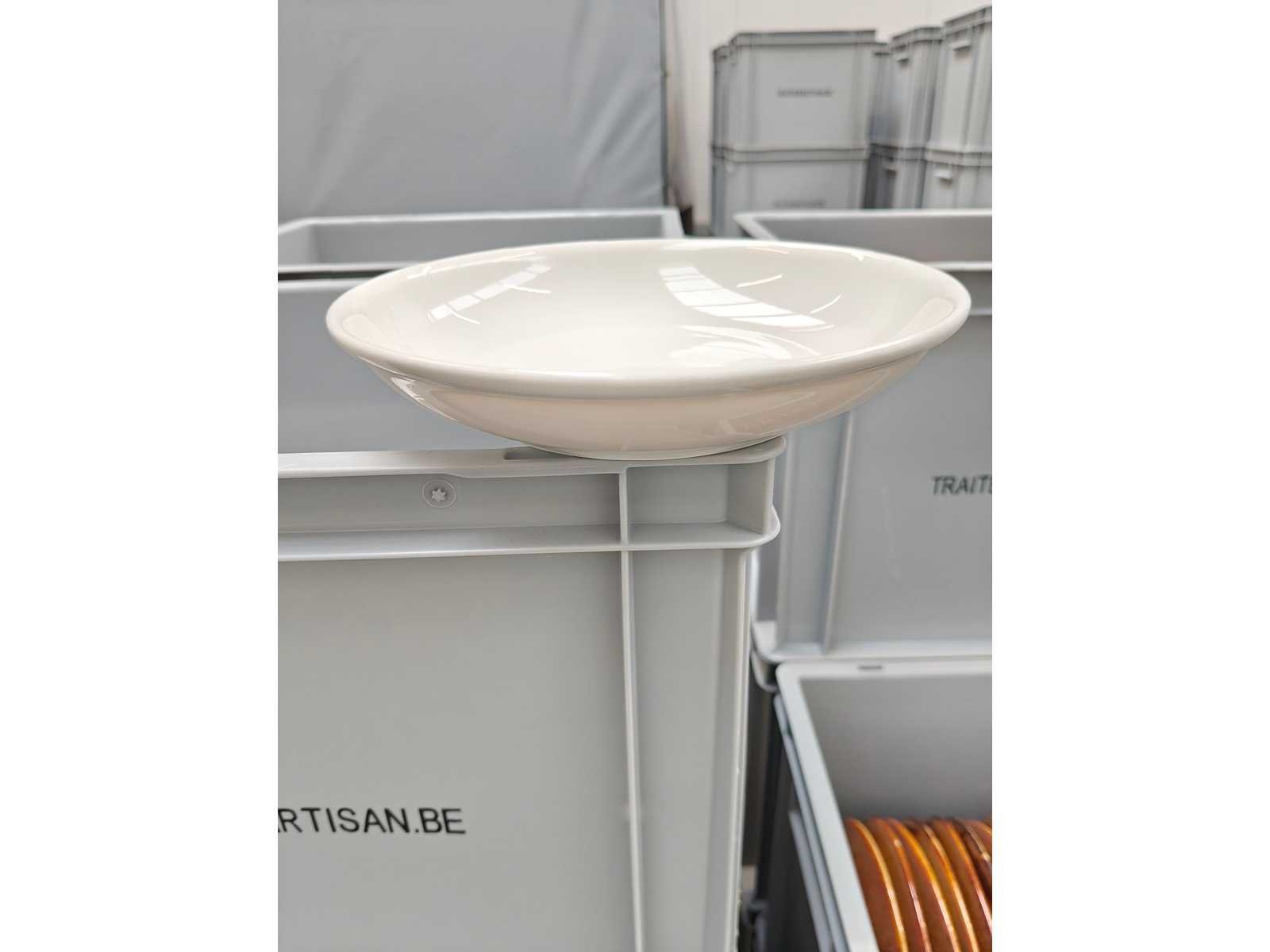 3 transportbakken inhoudende plm 88 diepe borden, kleur wit Nee Merk: Bonna Diameter ca.: 20