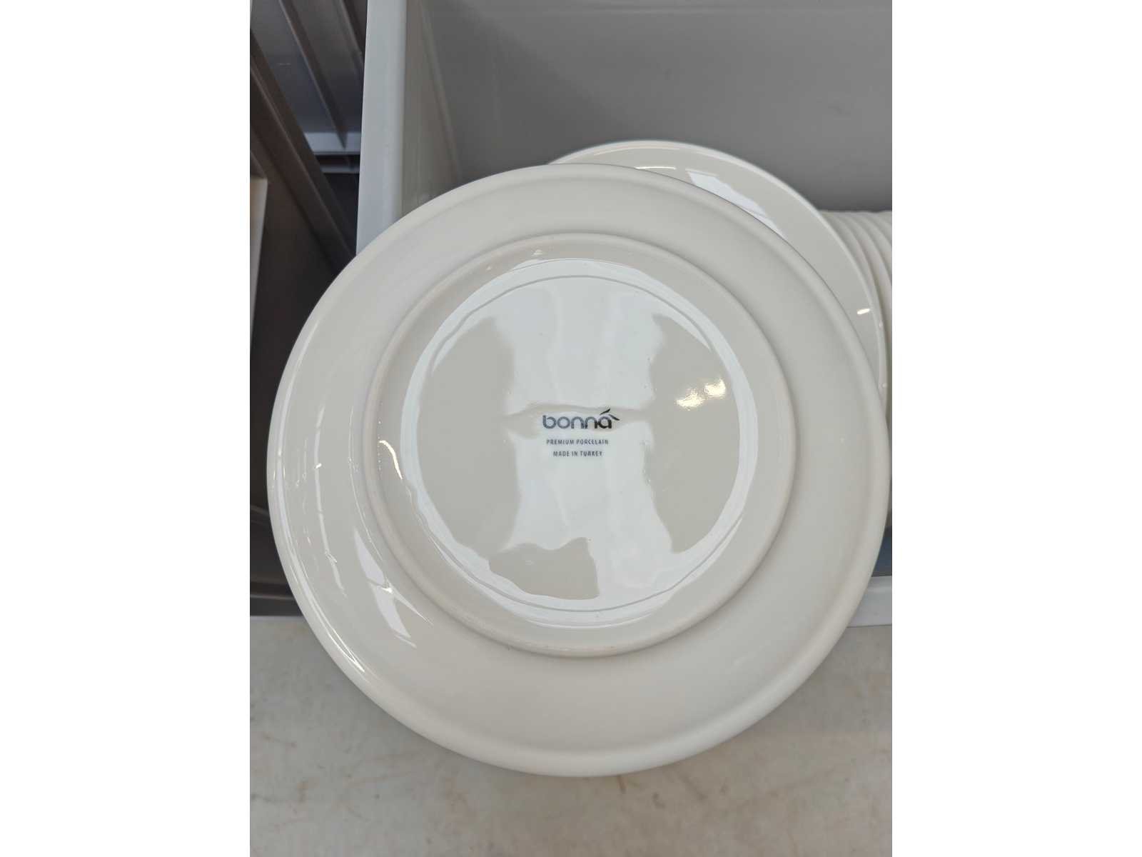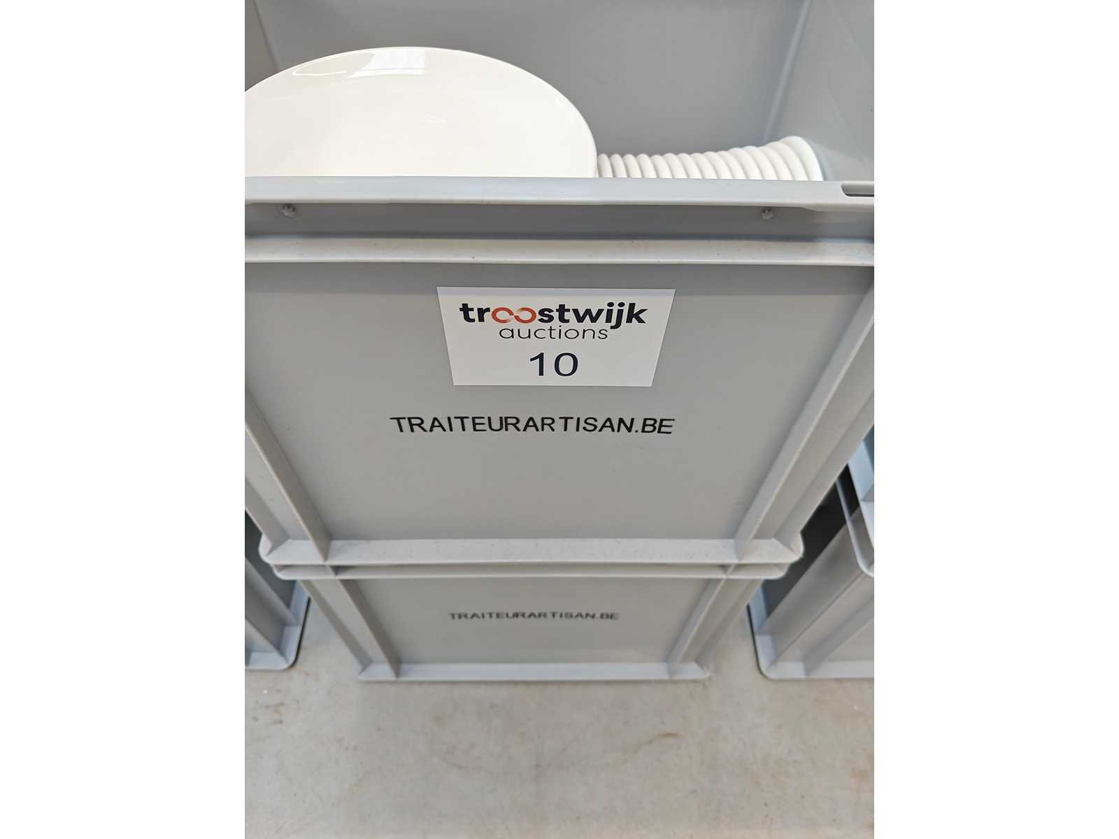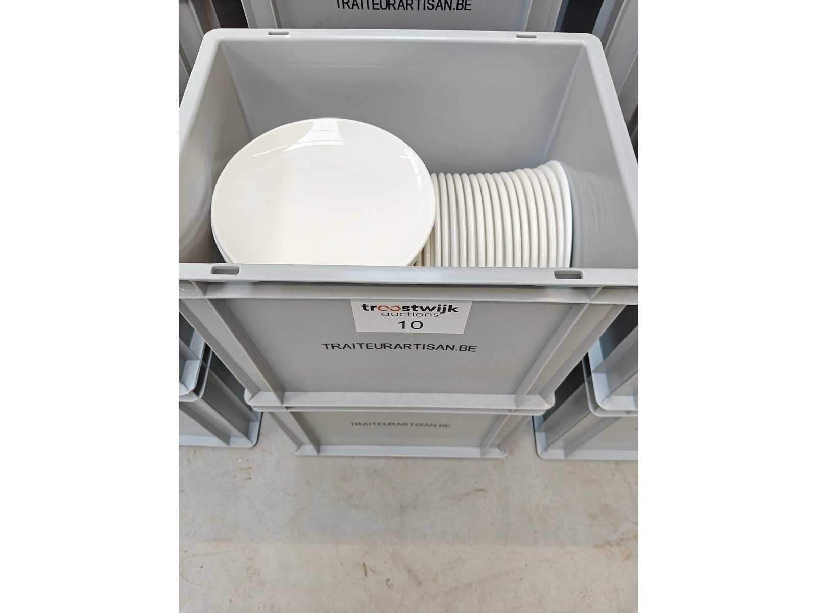 2 transportbakken inhoudende plm 90 dessertborden, kleur wit Nee Merk: Bonna Diameter ca.: 21