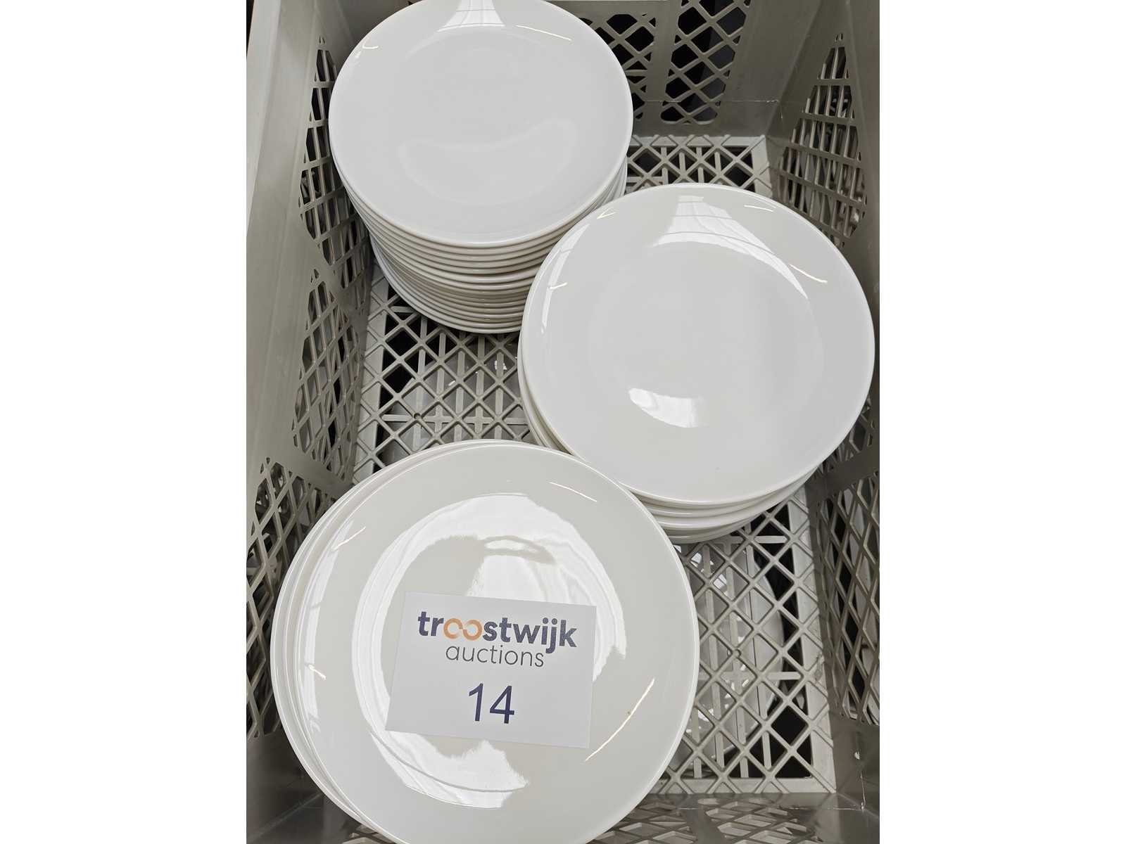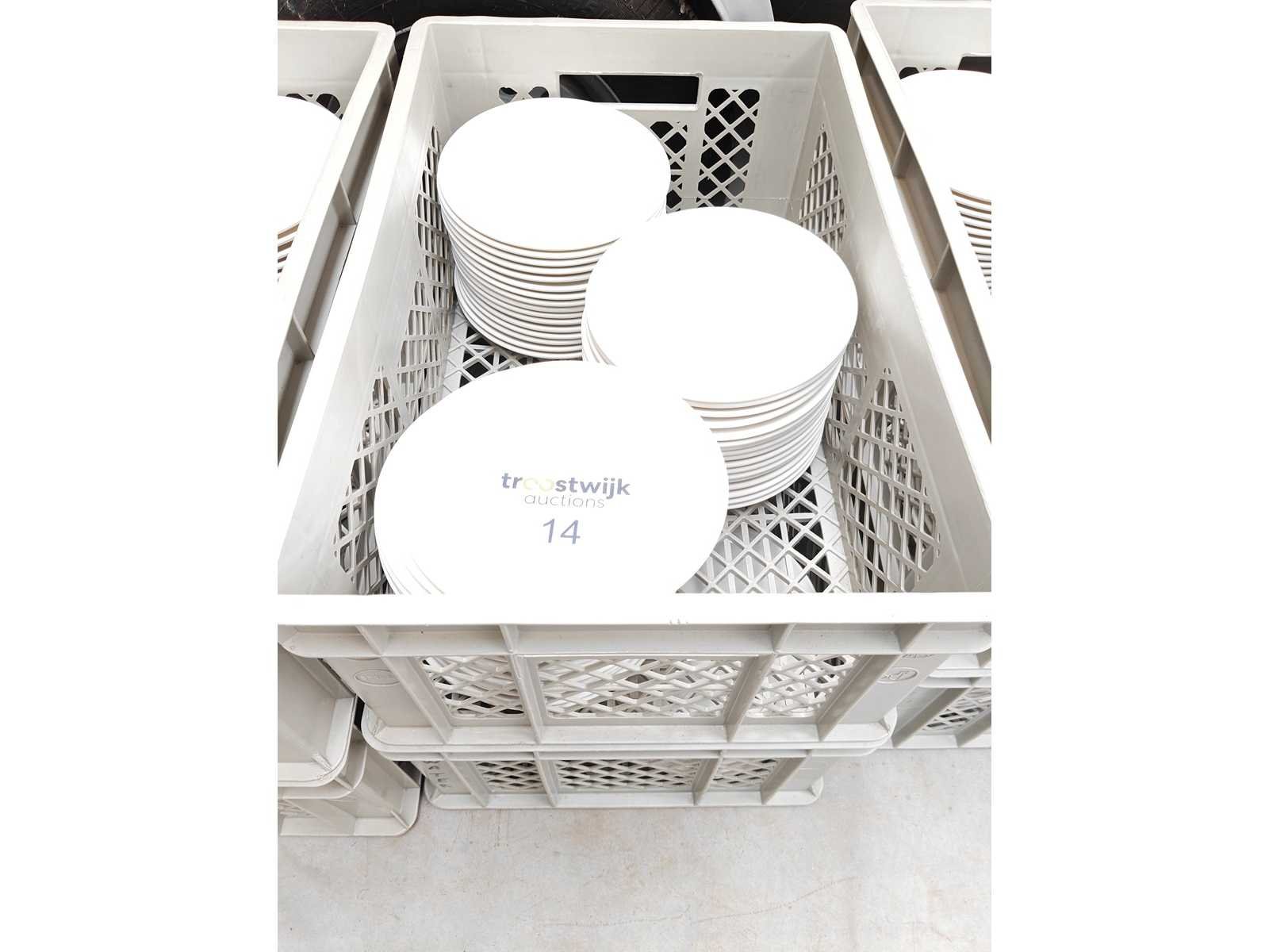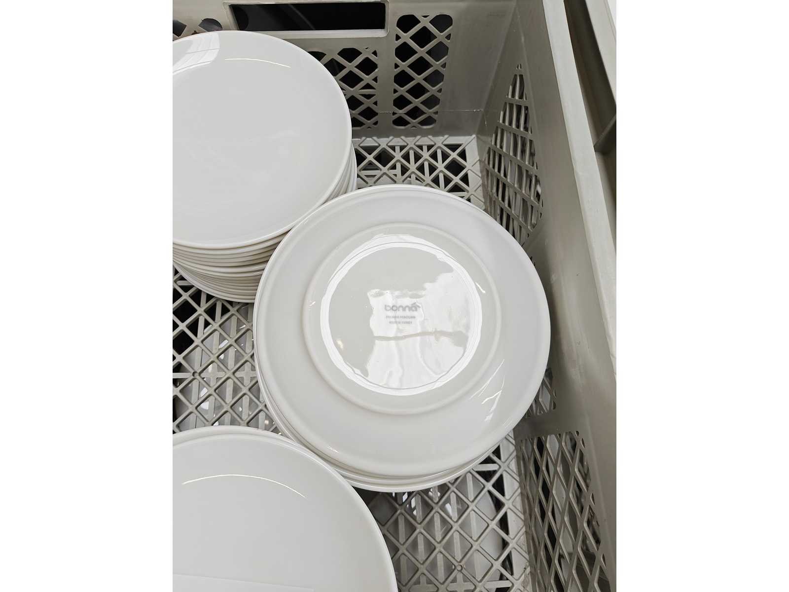 2 transportbakken inhoudende plm 100 dessertborden, kleur wit Nee Merk: Bonna Type: Dessertbord Diameter ca.: 21