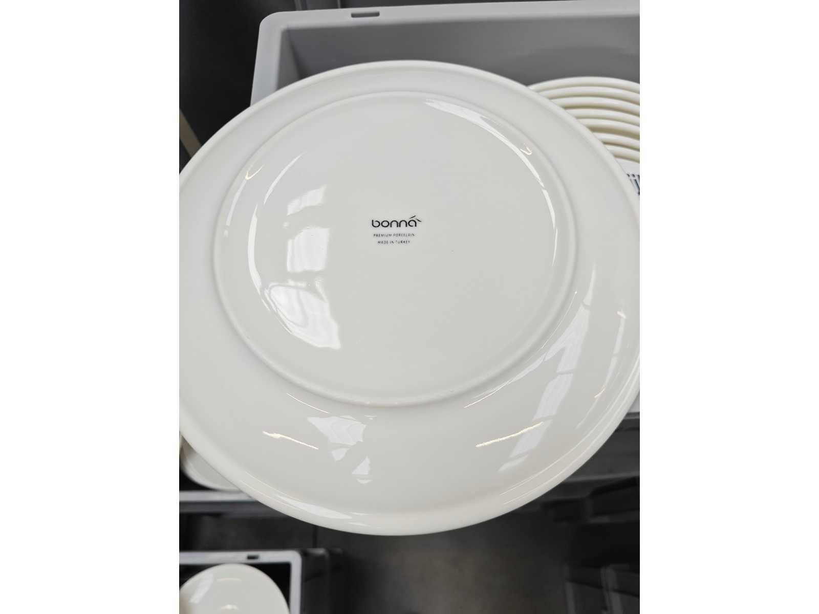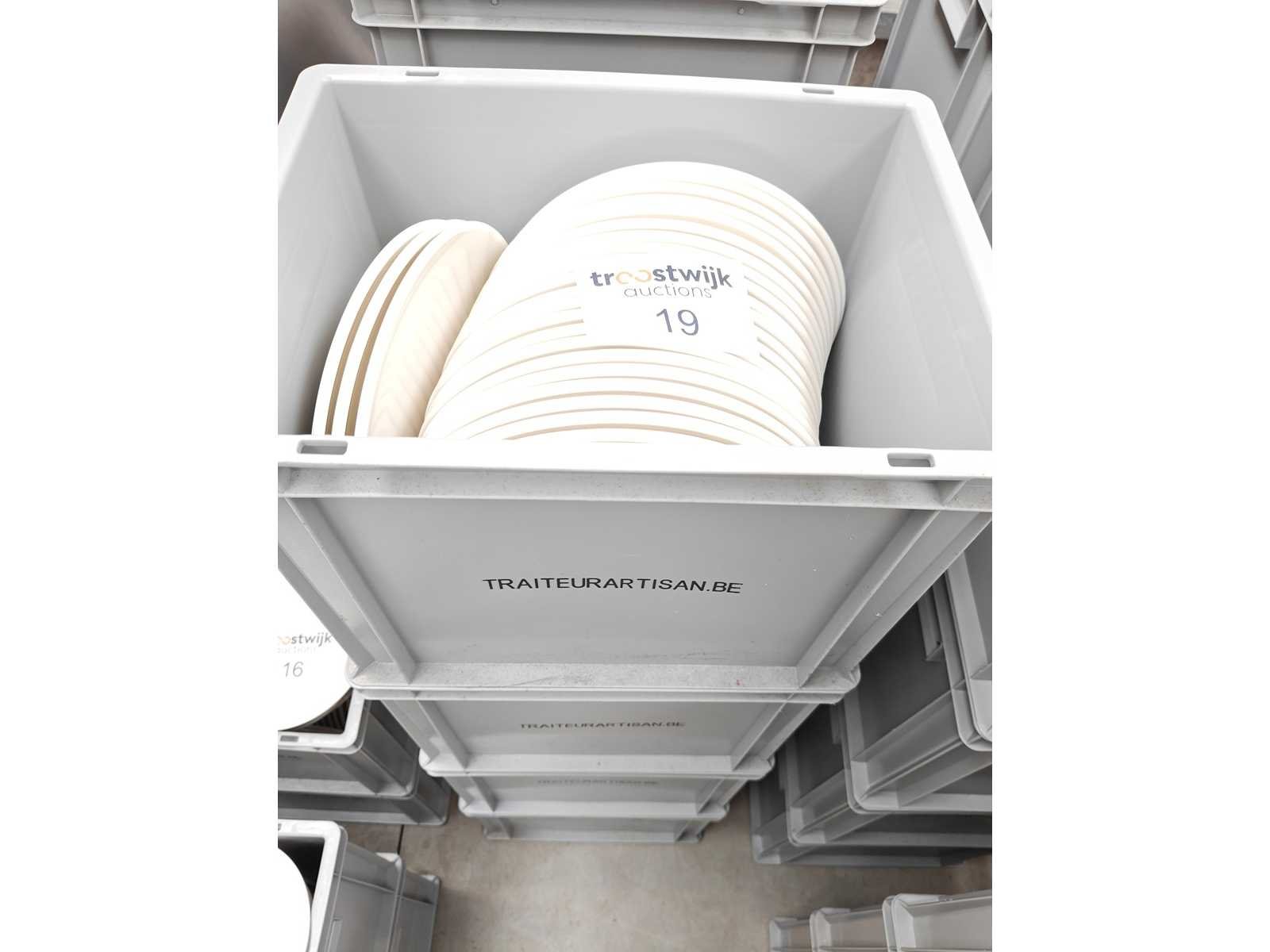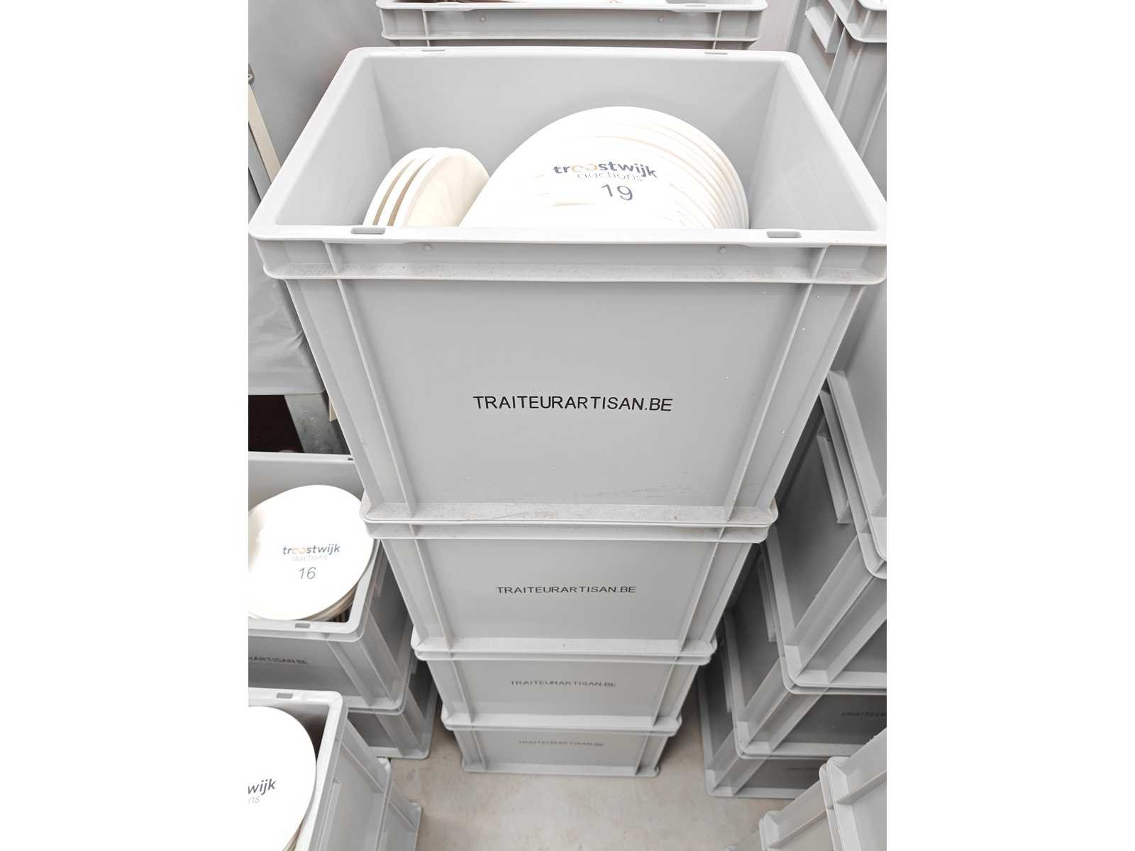 4 transportbakken inhoudende plm 100 borden, kleur wit Nee Merk: Bonna Type: Bord Diameter ca.: 27