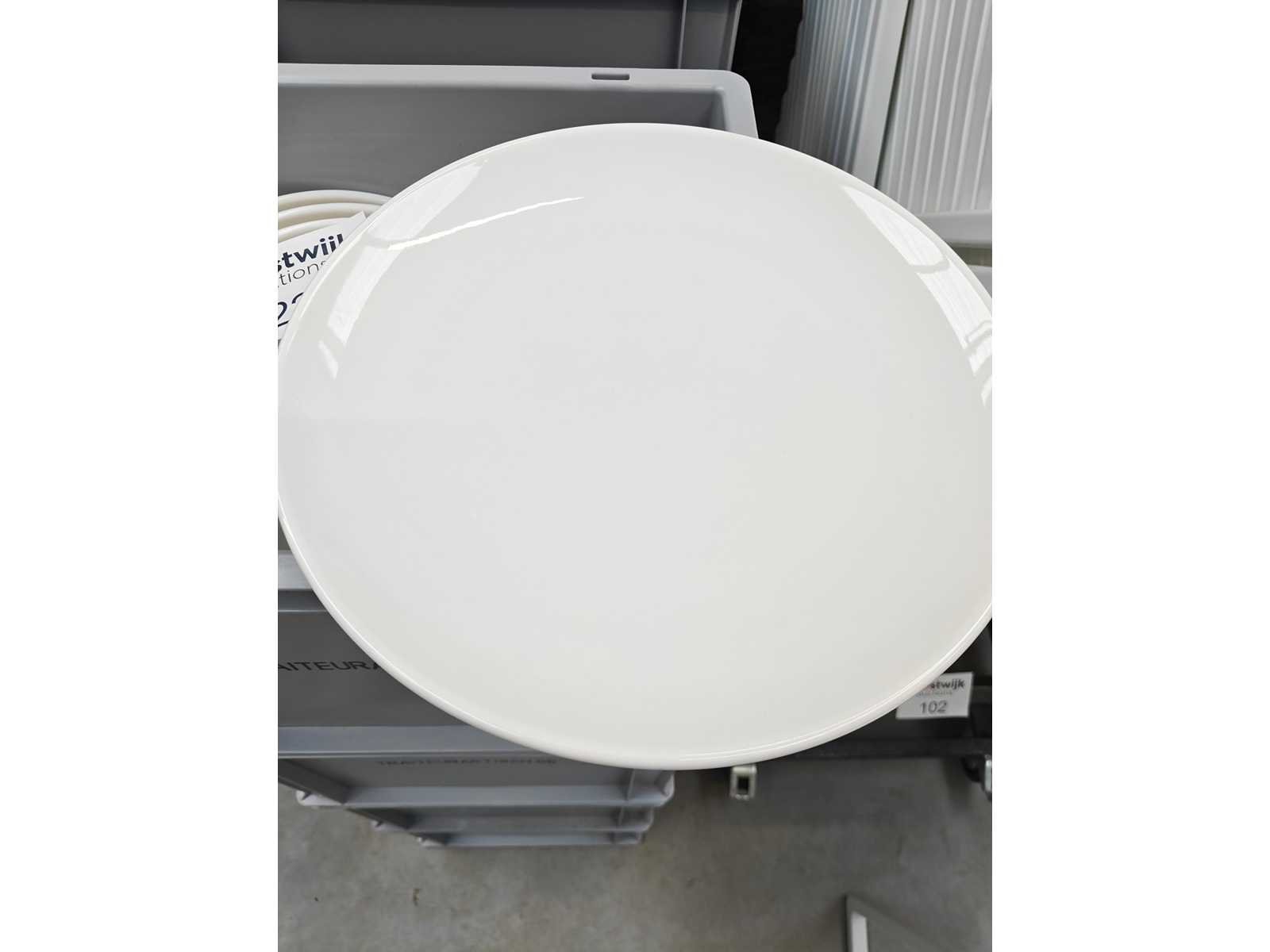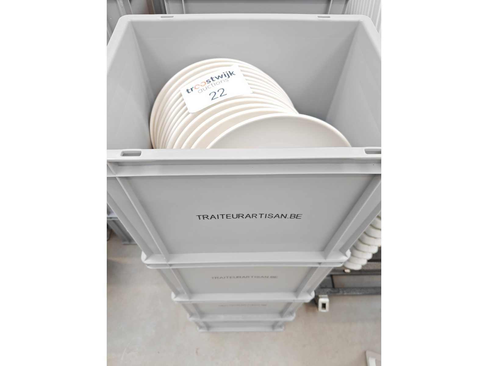 4 transportbakken inhoudende plm 88 borden, kleur wit Nee Merk: Bonna Type: Bord Diameter ca.: 27