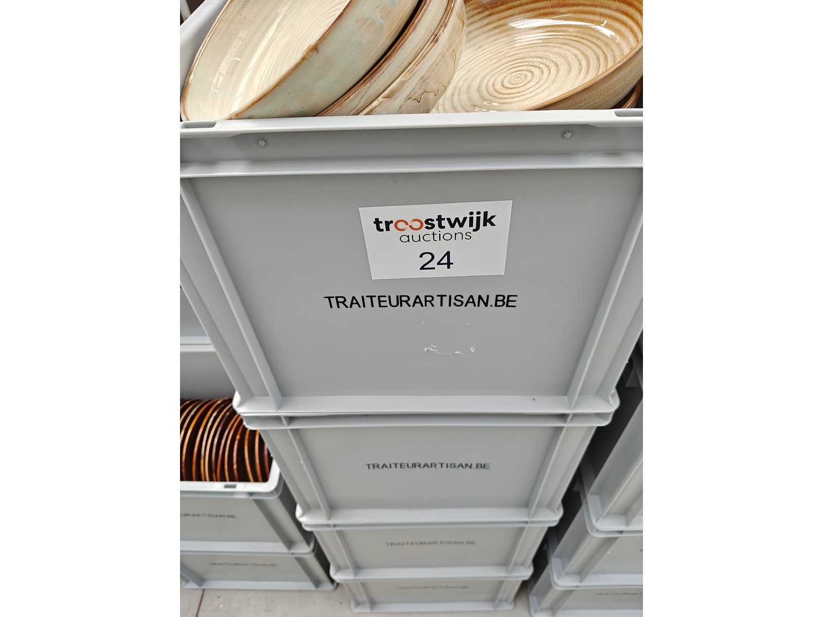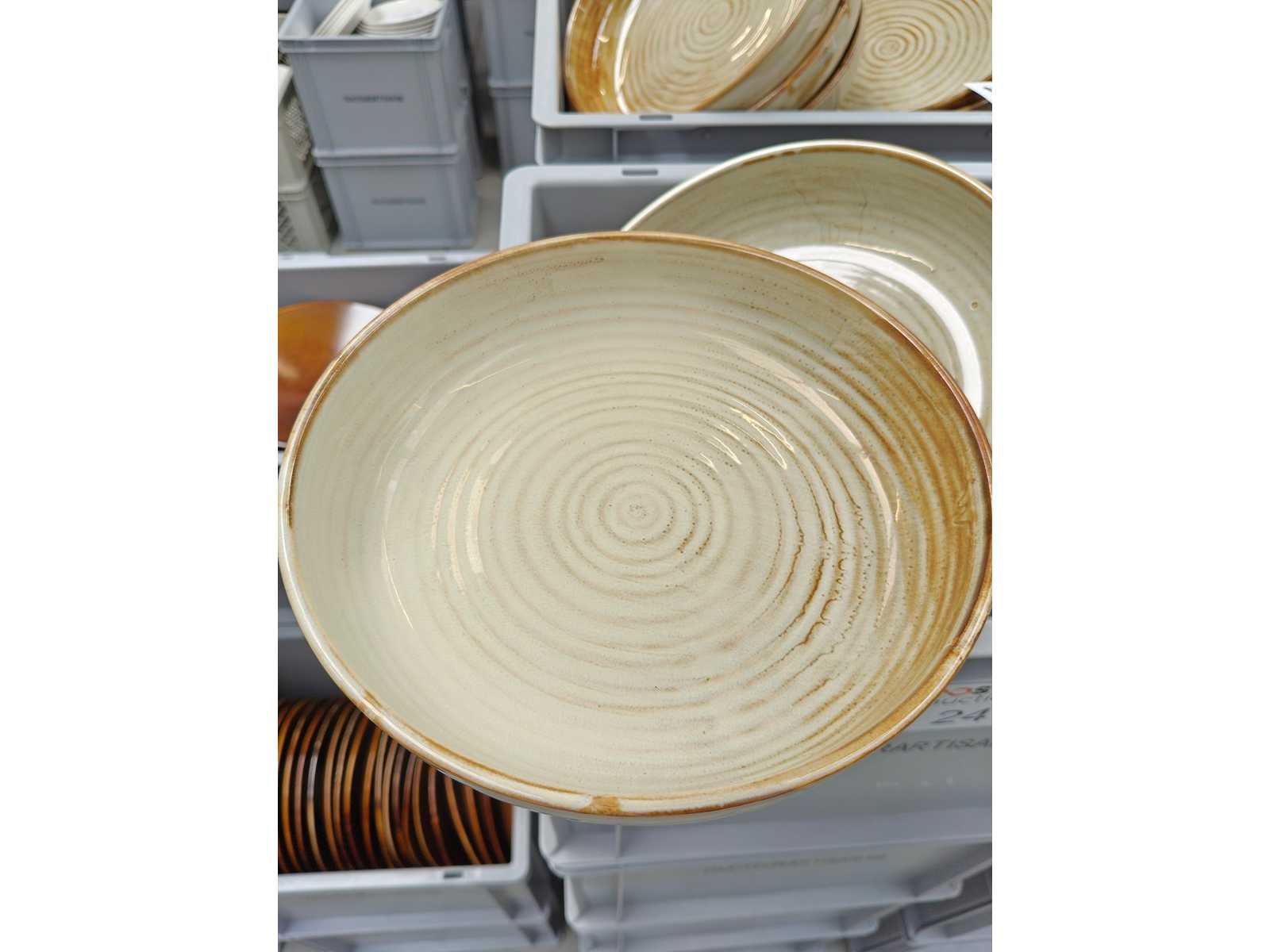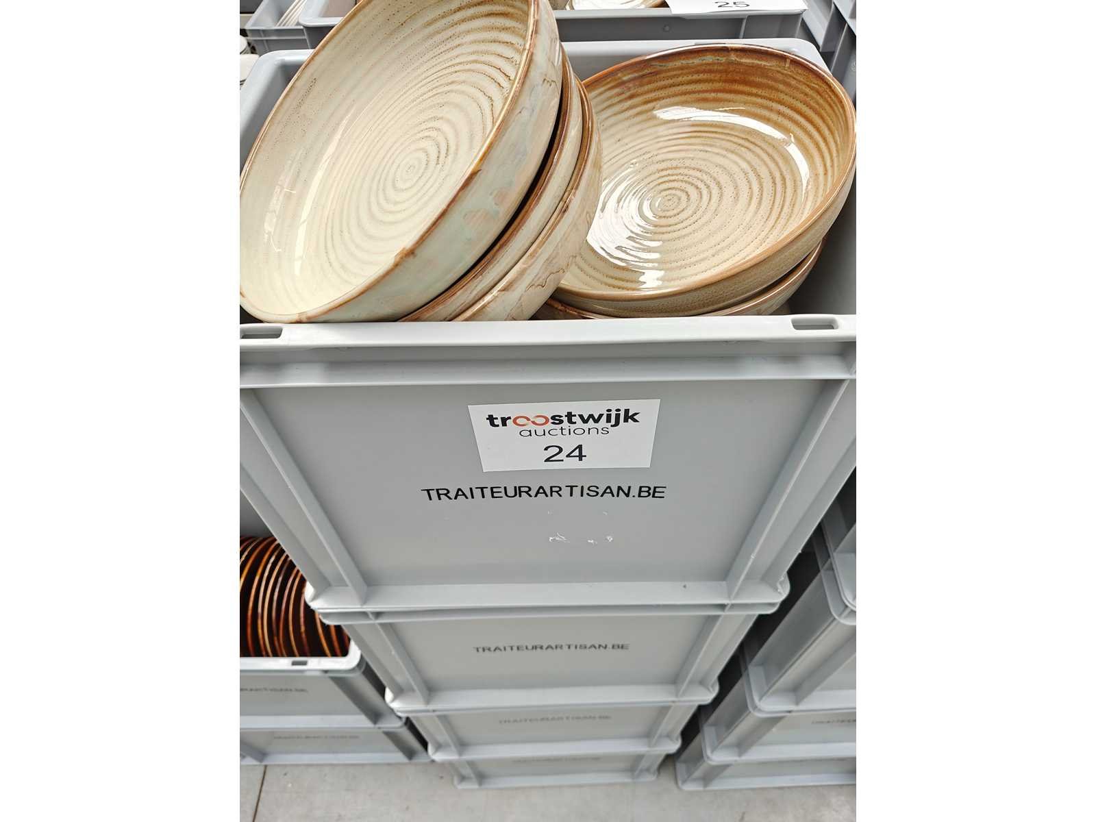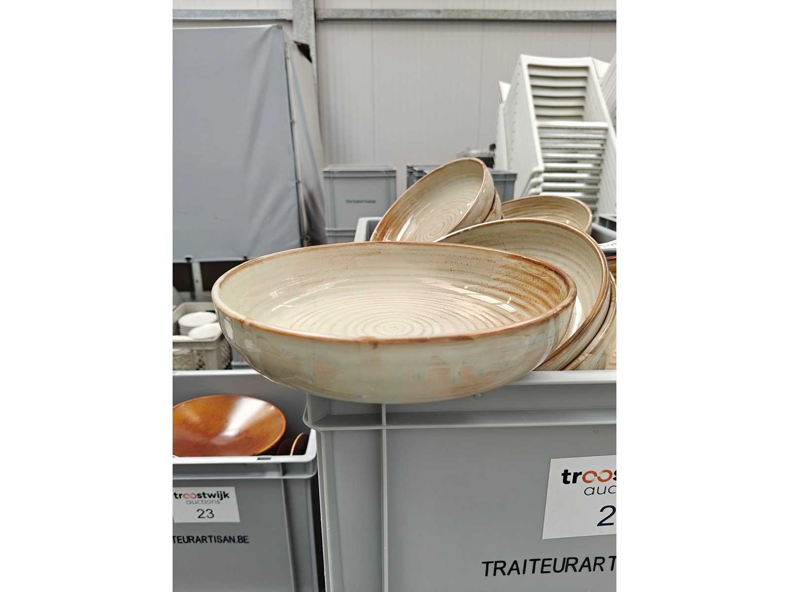 4 transportbakken inhoudende plm 106 borden, kleur lichtbruin Nee Merk: F2D Type: Diep bord Diameter ca.: 22