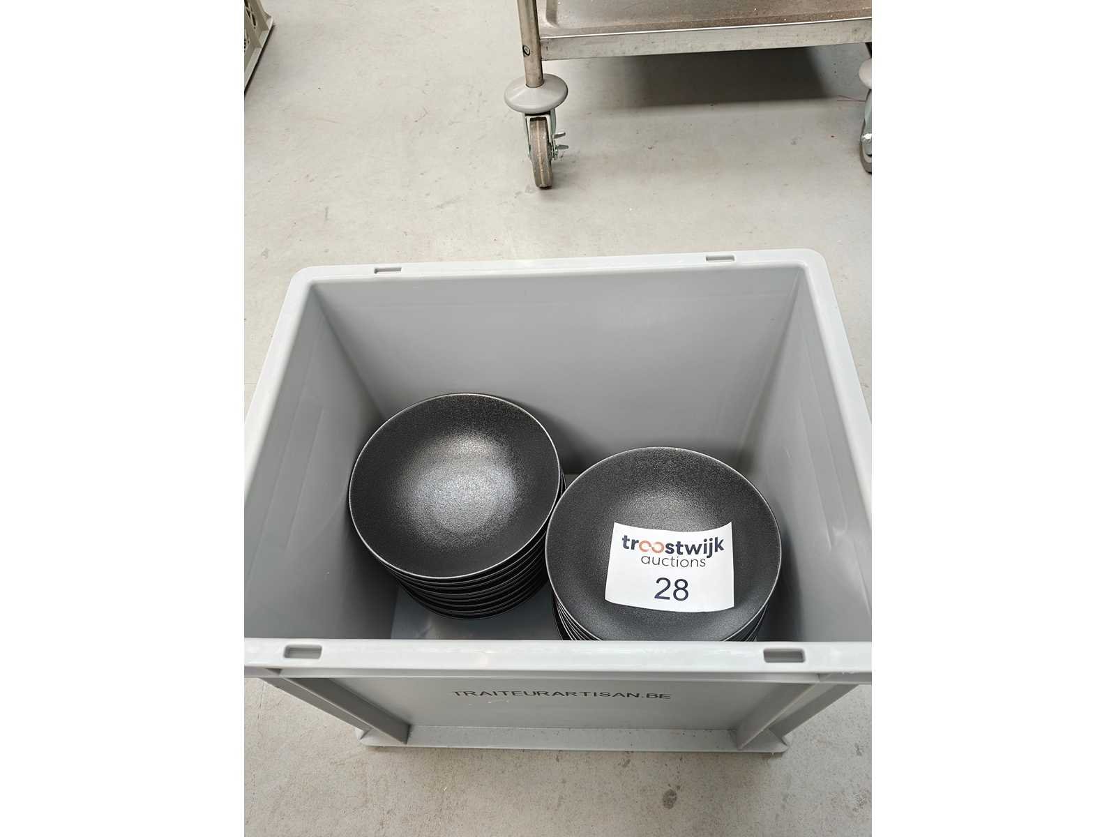 1 transportbak inhoudende plm 21 kommen, kleur zwart/ black dusk Nee Merk: F2D Type: Kom Diameter ca.: 21.50