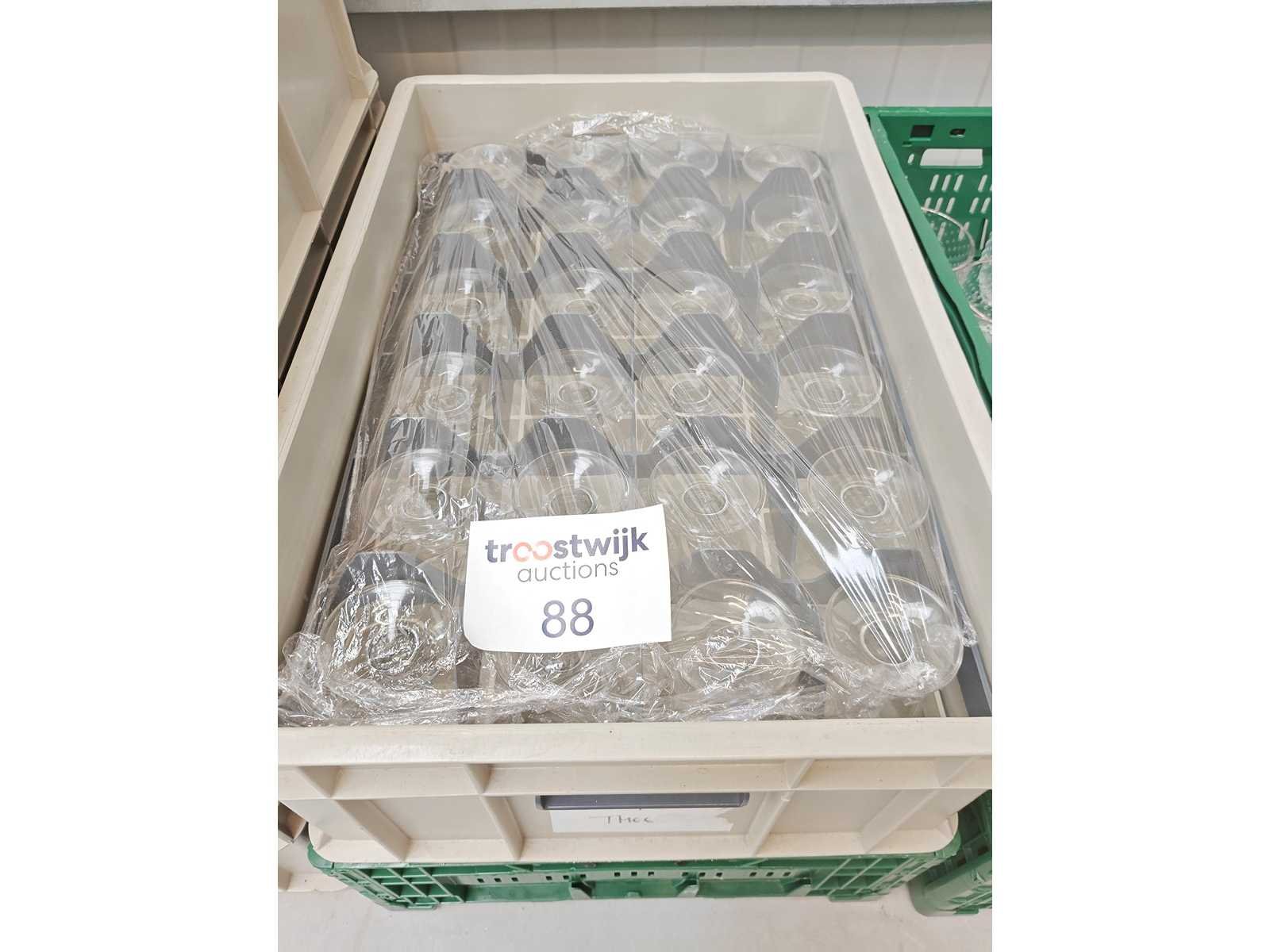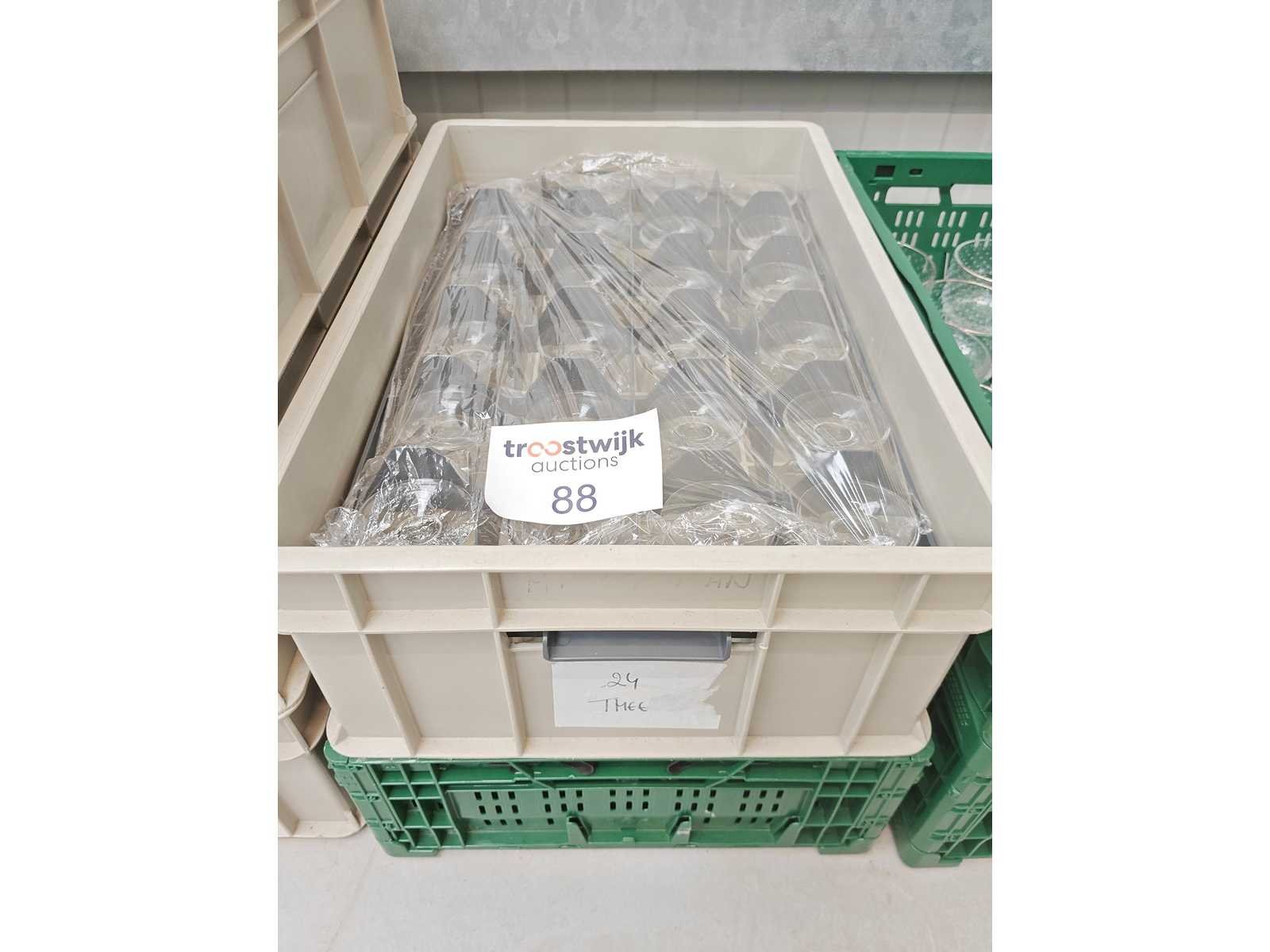 2 transportbakken inhoudende plm 49 theeglazen op voet Nee Totale afmeting Hoogte: 13.5cm Diameter ca.: 7.50