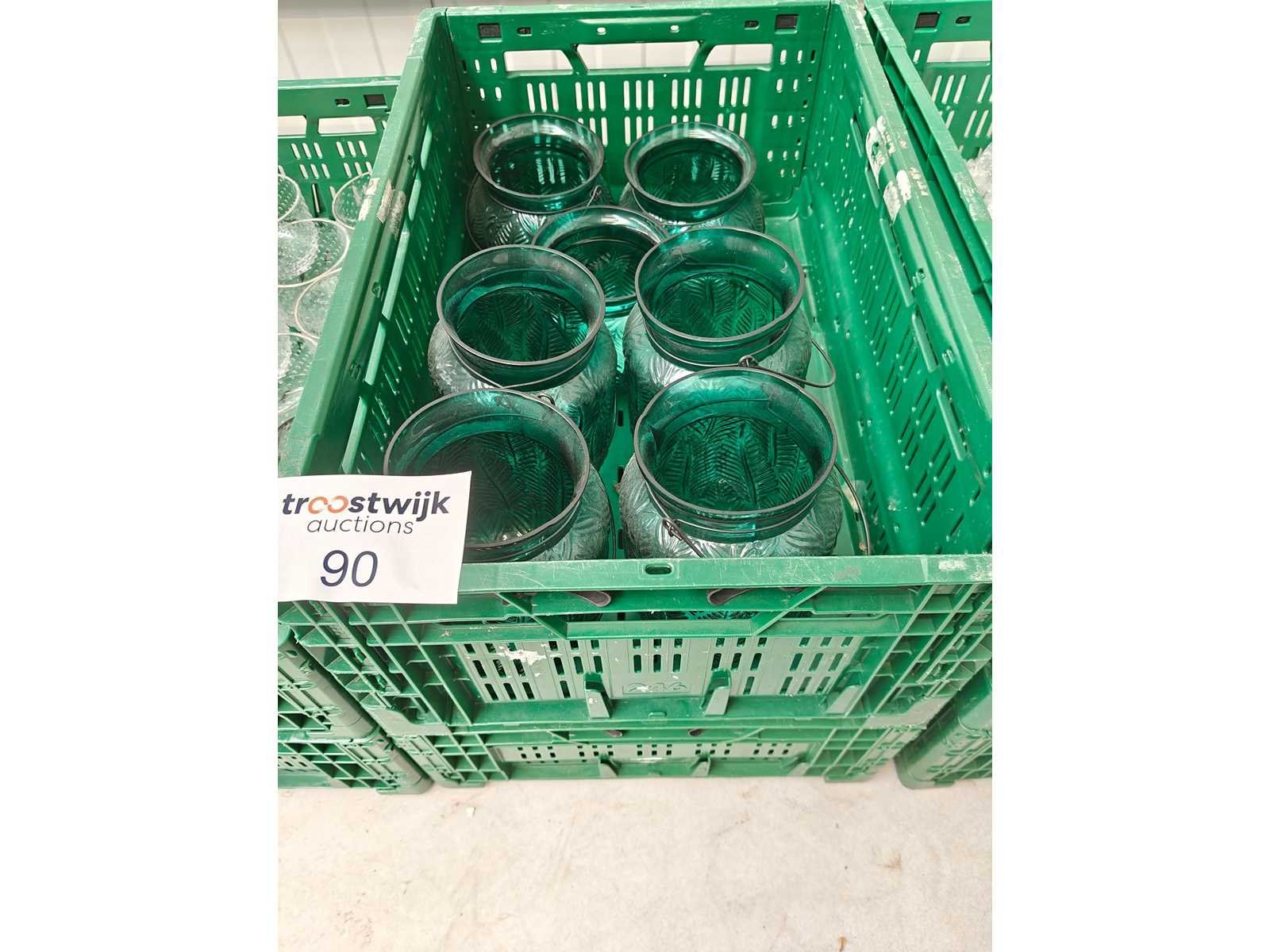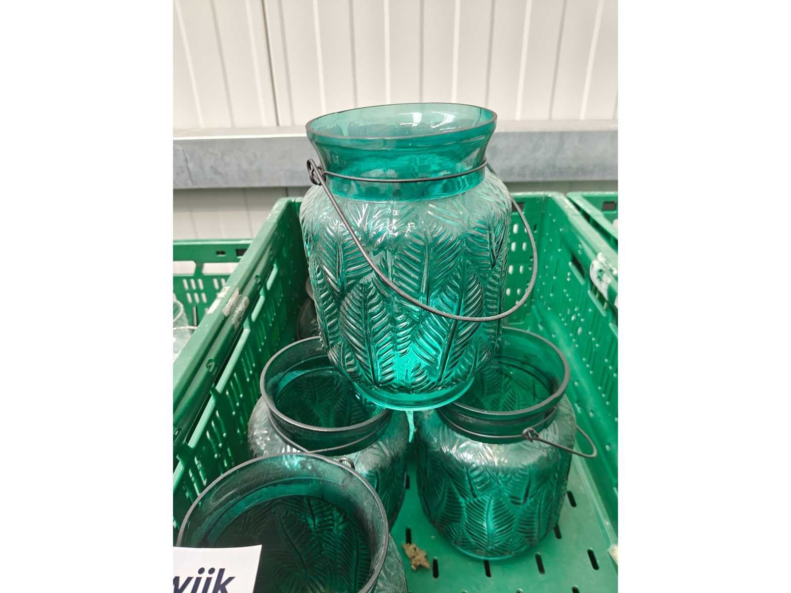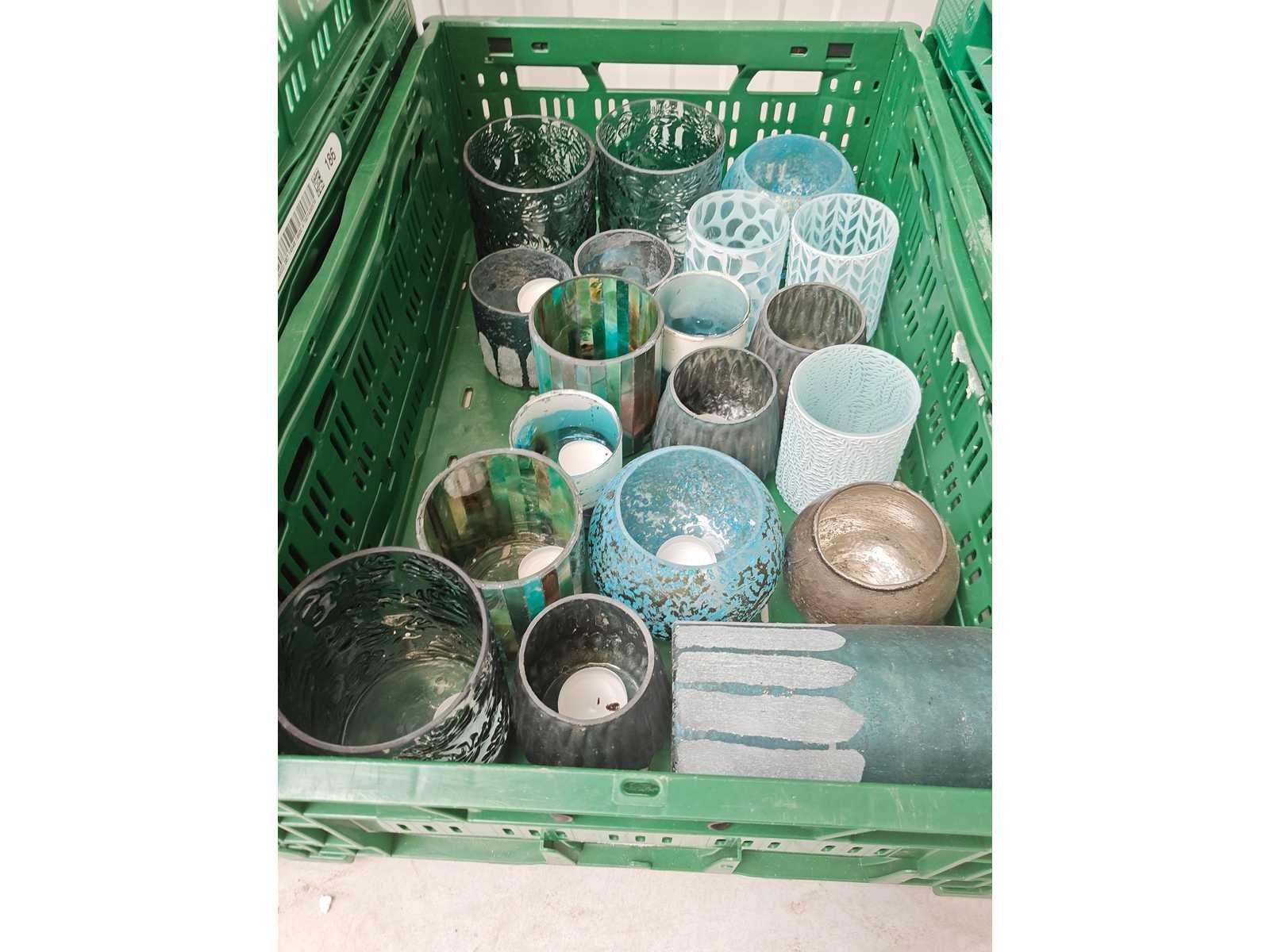 2 transportbakken inhoudende partij kaarshouders plm 16 stuks, kleur blauw, diverse formaten Nee Kleur: blauw