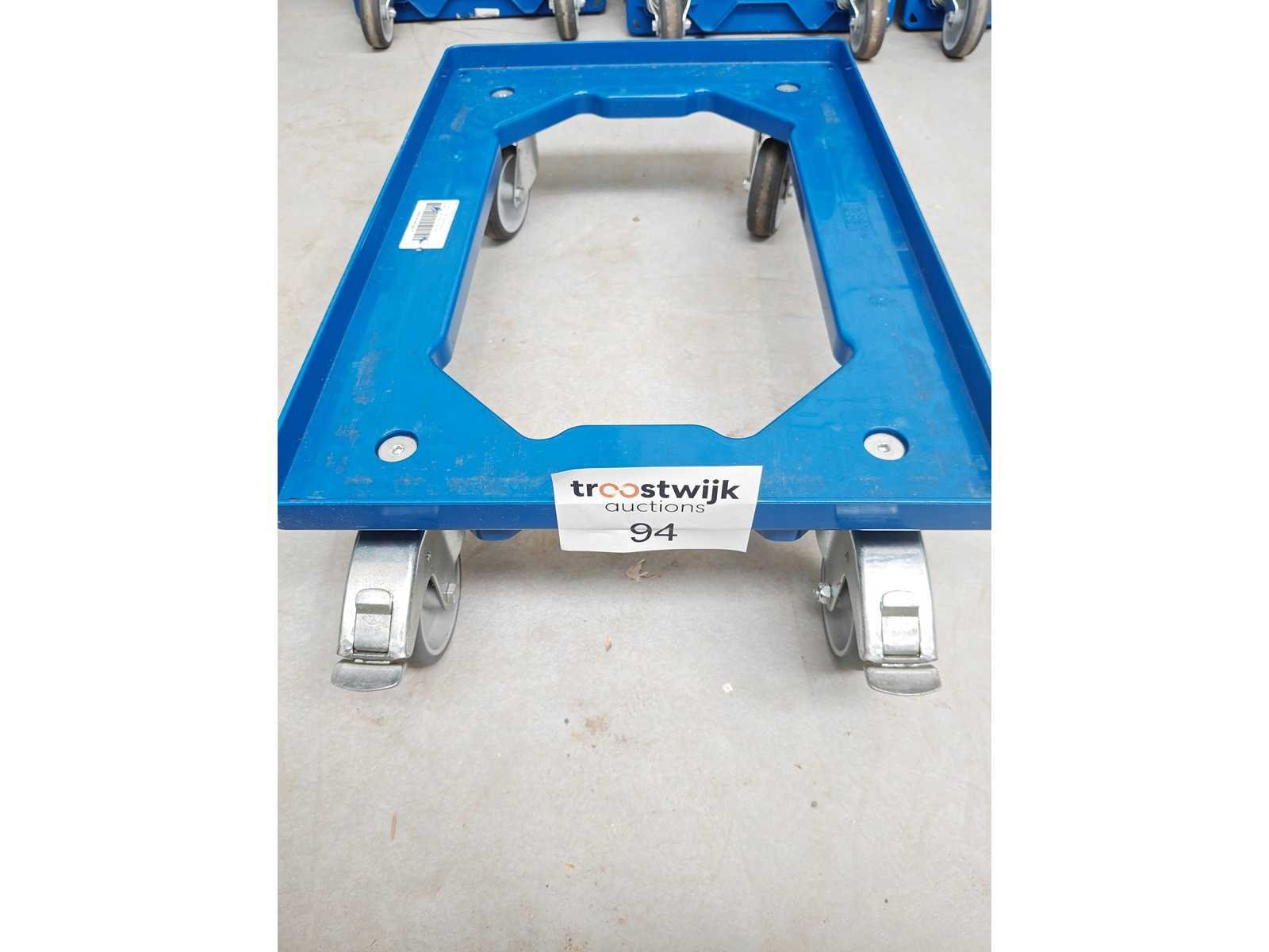 5 transportkarren, kleur blauw, 4 zwenkwielen waarvan 2 wielen geremd, compatibel met transportbak 60x40cm Nee Merk: Kruizinga Kleur: Blauw Lengte: 60.7cm Breedte: 40.7cm Hoogte: 15cm Materiaal: PVC