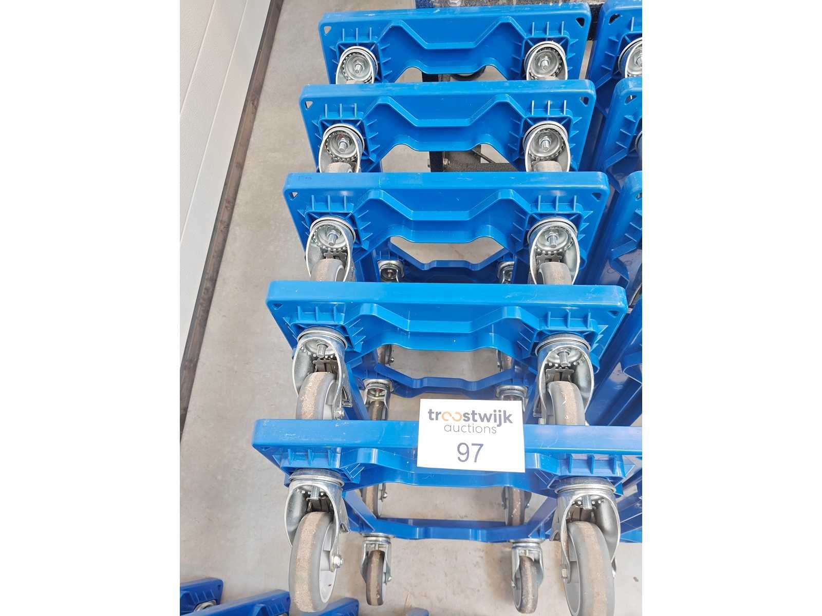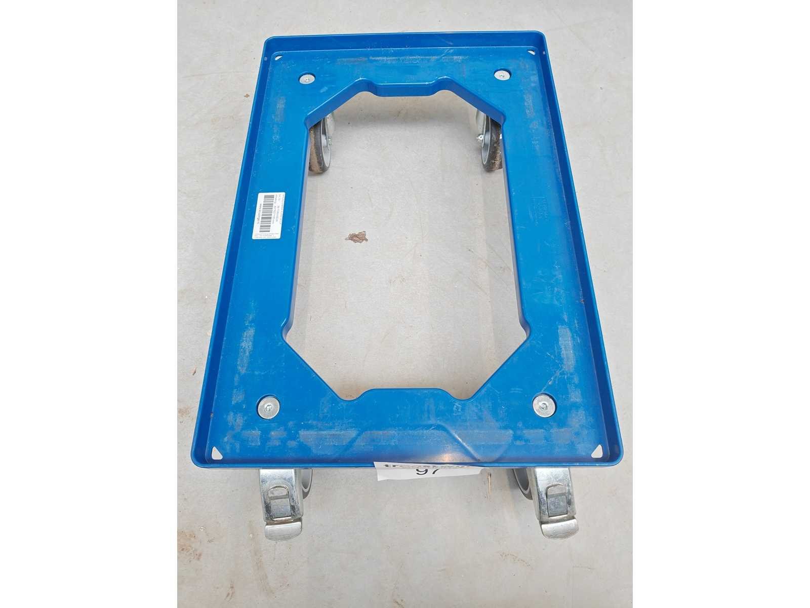 5 transportkarren, kleur blauw, 4 zwenkwielen waarvan 2 wielen geremd, compatibel met transportbak 60x40cm Nee Merk: Kruizinga Kleur: Blauw Lengte: 60.7cm Breedte: 40.7cm Hoogte: 15cm Materiaal: PVC