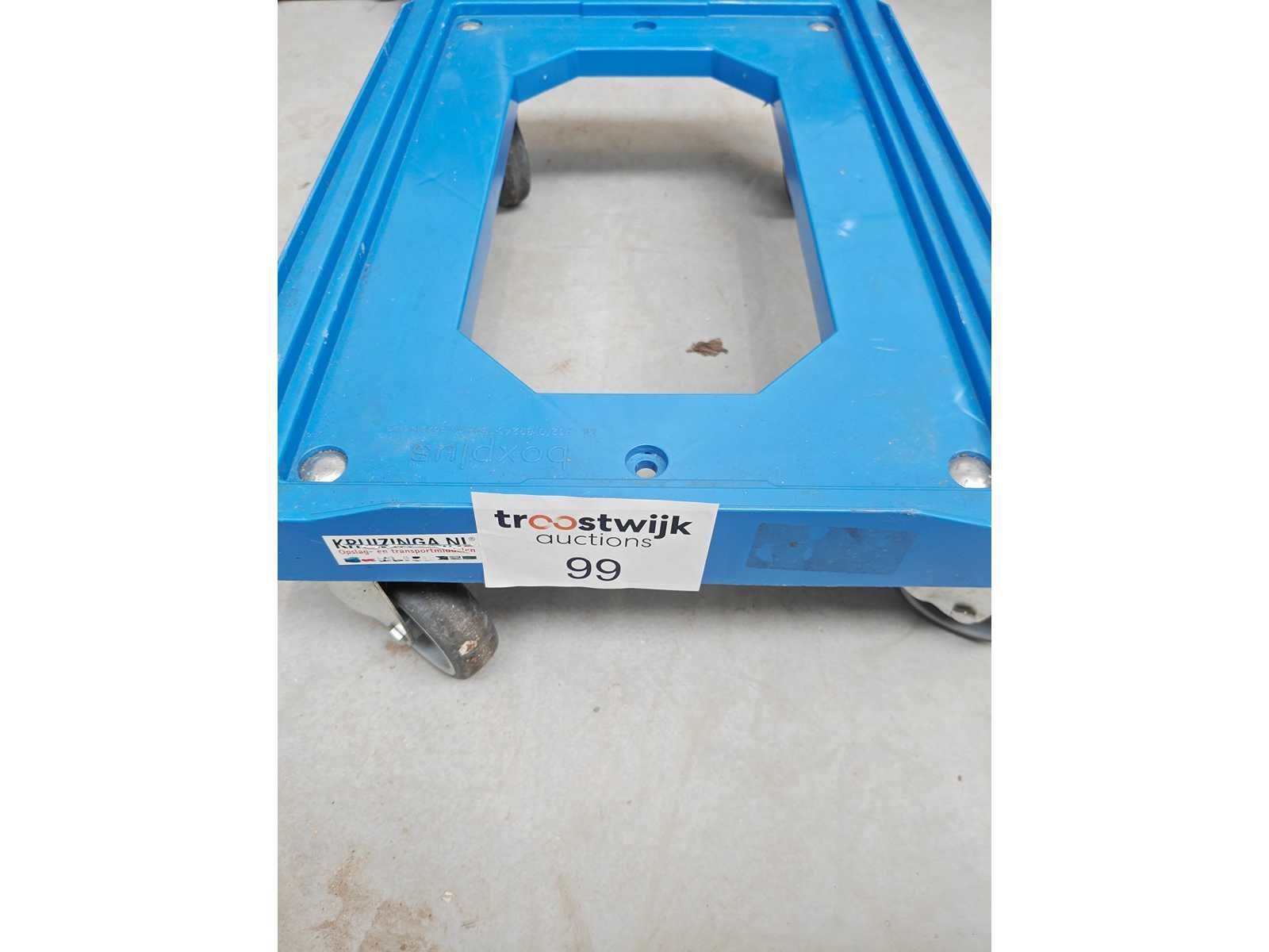 4 transportkarren, kleur blauw, 4 zwenkwielen, compatibel met transportbak 60x40cm Nee Merk: Kruizinga Model: Transportkar Kleur: Blauw Lengte: 60.7cm Breedte: 40.7cm Hoogte: 15cm Materiaal: PVC
