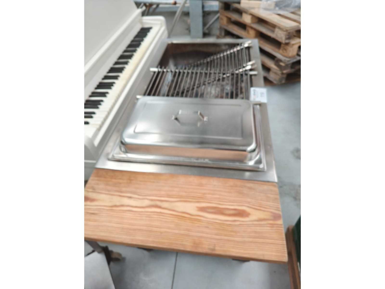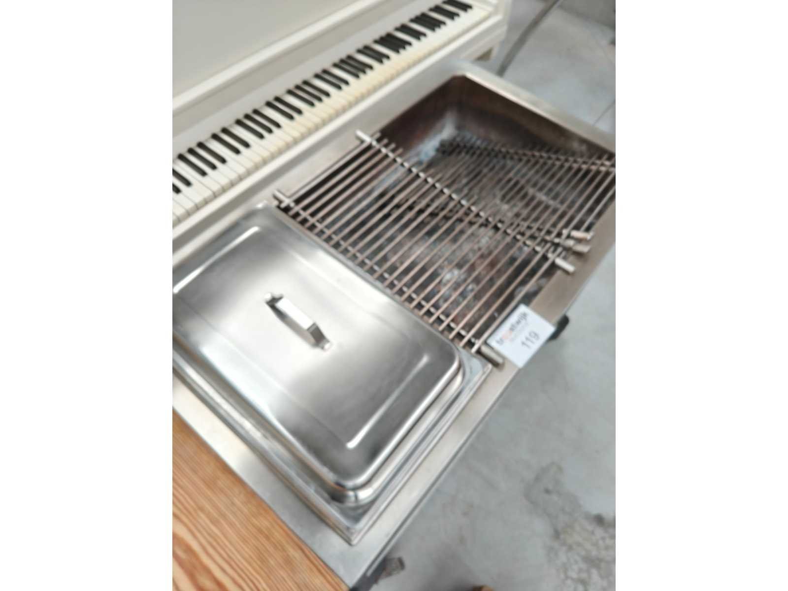Barbecue RVS met inbouw bain-marie op 4 zwenkwielen waarvan 2 geremd met 3 inox roosters Nee Kleur: grijs Lengte: 120 Breedte: 62 Hoogte: 95