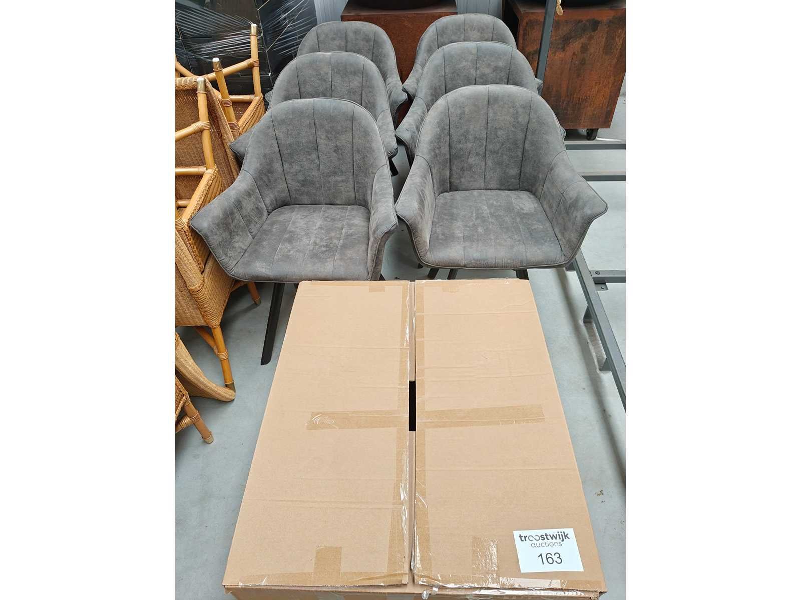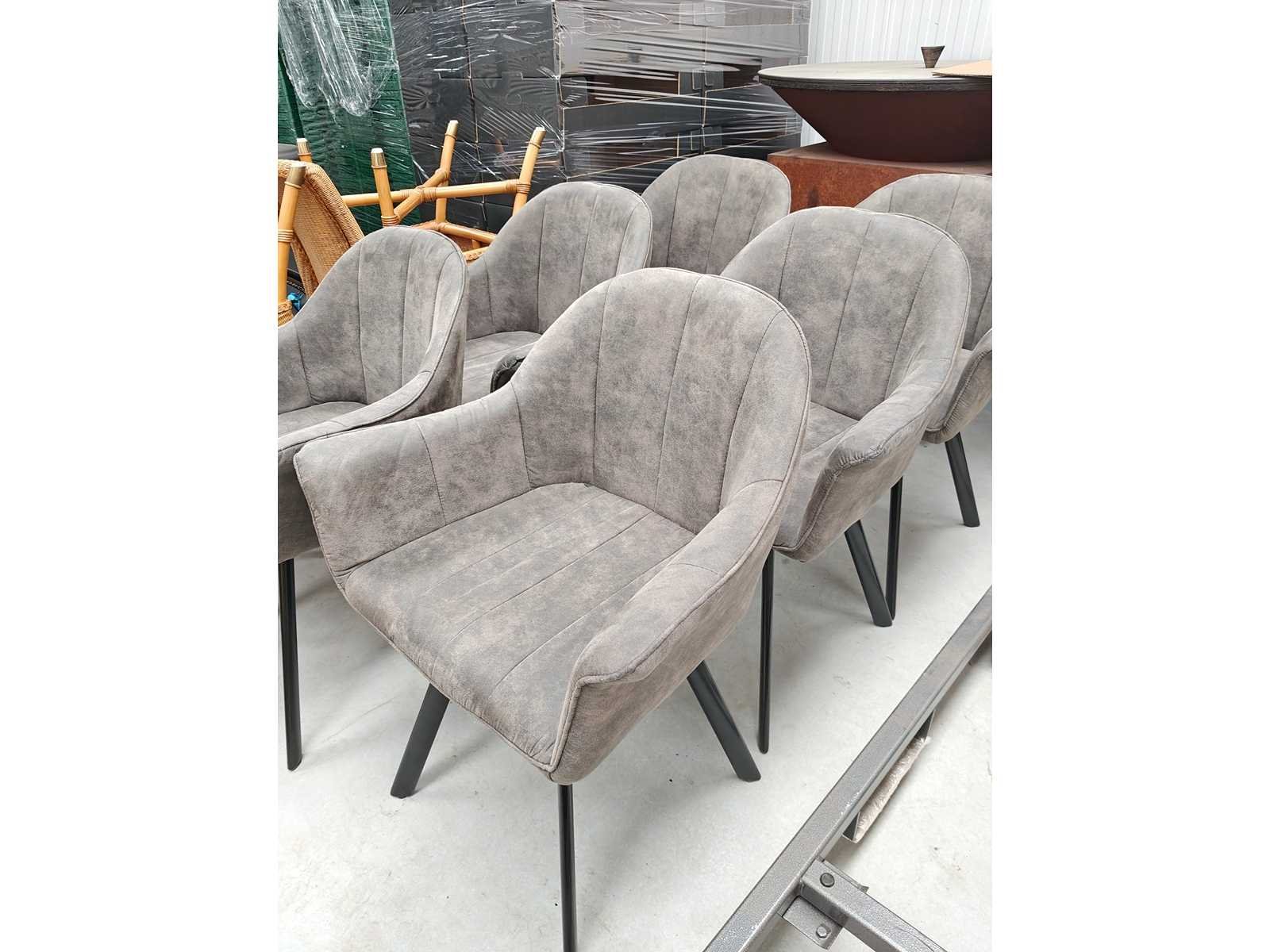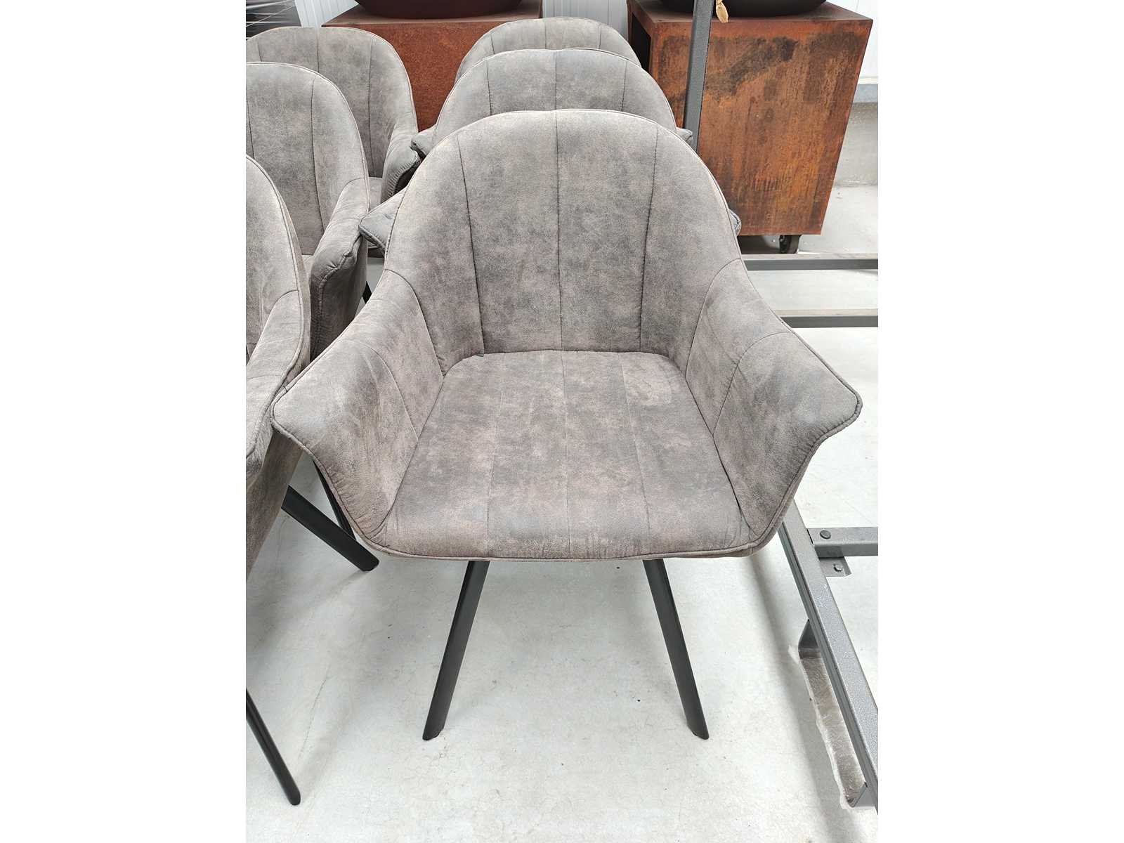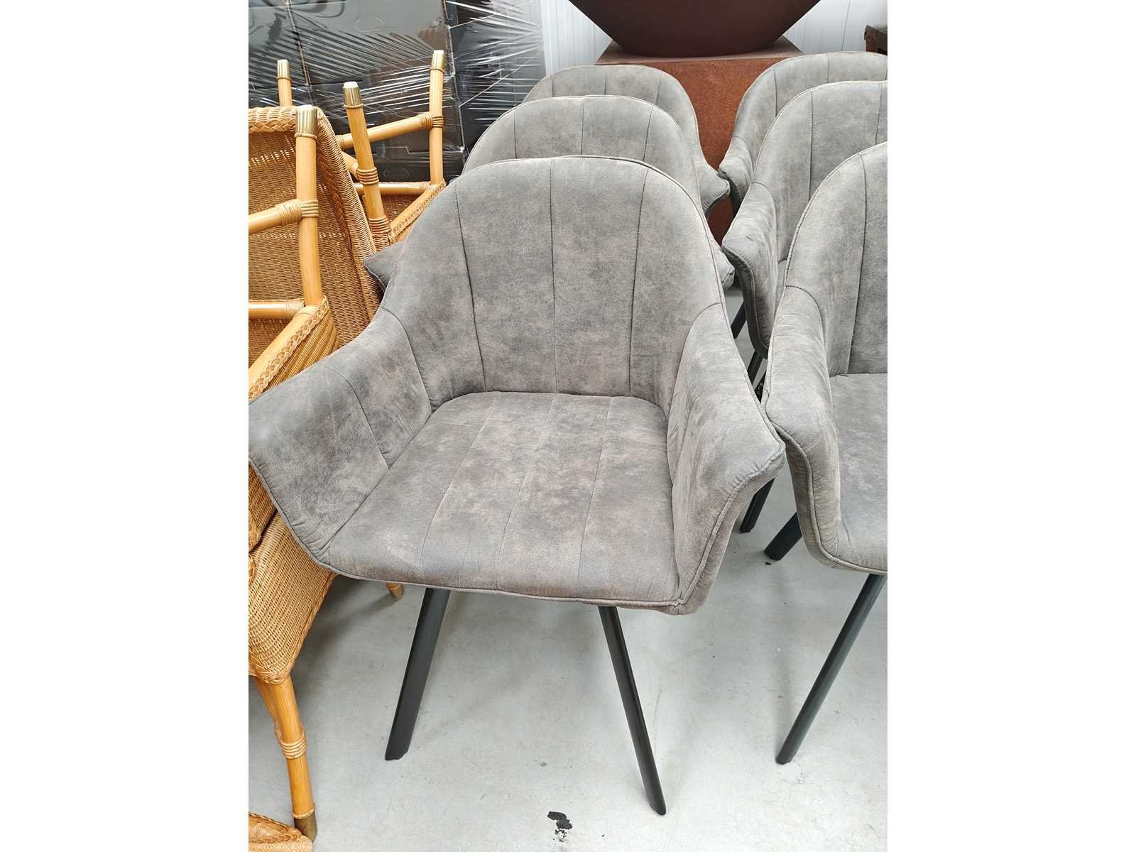 8 eetkamerstoelen, onderstel zwart, zit grijs in velvet/daim Nee Model: Kuipzetel Kleur: grijs Lengte: 55cm Breedte: 66cm Hoogte: 85cm