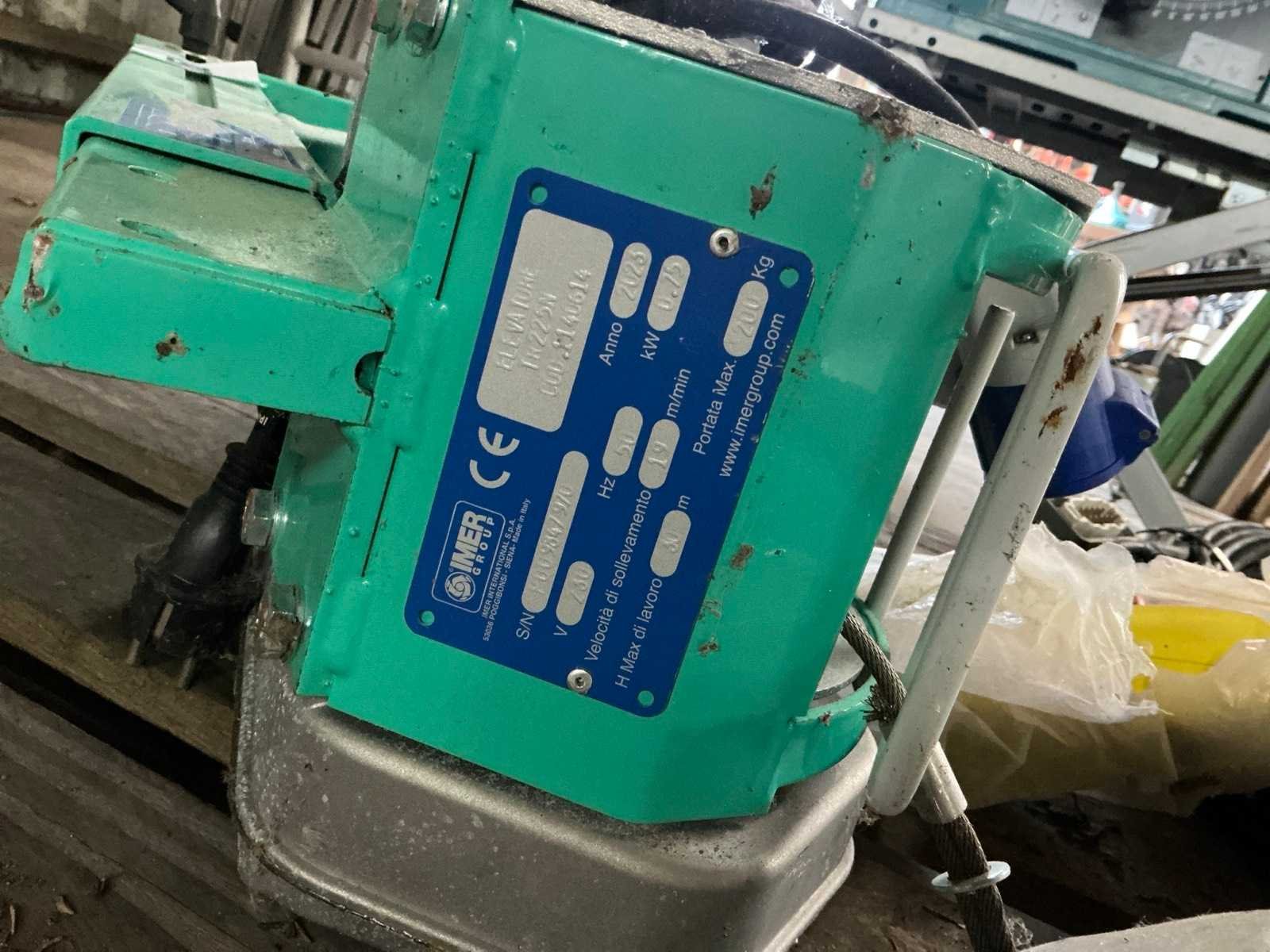 Voorzien van afstandsbediening, 112cm uitschuifbaar en afstandsbediening met een kabel van 30 meter. No Merk: Imer Type: TR225N Bouwjaar: 2023 Hijsvermogen: 200kg Max. hefhoogte: 30m
