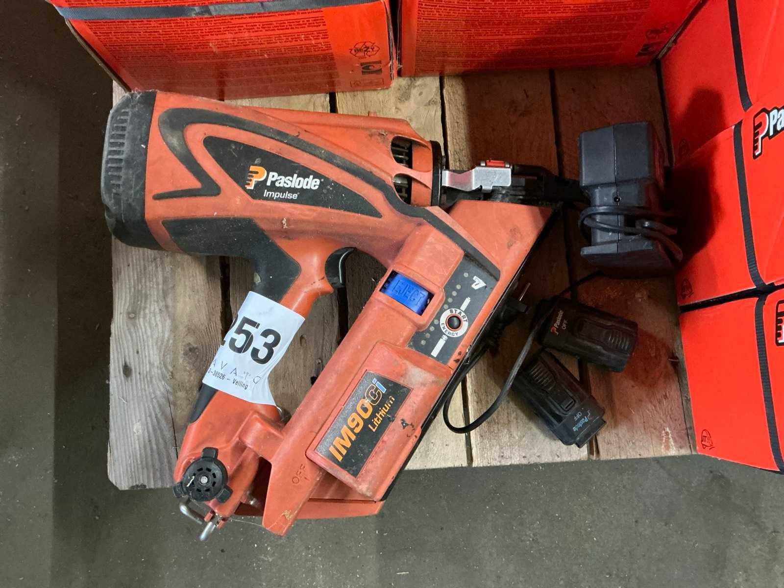 Voorzien van acculader, 2x accu Nee Merk: Paslode Model: IM90Ci Accuspanning: 7.2V Accu lader: true