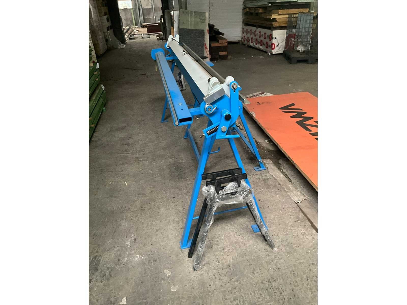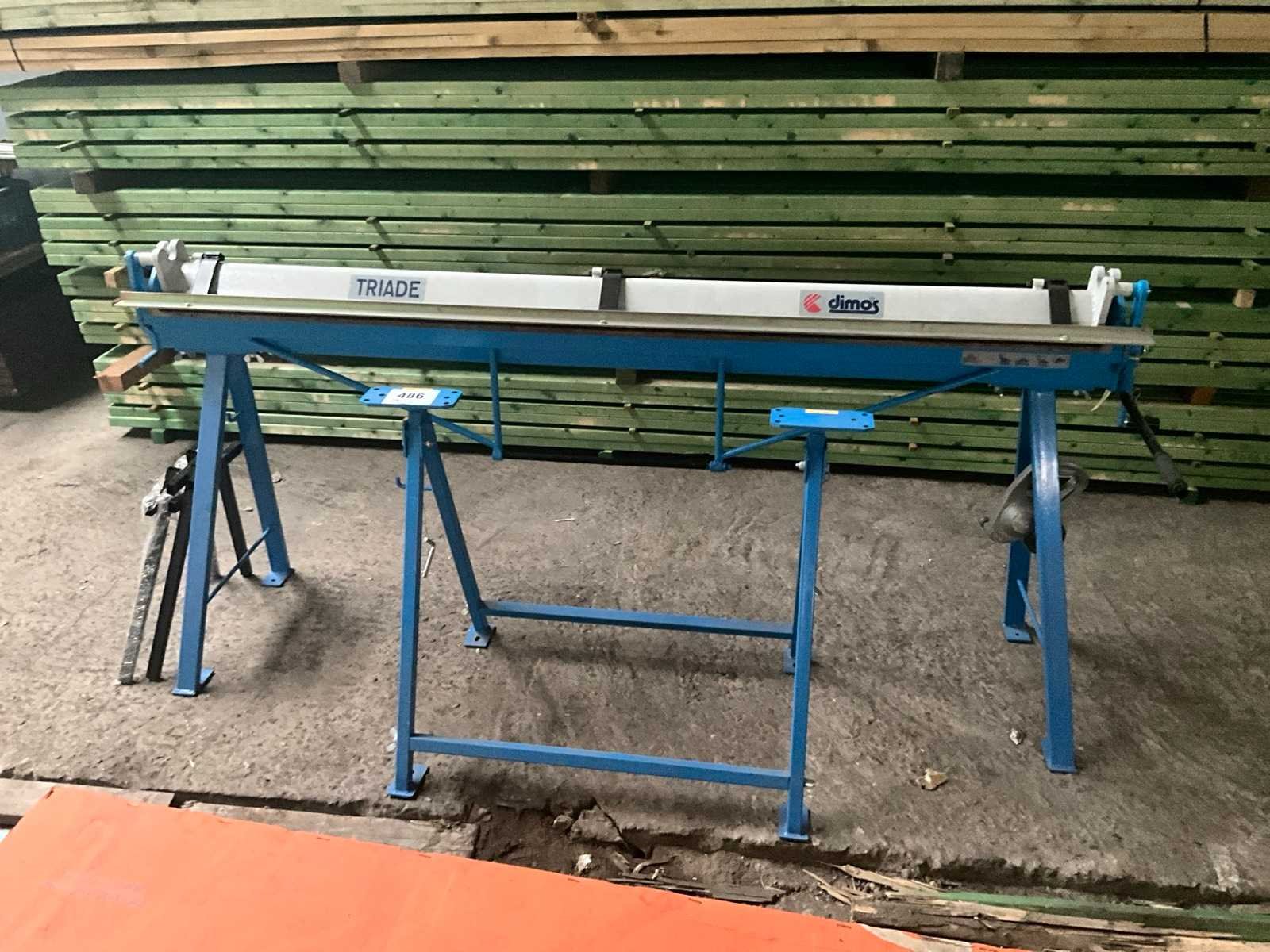 Voorzien van 4 staanders en 8 liggers en tussenlatten om een houten plaat te plaatsen. Compleet met bijzetwerktafel met afmetingen:105x60x80cm en 4x zinken plaat(antra) elke met afmeting:226x100cm No Merk: Dimos Type: Triade 2M Bouwjaar: 2023 Machinegewicht: 130kg Afmeting l: 600mm Afmeting b: 2260mm Afmeting h: 1100mm