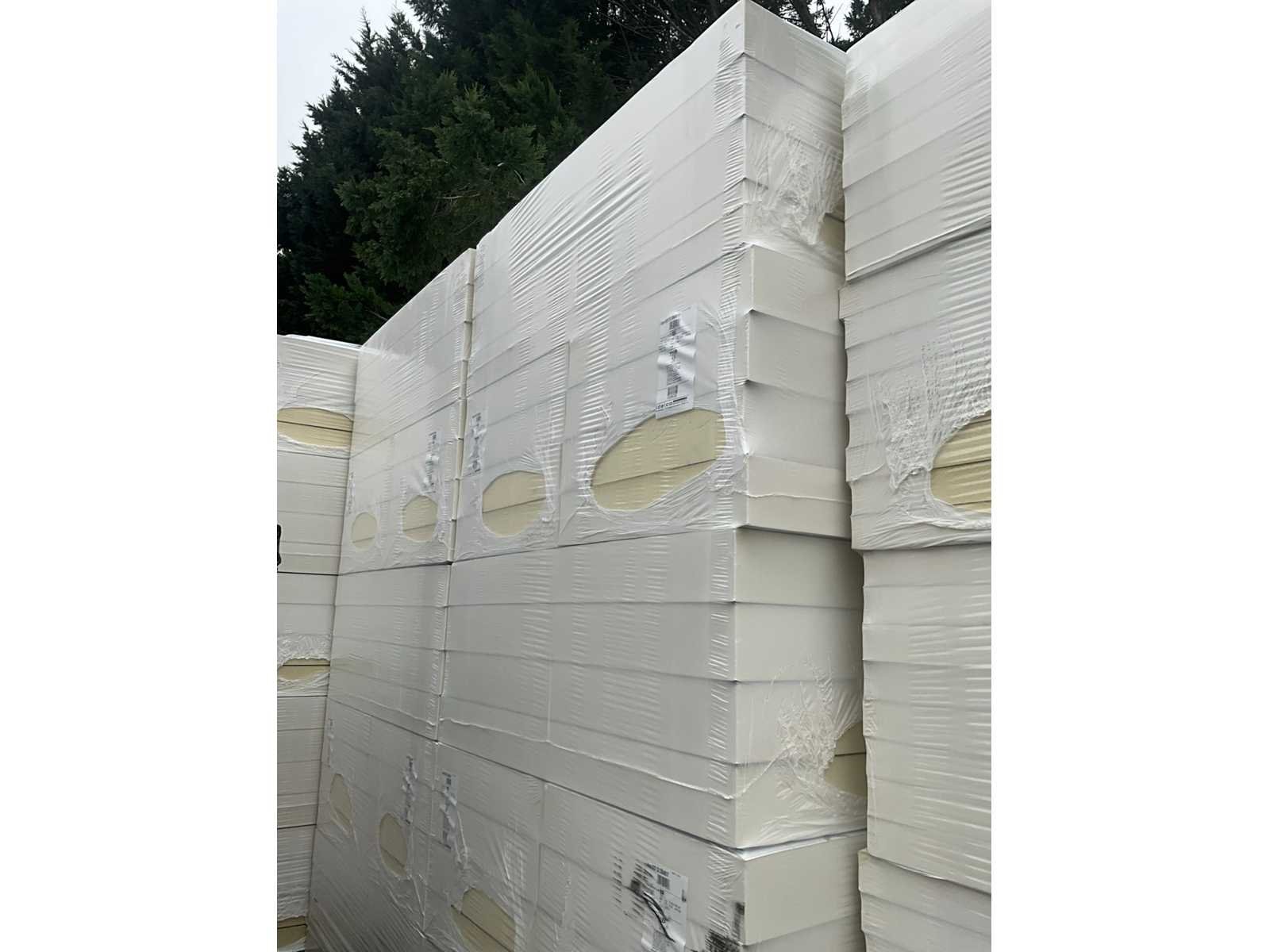 Therm insulation boards 10 cm dikte, in verpakking, per 40 (10 pakken x4) exemplaren op pallet, telkens 4 stuks in een pak. 1 pak = voor 2,88 m2, totaal pallet = 28 m2. No Merk: IDELCO Product type: Therm Roof 120 mm Lengte: 120cm Breedte: 60cm Hoogte: 12cm