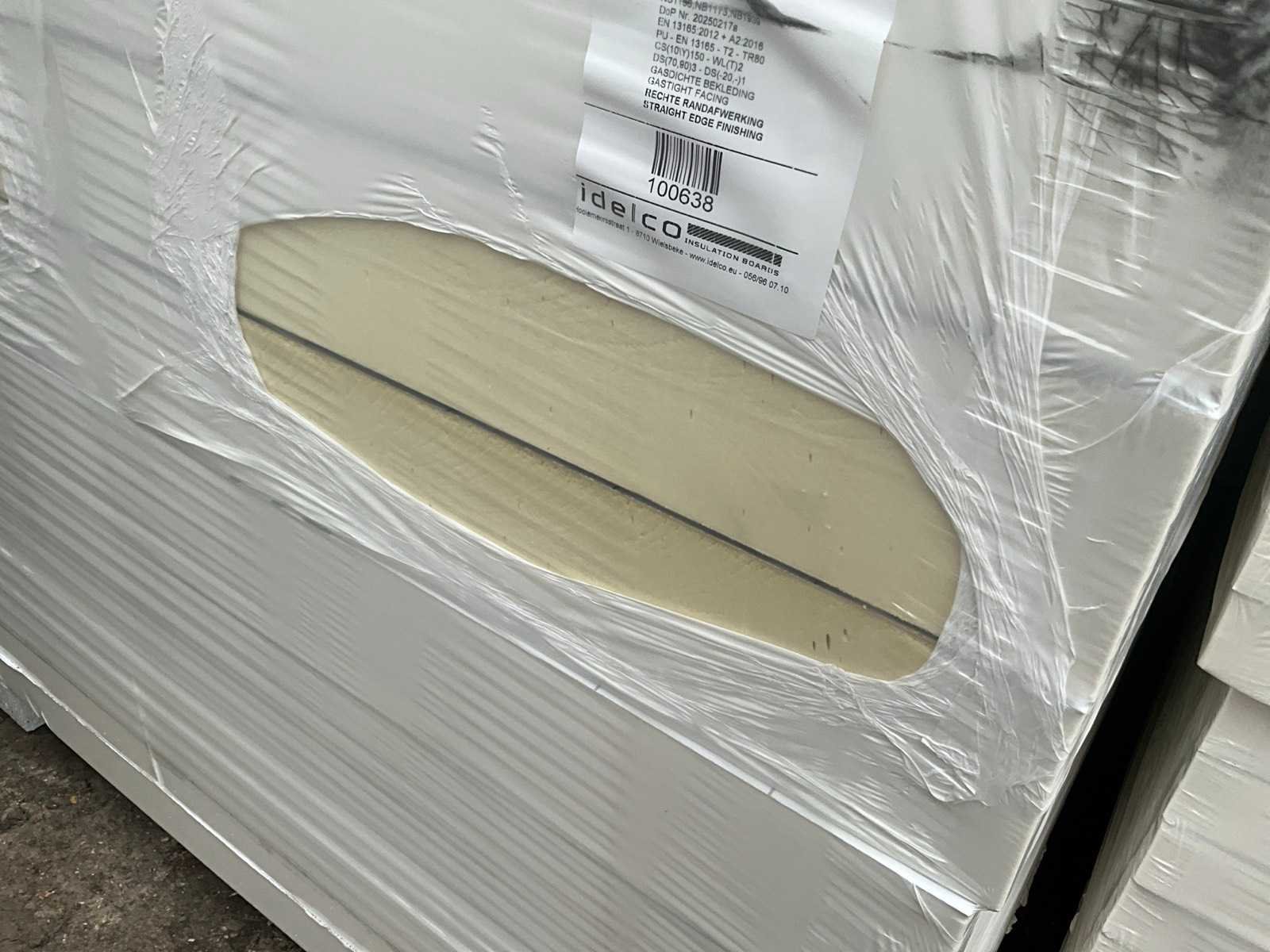 Therm insulation boards 10 cm dikte, in verpakking, per 40 (10 pakken x4) exemplaren op pallet, telkens 4 stuks in een pak. 1 pak = voor 2,88 m2, totaal pallet = 28 m2. No Merk: IDELCO Product type: Therm Roof 120 mm Lengte: 120cm Breedte: 60cm Hoogte: 12cm