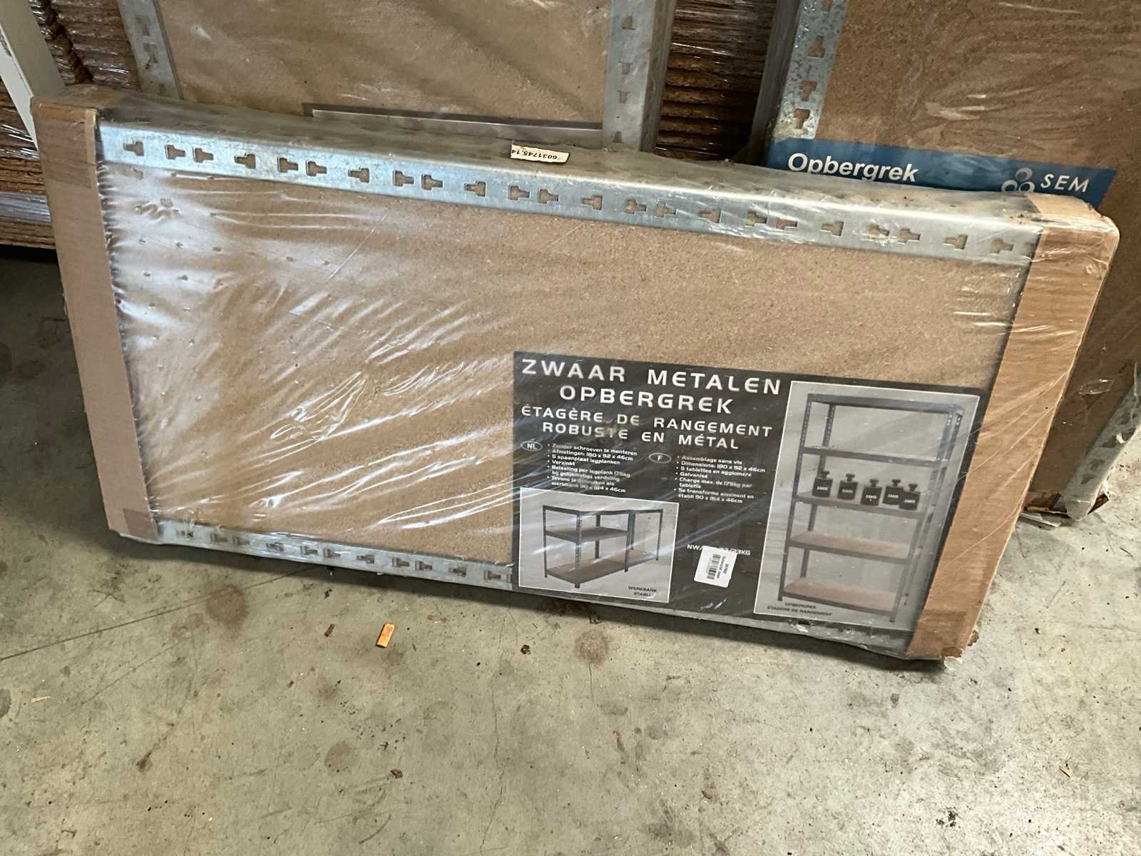 Zonder schroeven te monteren, met afmeting 180 (hoogte) x 92 x 46 cm, voorzien van 5 spaanplaat legplanken, verzinkt, belasting per legplank 175 kg en kan tevens gebruikt worden als werkbank 90 x 184 x 46 cm. No