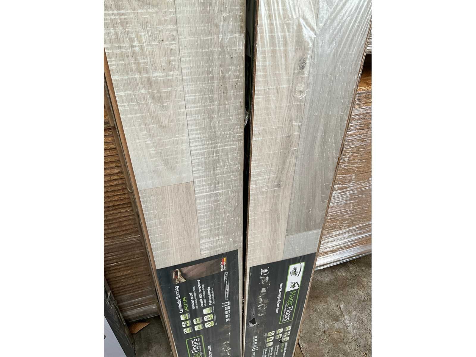 Totaal : 11 m2, per pak : 9 vloerplanken. No Merk: Magic Floors Model: Irina Afwerking: 2-strip Aantal m² per verpakking: 2.22m² Kleur: Rugged eik Lengte: 1285mm Breedte: 192mm Hoogte: 8mm Materiaal: Twin clic Verpakt per: 5 pakken