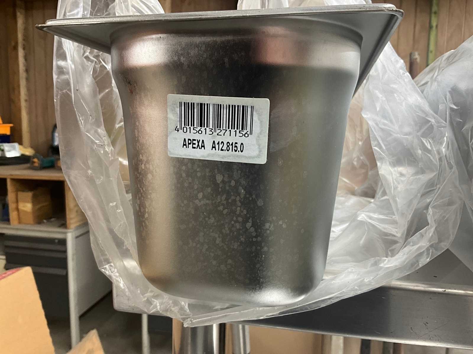 Compleet met diverse bijhorende rvs gastronormbakken Apexa en enig toebehoren. No Rvs: true Totale afmeting L: 187cm Totale afmeting Breedte: 80cm Totale afmeting Hoogte: 130cm