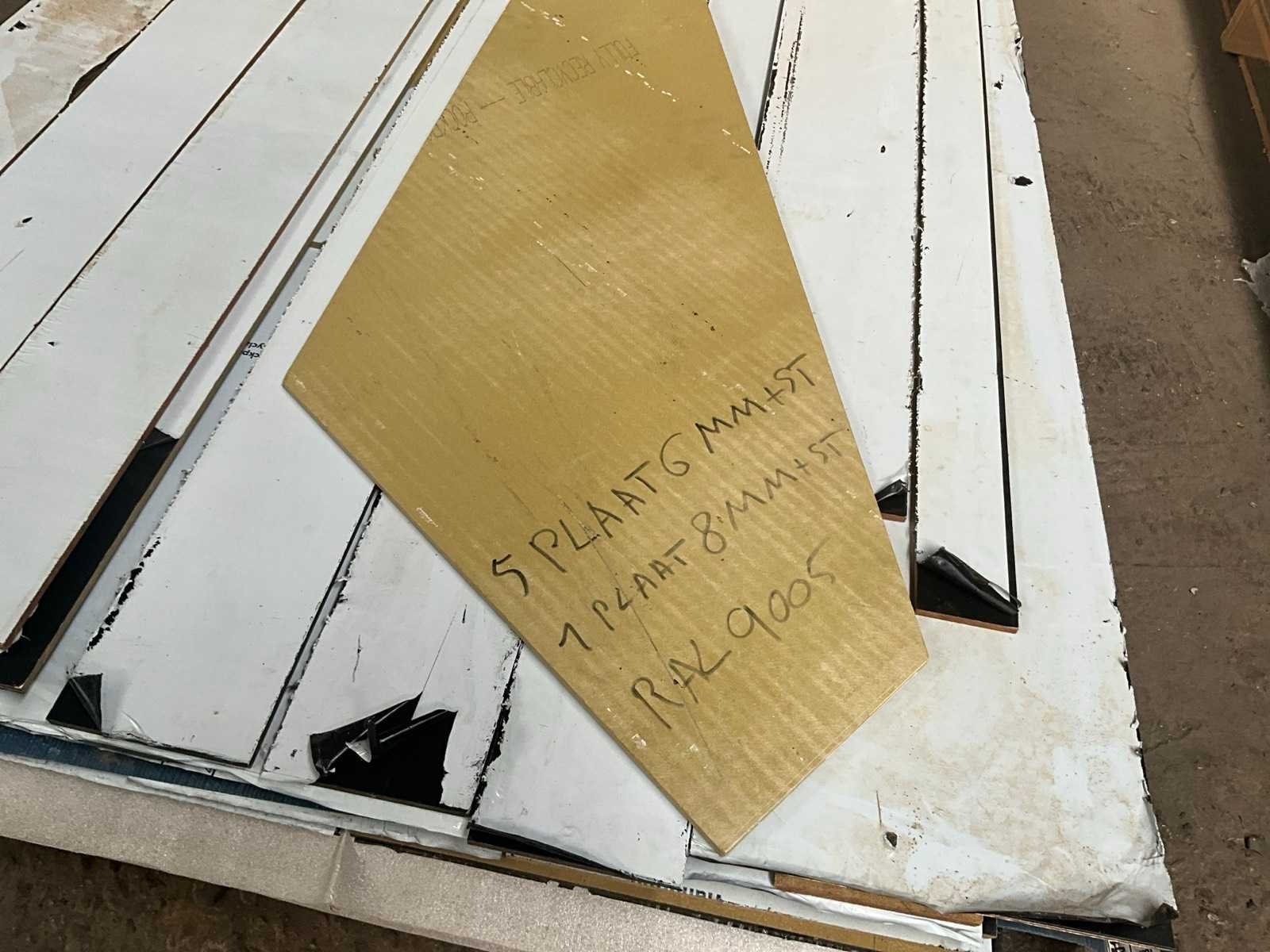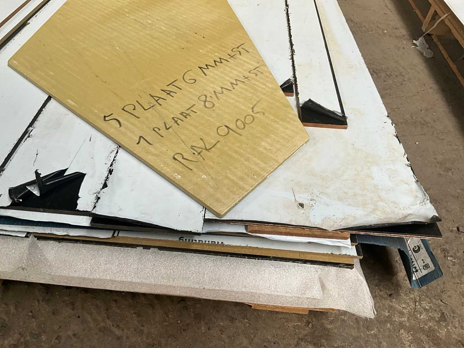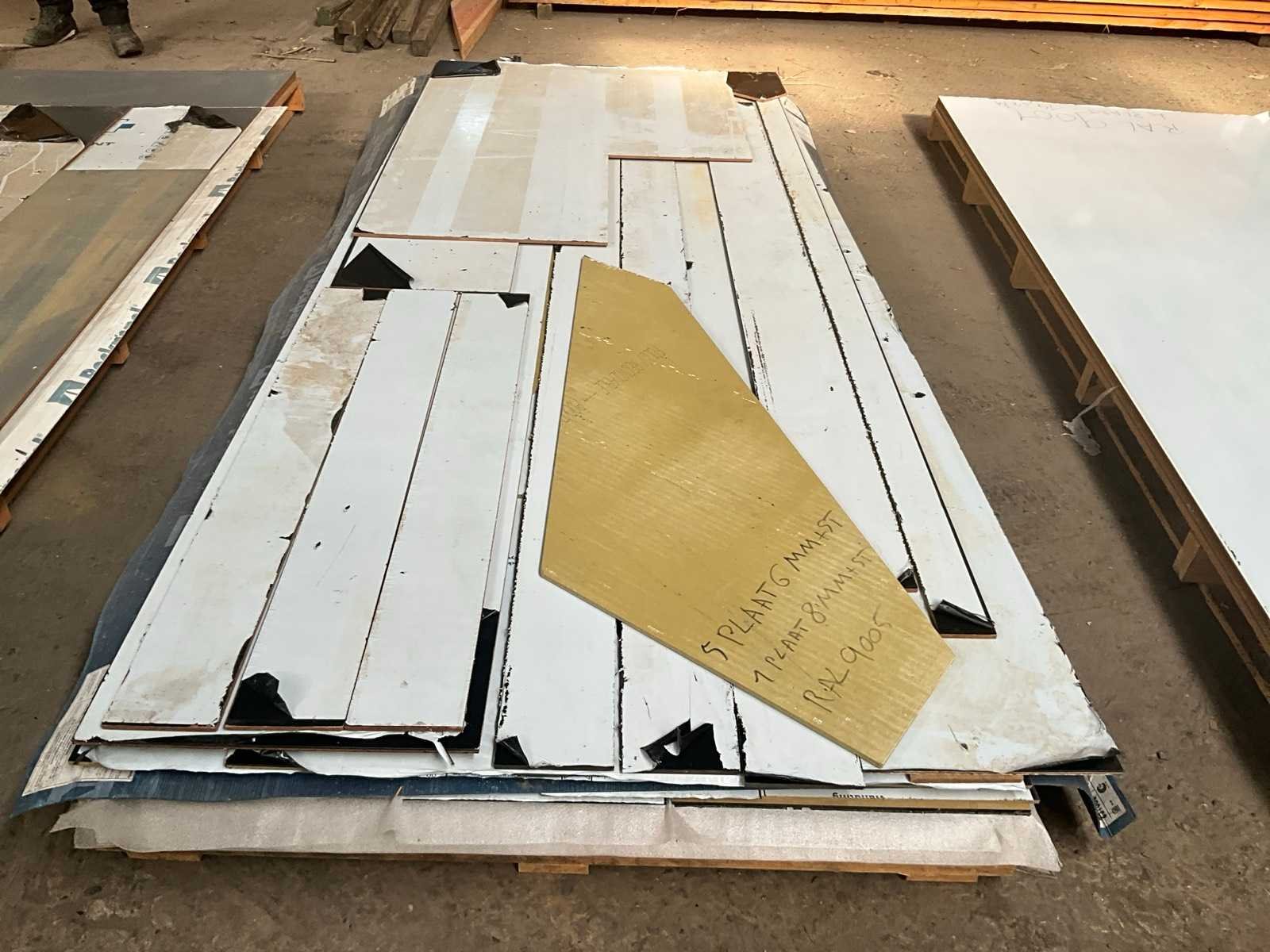 Waaronder 5x 6 mm en 1x 8 mm dikte, compleet met diverse restanten. No Product type: RAL 9005 Lengte: 305cm Breedte: 120cm