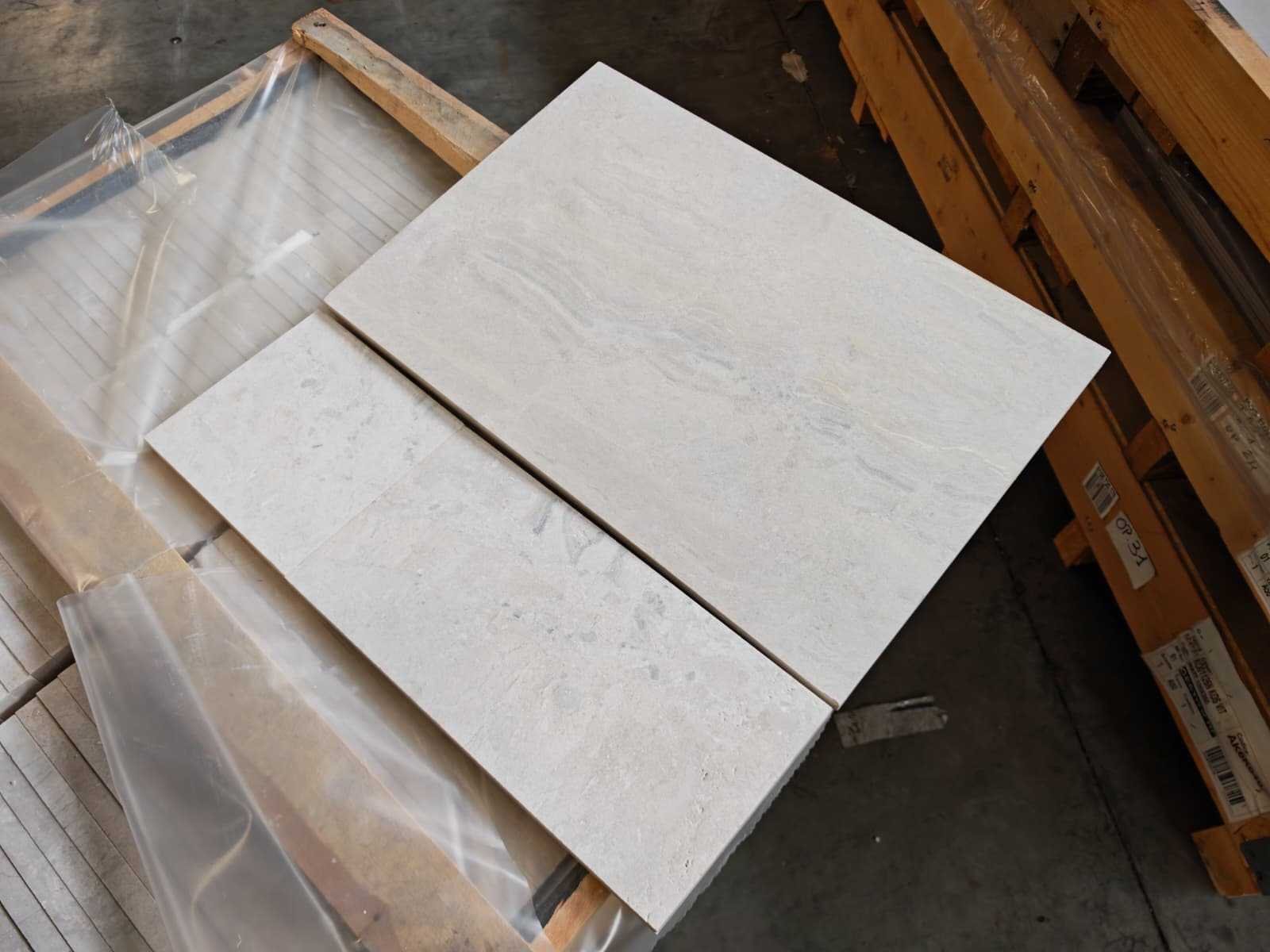 Versaille Pattern 20x20/20x40/40x40/40x60 cm No Merk: Natuursteen Kleur: Beige Afwerking: Getrommeld Lengte: 200mm Breedte: 400mm Dikte: 20mm Materiaal: Marmer Type: Vloertegel Model: Diana Royal Leather Versaille Pattern Aantal m² per verpakking: 1m² Aantal pakken: 25.83 Totaal oppervlakte: 25.83m² Totaal gewicht: 1200kg