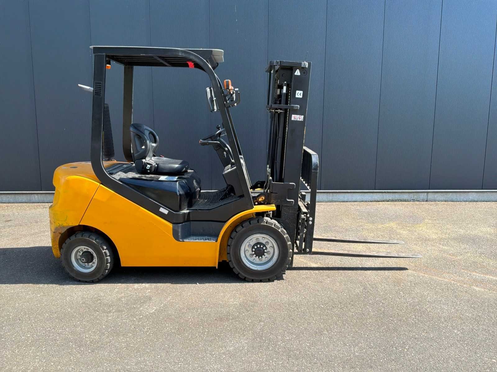 Kubota motor Nee Merk: Zhejiang UN Type: FD25T-NJV1 Bouwjaar: 2022 Serienummer: 22D2500979 Brandstof: Diesel Aantal wielen: 4 Afgelezen urenstand: 399 Free-lift: true Side-shift: true Hydraulisch verstelbare lepels: true Triple mast: true Eigen gewicht: 4295kg Hefvermogen: 2500kg Lepellengte: 1200mm Max. hefhoogte: 4700mm Vol rubber banden: true Minimale doorrijhoogte: 2240mm