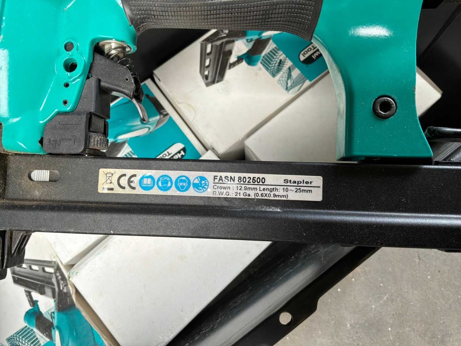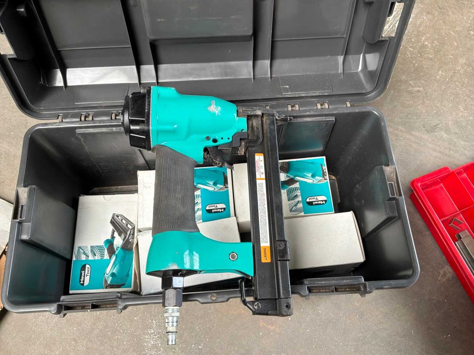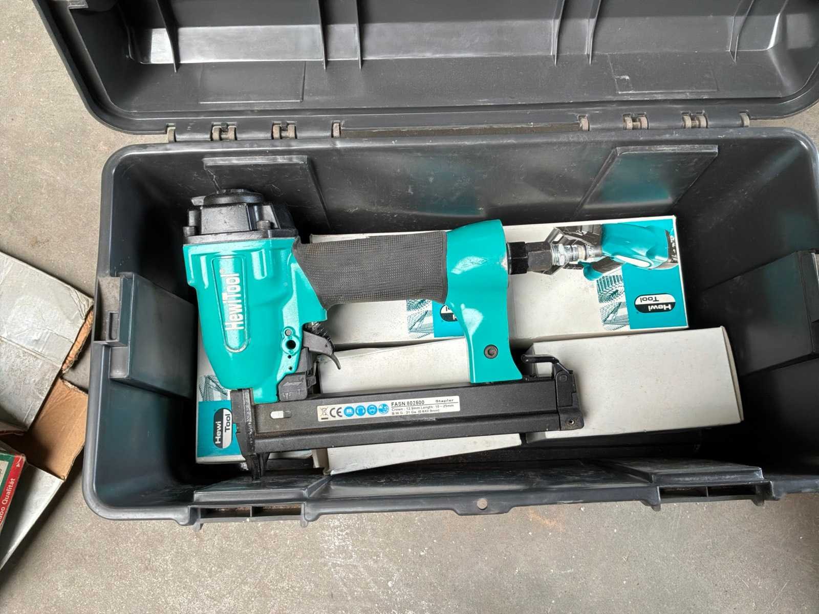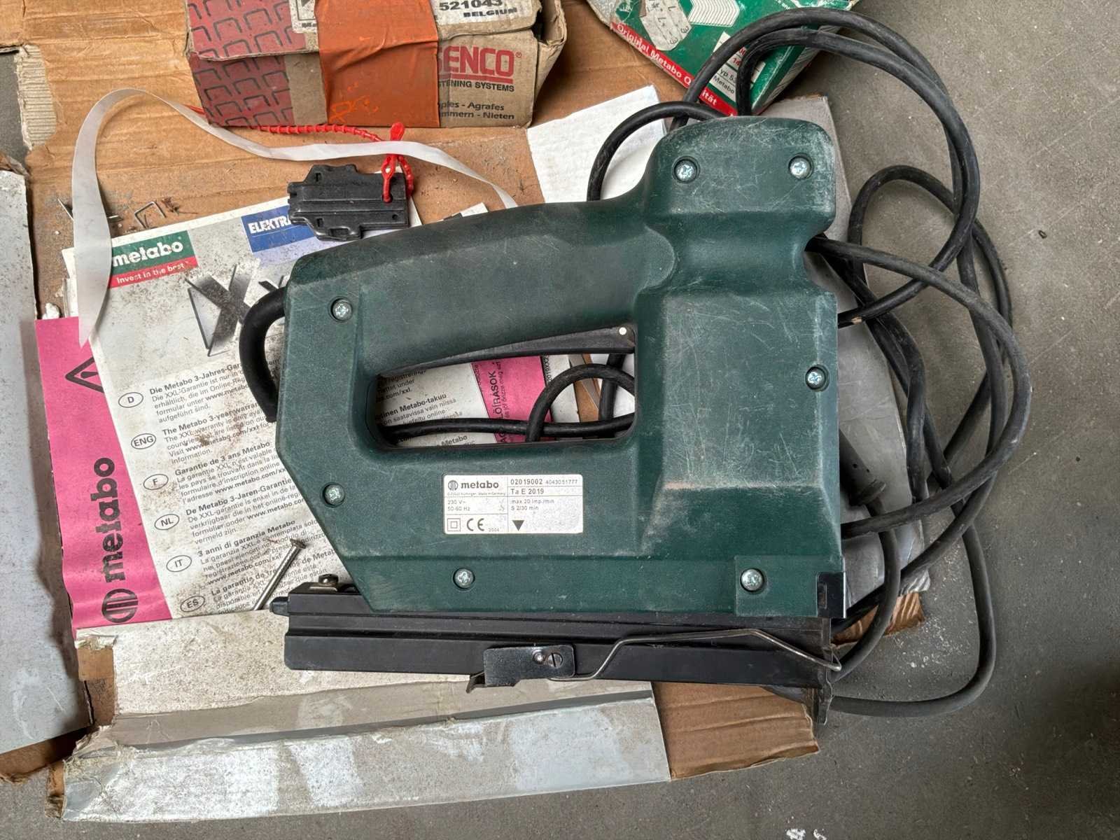 1x Hewitool FASN 802500 pneumatische tacker in koffer met 5x doos nagels. 1x Metabo Ta E 2019 elektrische tacker Nee