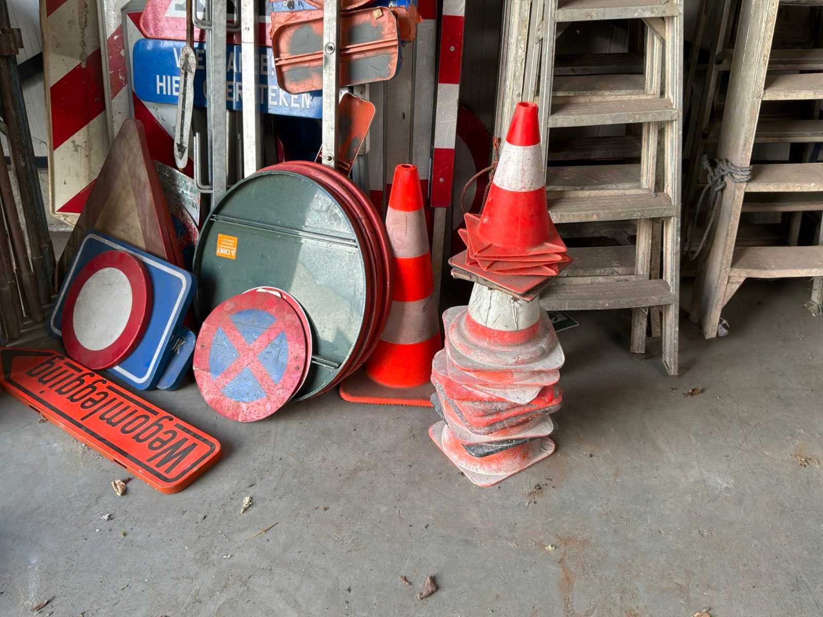 Diverse signalisatie- en verkeersborden, alsook 6x dagslaper, circa 15 signalisatiekegels Nee