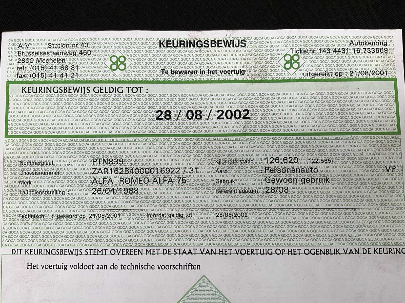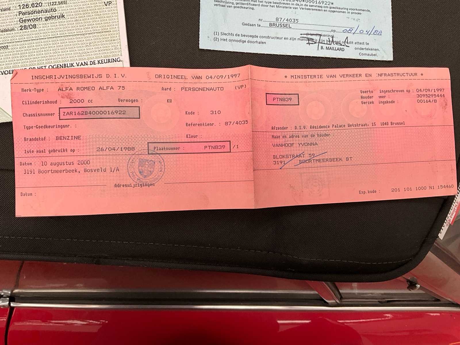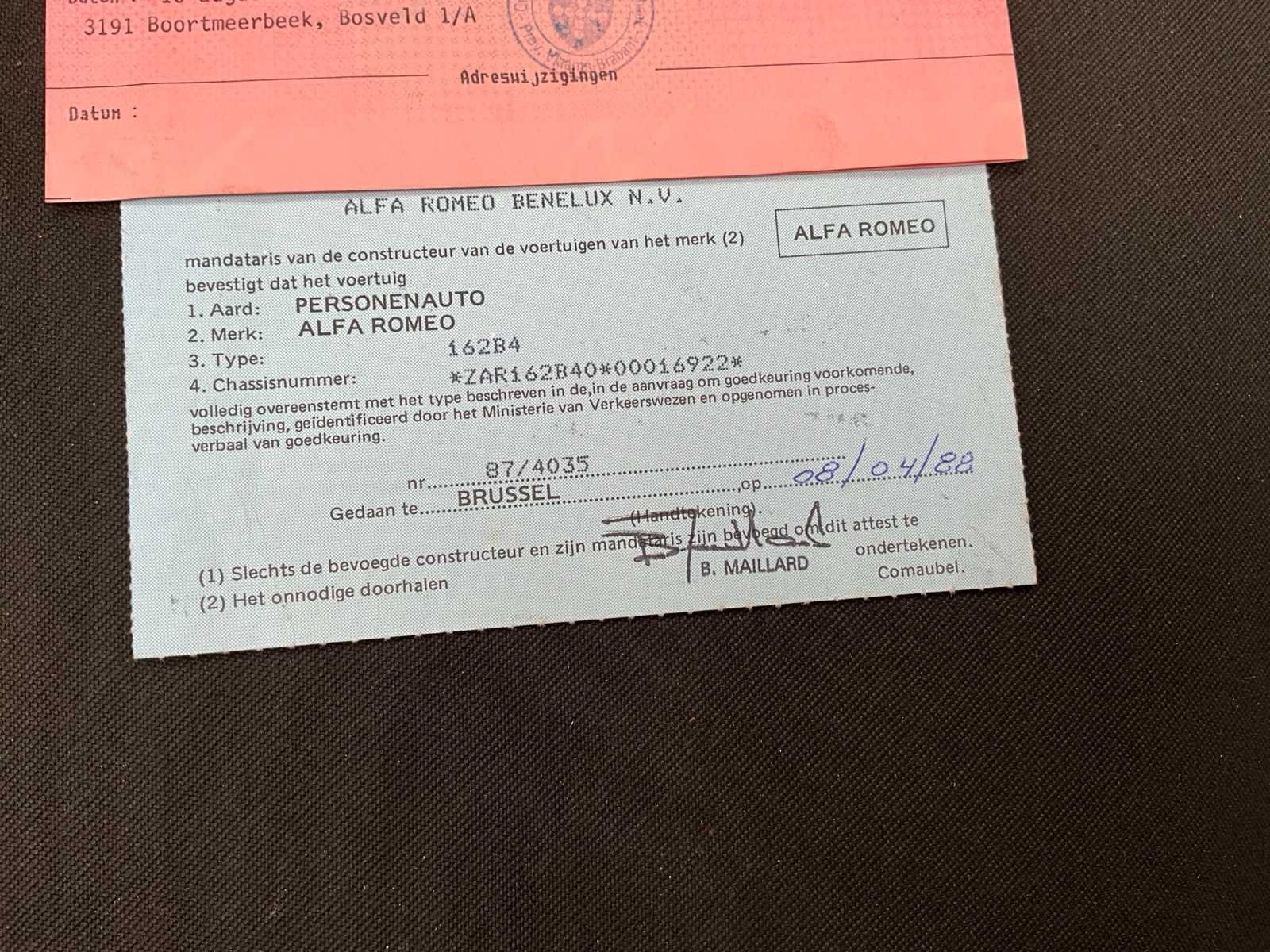 Zeer mooie staat No Merk: ALFA ROMEO Type: Twin sprak Bouwjaar: 1989 Chassisnummer: ZAR162B400016922 Afgelezen kilometerstand: 130106 Model: Twin sprak Brandstof: Benzine Datum eerste inschrijving: 26/04/1988 Boorddocumenten aanwezig?: true Nationaliteit documenten: België Kentekenpapieren compleet?: true Carrosserie: Zeer mooi Transmissie: Manueel Aantal deuren: 4 Aantal zitplaatsen: 4 Stuurwiel: Links Aantal sleutels: 1 Kleur: Rood Cilinderinhoud: 2000 Inschrijvingsbewijs - deel 1 : Ja Inschrijvingsbewijs - deel 2: Ja Gelijkvormigheidsattest aanwezig: true