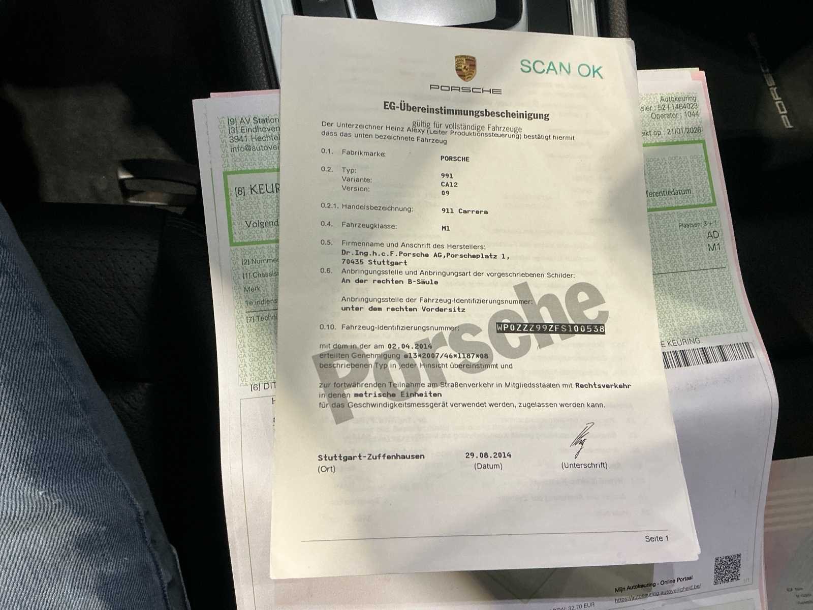 Nieuwe bougies Nieuwe bobijnen Nieuwe luchtfilters Olie Oliefilter Mapsensor Remvloeistof Nieuwe olie + filters op transmissie en automaat Wagen verkeerd zowel technisch als optische in absolute Nieuwstaat No Kenteken: PL-389-P Merk: Porsche Model: 991 Type: Carrera Bouwjaar: 2014 Afgelezen kilometerstand: 102964km Brandstof: Benzine Chassisnummer: WP0ZZZ99ZF5100538 Aantal zitplaatsen: 4 Transmissie: Automaat Nationaliteit documenten: Nederland Gelijkvormigheidsattest aanwezig: true Start en rijdt: Ja
