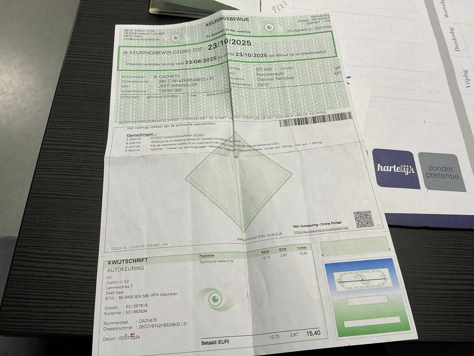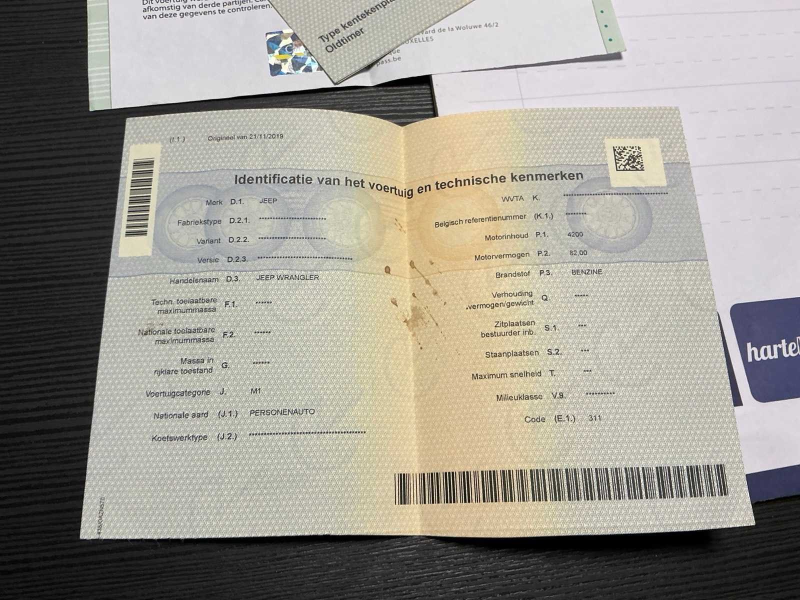 Jeep Wrangler uit 1980, volledig professioneel gerestaureerd. Restauratie uitgevoerd door een gespecialiseerd carrosseriebedrijf, van motorblok tot lak. De wagen verkeert in uitstekende staat, zowel technisch als optisch, met oog voor detail en behoud van het originele karakter.” Nee Merk: Jeep Model: Wrangler 4.2L Bouwjaar: 1987 Cilinderinhoud: 4200cc Vermogen (kW): 82kW Brandstof: benzine Afgelezen mijlenstand: 207703mi Chassisnummer: 2BCCV8142HB52460 Aandrijving: 4X4 Aantal zitplaatsen: 2 Transmissie: Handgeschakeld Aantal sleutels: 2 Nationaliteit documenten: België Gelijkvormigheidsattest aanwezig: true Start en rijdt: Ja Vavato voert geen technische keuring uit.: true Leder bekleed: true Vierwielaandrijving 4x4: true Inschrijvingsbewijs - deel 1 : Aanwezig Inschrijvingsbewijs - deel 2: Aanwezig