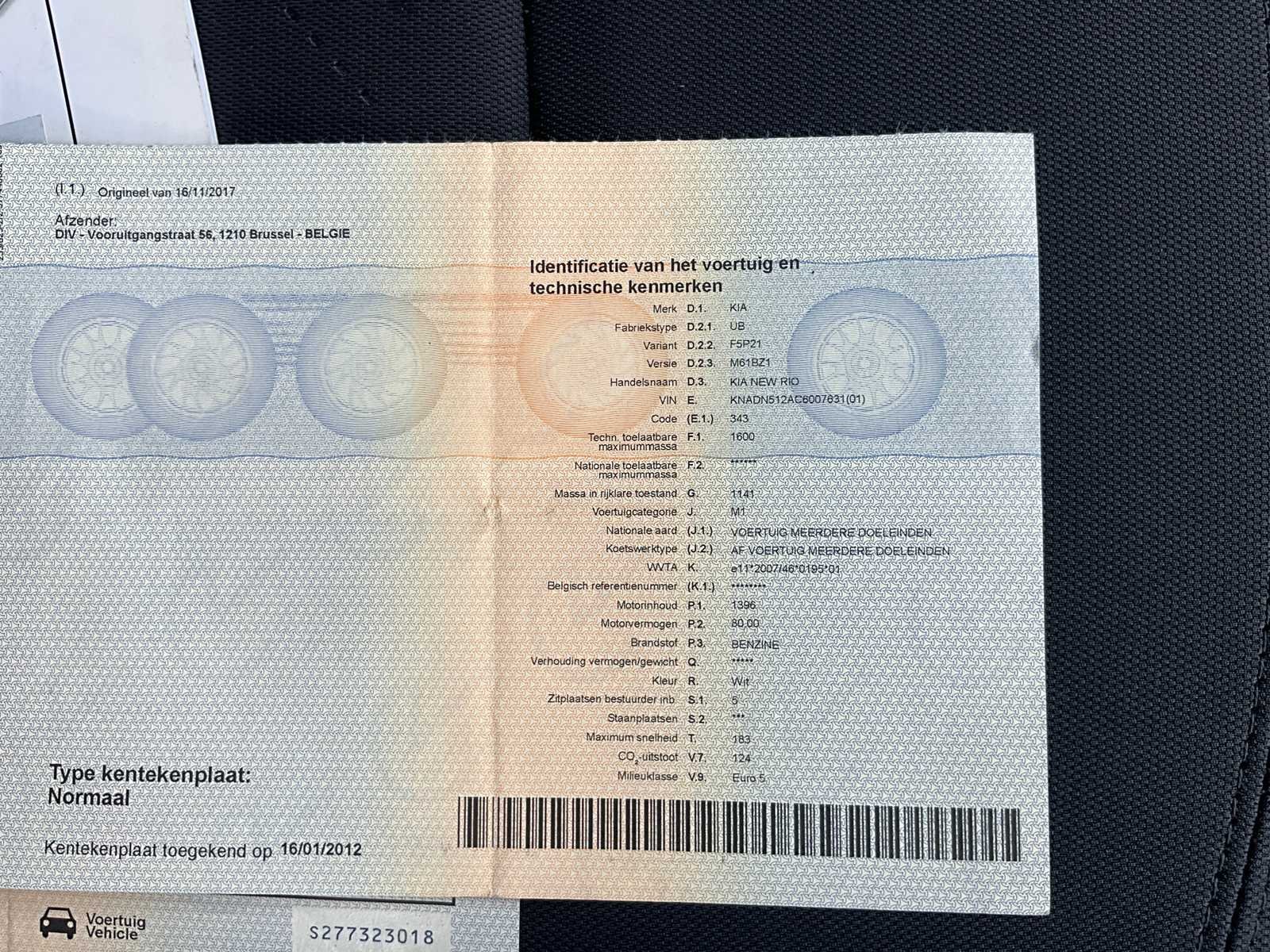 Heeft recent groot onderhoud gehad. Nee Merk: Kia Model: New Rio Bouwjaar: 2012 Afgelezen kilometerstand: 263485km Cilinderinhoud: 1396cc Vermogen (kW): 80kW Brandstof: Benzine Chassisnummer: KNADN512AC6007631 Datum eerste toelating: 16/01/2012 Aantal zitplaatsen: 5 Transmissie: Handgeschakeld Emissieklasse: Euro 5 Aantal deuren: 5 Nationaliteit documenten: Belgisch Carpass: true Start en rijdt: Ja Keuringsrapport geldig tot: 04/2027 startinformatie : Start & rijdt Vavato voert geen technische keuring uit.: true Airconditioning: true Inschrijvingsbewijs - deel 1 : Aanwezig Inschrijvingsbewijs - deel 2: Aanwezig