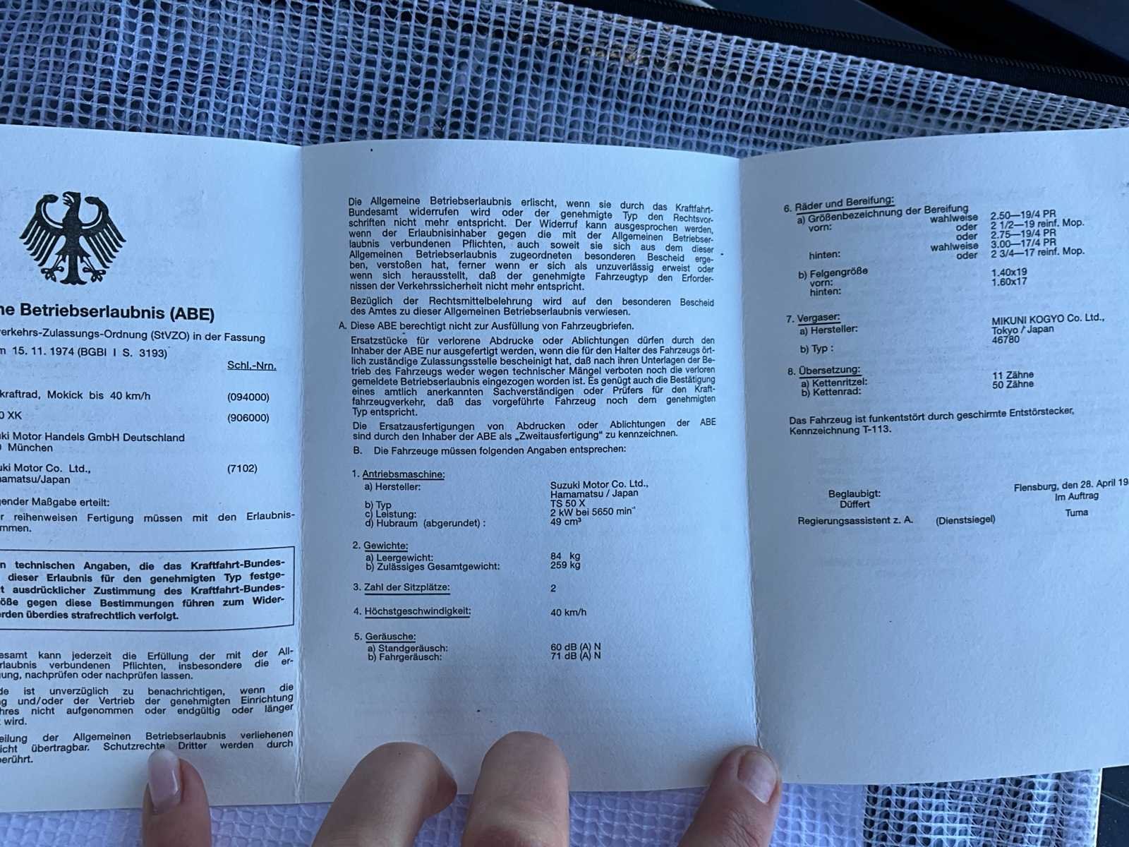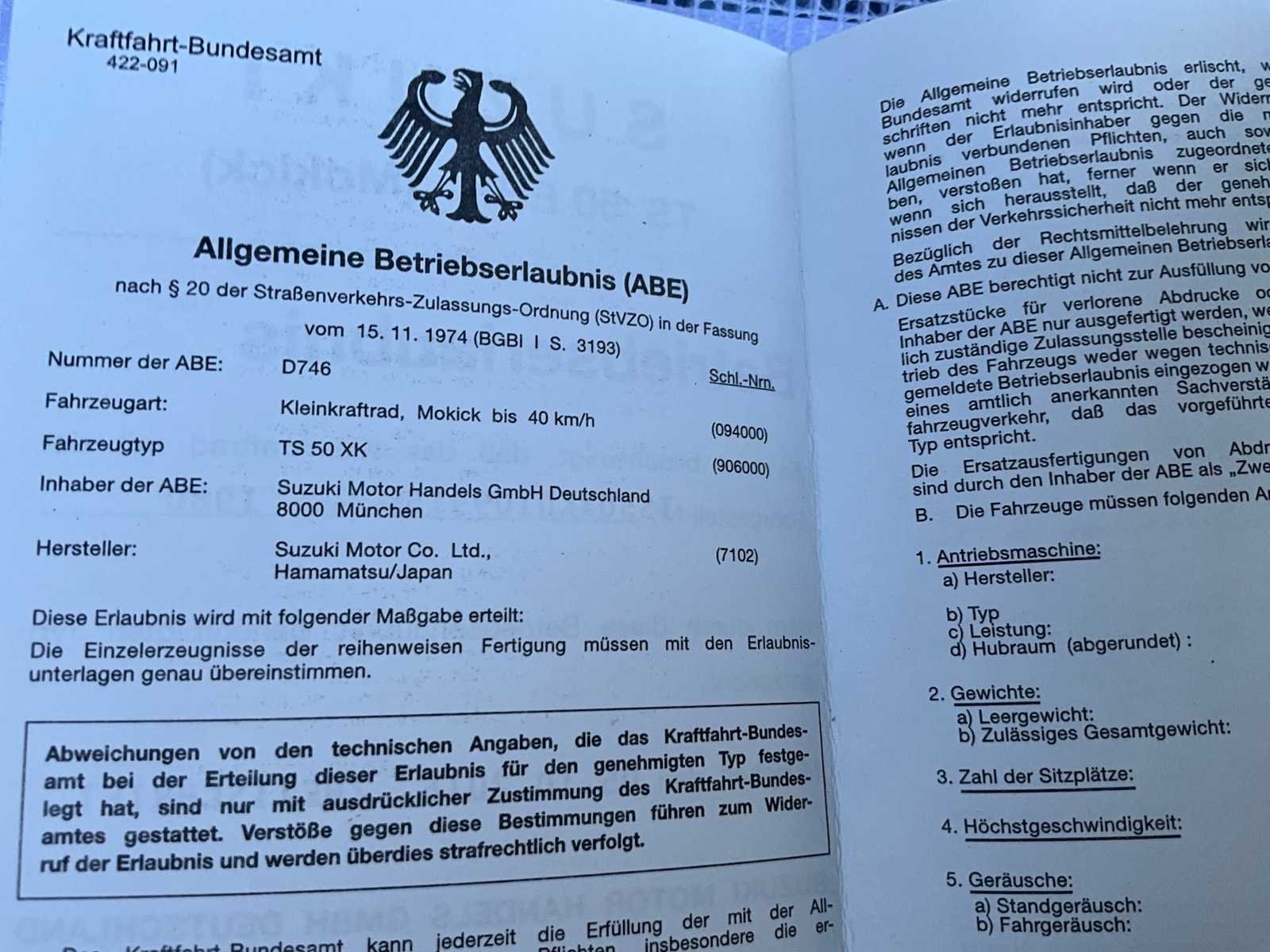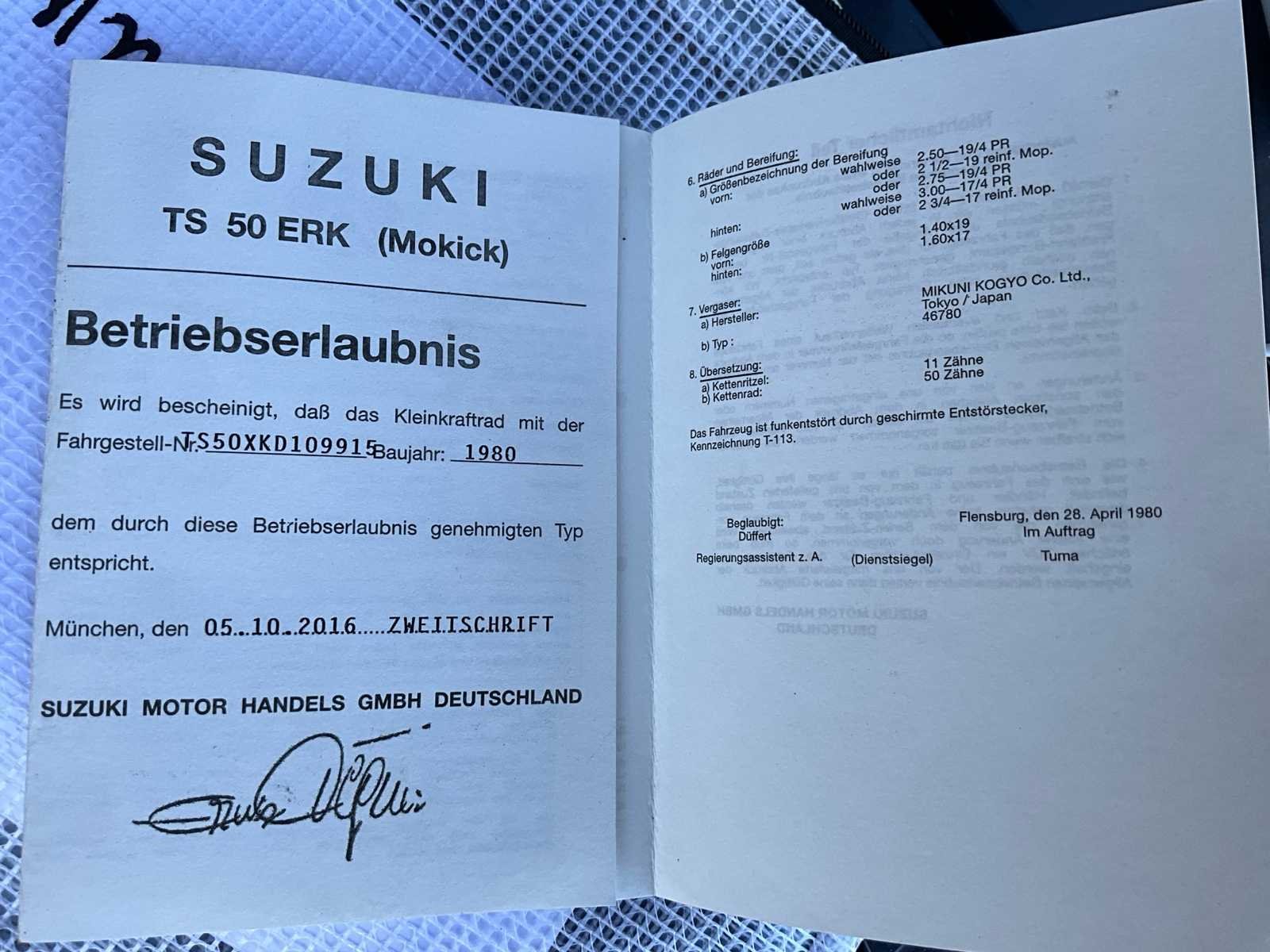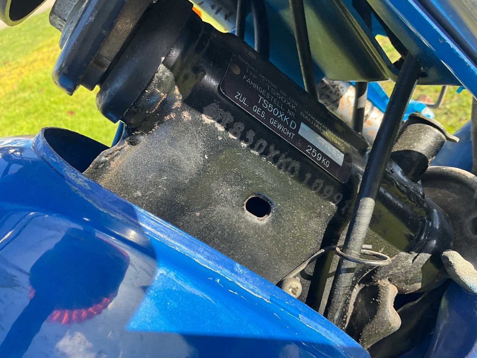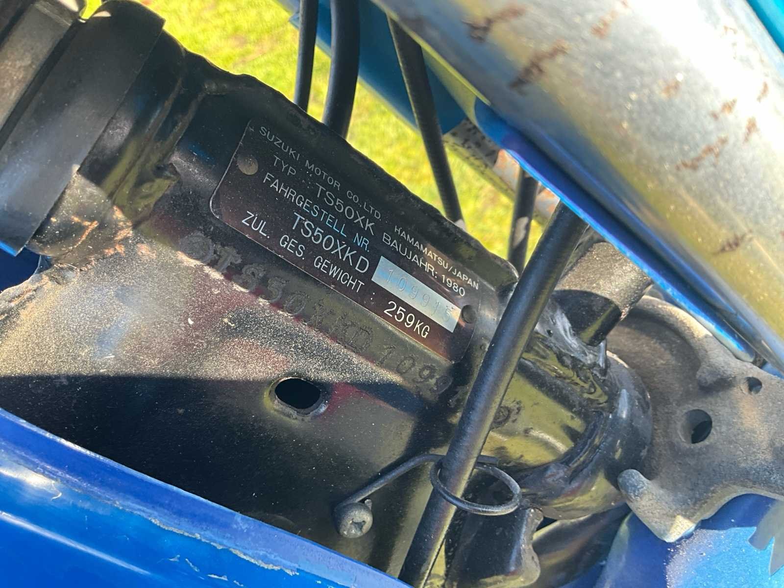 Duitse papieren - start en rijdt perfect No Merk: 1980 Suzuki Model: ER50 Brandstof: benzine Chassisnummer: TS50XKD10991 Cilinderinhoud: 49cc Afgelezen kilometerstand: 6300km Nationaliteit documenten: D Bouwjaar: 1980