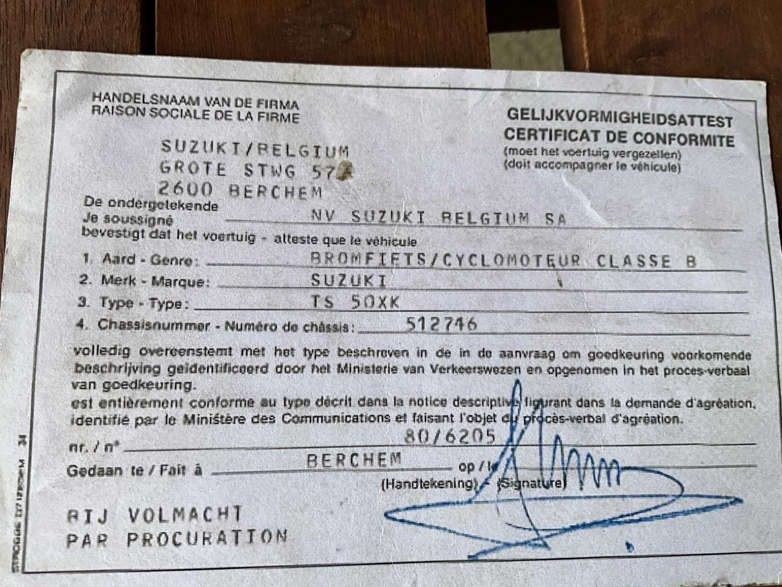 Start vlot en rijdt perfect No Merk: 1980 Suzuki ER21 Type: 50cc Chassisnummer: 512746 Datum eerste toelating: 1/1/1980 Transmissie: manueel Brandstof: benzine Bouwjaar: 1980 Afgelezen kilometerstand: 6042km