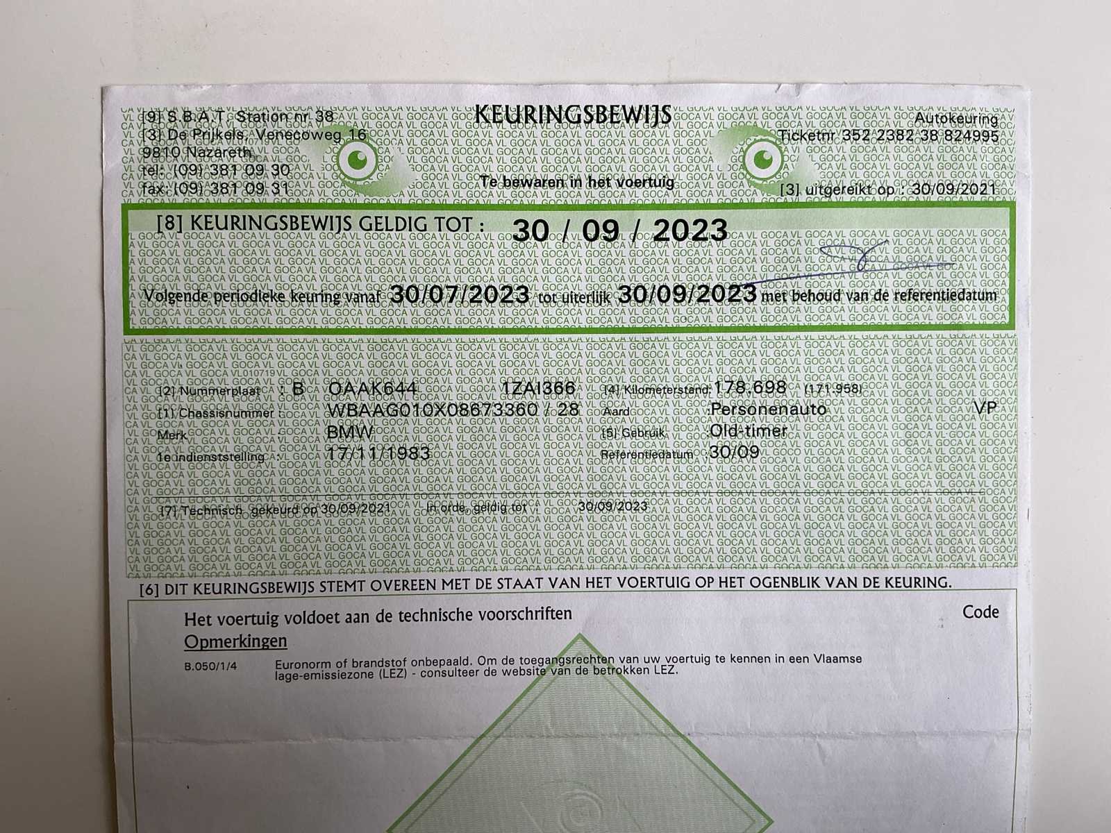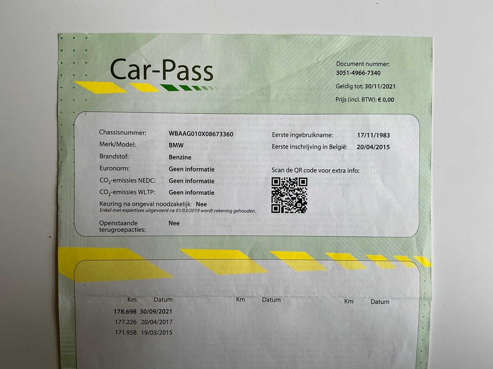 Nee Merk: BMW Bouwjaar: 1983 Chassisnummer: WBAAG010X08673360 Afgelezen kilometerstand: 180548 Brandstof: Benzine Datum eerste toelating: 17/11/1983 Boorddocumenten aanwezig?: true Nationaliteit documenten: BE Carrosserie: Sedan Aandrijving: Achterwiel Transmissie: Handgeschakeld Aantal deuren: 2 Aantal zitplaatsen: 4 Stuurwiel: Links Aantal sleutels: 2 Startinformatie: Start, rijdt, remt Cilinderinhoud: 1600 Aantal cilinders: 4 Inschrijvingsbewijs - deel 1 : Ok Inschrijvingsbewijs - deel 2: Ok