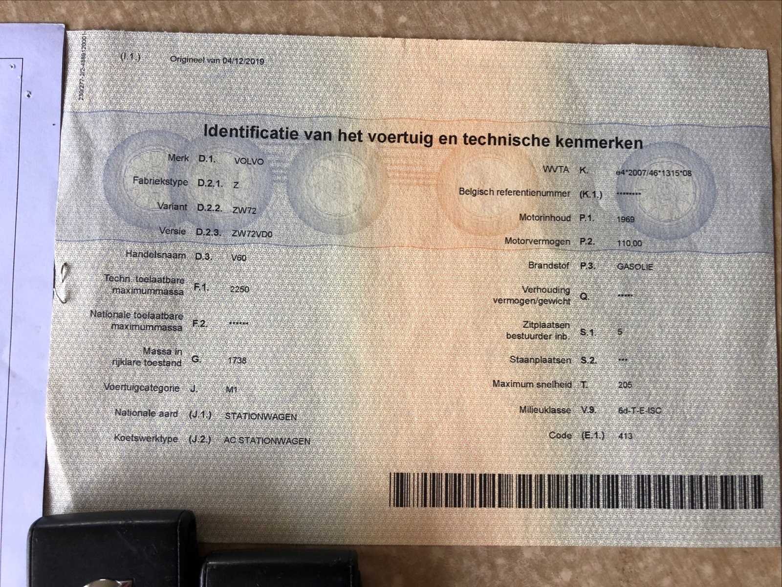 - Elektrisch verstelbare zetels - Multifunctioneel stuur - Zetelverwarming - Airco - Lederen zetels No Merk: Volvo Model: V60 Bouwjaar: 2019 Afgelezen kilometerstand: 215000km Cilinderinhoud: 1969cc Vermogen (kW): 110kW Brandstof: Diesel Chassisnummer: YV1ZW72VDL2372386 Datum eerste toelating: 04/12/2019 Aantal zitplaatsen: 5 Transmissie: Automaat Emissieklasse: 6d-T-E-ISC Aantal deuren: 5 Aantal sleutels: 2 Nationaliteit documenten: Belgisch Start en rijdt: YES Inschrijvingsbewijs - deel 1 : Aanwezig Inschrijvingsbewijs - deel 2: Aanwezig