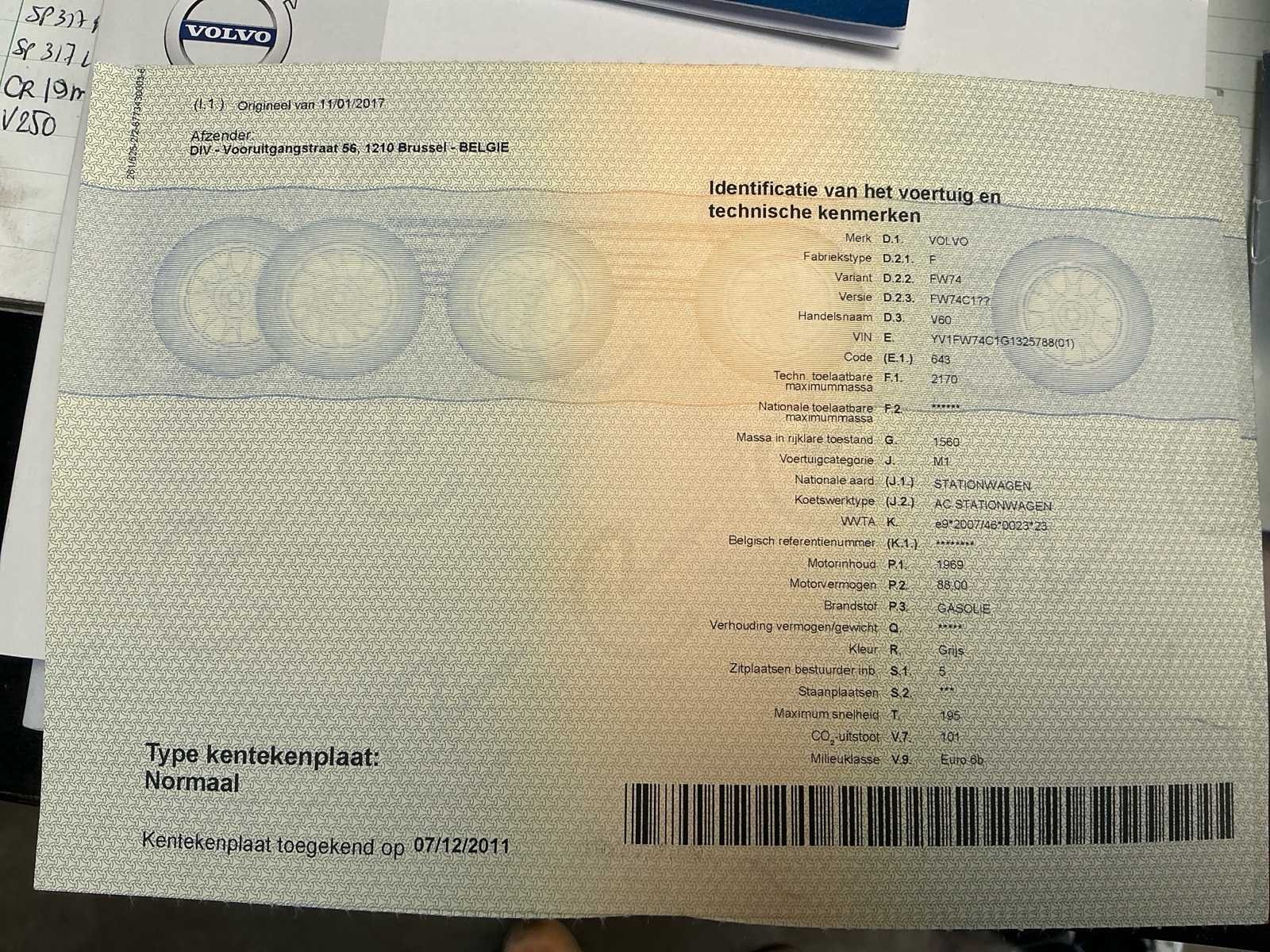 Volvo V60 Ocean Race – Stijlvolle en betrouwbare break Deze Volvo V60 Ocean Race combineert Scandinavisch design met comfort en betrouwbaarheid. Uitgevoerd in een elegante zilveren kleur en voorzien van de kenmerkende Ocean Race-details, biedt deze ruime stationwagen een perfecte balans tussen luxe en functionaliteit. De wagen verkeert in nette staat en is ideaal voor zowel zakelijk gebruik als gezinsritten. Dankzij de comfortabele rijervaring, hoogwaardige afwerking en praktische laadruimte is dit een uitstekende keuze voor wie op zoek is naar een veelzijdige auto met uitstraling. Nee Merk: Volvo Model: V60 Type: Ocean Race Afgelezen kilometerstand: 208007km Cilinderinhoud: 1969cc Vermogen (kW): 88kW Brandstof: Diesel Chassisnummer: YV1FW74C1G1325788 Datum eerste toelating: 11/01/2017 Vermogen (pk): 120hp Aandrijving: FWD Aantal zitplaatsen: 5 Kleur: Grijs Transmissie: Handgeschakeld Drive type: Front wheel Stuurwiel: LHD Emissieklasse: Euro 6b Aantal deuren: 5 Aantal sleutels: 2 Velgmaat: 18" Aantal cilinders: 4 Carrosserie: Break Nationaliteit documenten: Belgisch CO2-uitstoot NEDC: 101 Gelijkvormigheidsattest aanwezig: true Start en rijdt: Ja Keuringsrapport geldig tot: 11/01/2027 Self drive export possible : true Vavato voert geen technische keuring uit.: true Airconditioning: true Navigatie: true Inschrijvingsbewijs - deel 1 : Aanwezig Inschrijvingsbewijs - deel 2: Aanwezig
