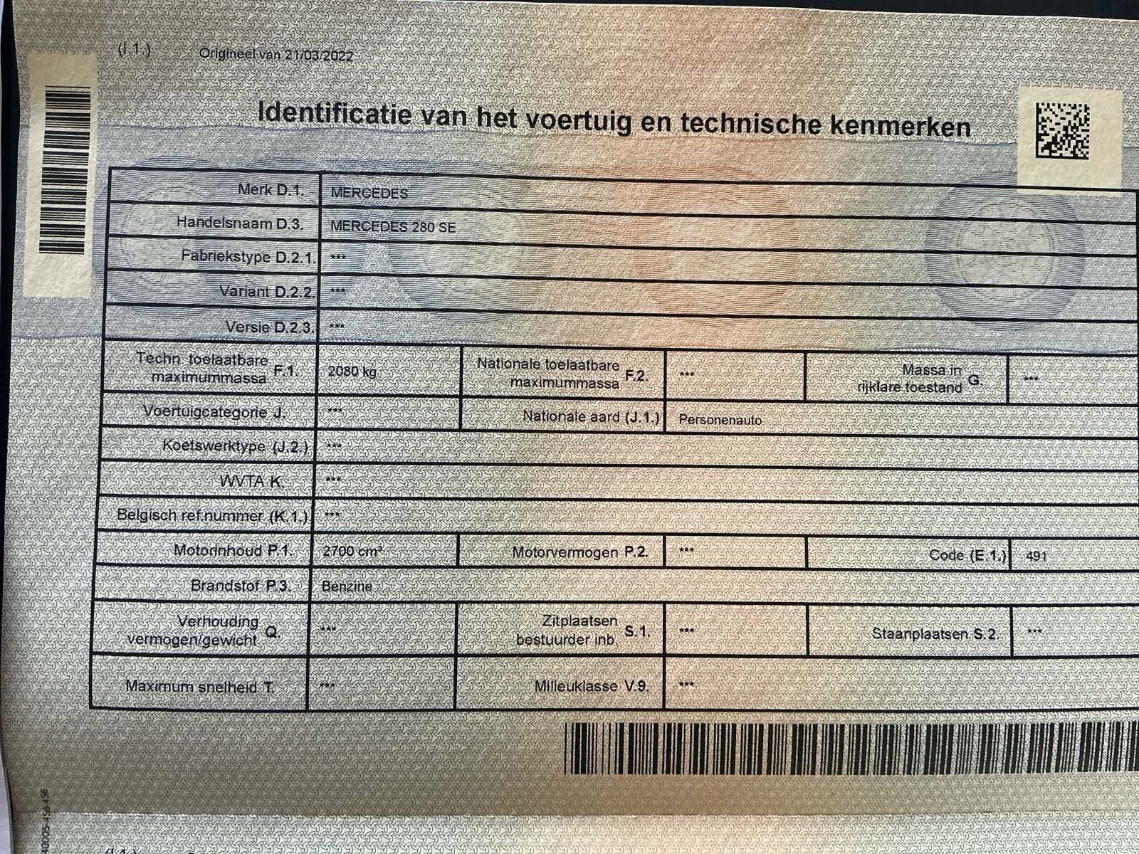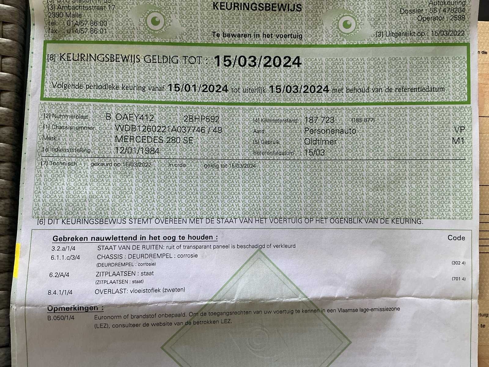 Mercedes-Benz 280 SE (W126) – een tijdloze klassieker die luxe en degelijkheid perfect belichaamt. Deze iconische S-Klasse uit de W126-generatie staat bekend om zijn uitzonderlijke bouwkwaliteit, comfortabele rijgedrag en ingetogen, elegante design. De 280 SE biedt een soepele en betrouwbare rijervaring, ideaal voor liefhebbers van klassieke Mercedes-Benz modellen. Met zijn kenmerkende lijnen, chroomaccenten en statige uitstraling blijft deze wagen een echte blikvanger op de weg met zijn 4 HAXER velgen nieuwprijs €214/stuk. Een waardevaste klassieker die rijplezier combineert met historisch karakter. Voor algemene staat bekijk de foto’s. Er zit een rot gat in de kofferklep, barst in dashboard. ✔️ Iconische W126 S-Klasse ✔️ Betrouwbare 6-cilinder motor ✔️ Comfort en klasse van het hoogste niveau ✔️ Interessant voor verzamelaars en liefhebbers No Merk: Mercedes-Benz Model: W126 S-Klasse 280 SE Afgelezen kilometerstand: 188603km Cilinderinhoud: 2700cc Brandstof: Benzine Chassisnummer: WDB1260221A037746 Datum eerste toelating: 12/01/1984 Aandrijving: RWD Aantal zitplaatsen: 5 Kleur: Grijs Transmissie: Automatisch Drive type: Achterwiel Stuurwiel: LHD Aantal deuren: 5 Aantal cilinders: 6 Carrosserie: Sedan Nationaliteit documenten: Belgisch Start en rijdt: Ja Keuringsrapport geldig tot: 15/03/2024 Inschrijvingsbewijs - deel 1 : Aanwezig Inschrijvingsbewijs - deel 2: Aanwezig