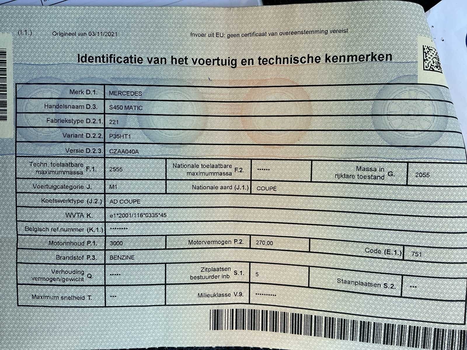 Mercedes-Benz S 450 4MATIC Coupé – waar elegantie en prestaties naadloos samenkomen. Deze luxueuze coupé belichaamt het hoogste niveau van vakmanschap en innovatie. Onder de motorkap zorgt de krachtige zescilinder benzinemotor, gecombineerd met het 4MATIC vierwielaandrijvingssysteem, voor een soepele en zelfverzekerde rijervaring onder alle omstandigheden. Het exterieur straalt pure klasse uit, met zijn vloeiende lijnen, sportieve accenten en tijdloze uitstraling. Binnenin geniet u van een verfijnd interieur met hoogwaardige materialen, geavanceerde technologie en ongeëvenaard comfort – volledig in lijn met wat u van de S-Klasse mag verwachten. ✔️ Krachtige en verfijnde aandrijving ✔️ 4MATIC vierwielaandrijving voor optimale grip ✔️ Hoogwaardig afgewerkt interieur ✔️ Iconisch design met sportieve elegantie Een representatieve keuze voor wie compromisloze luxe en prestaties wenst te combineren No Merk: Mercedes-Benz Model: S450 MATIC Afgelezen kilometerstand: 32278km Cilinderinhoud: 3000cc Vermogen (kW): 270kW Brandstof: Benzine Chassisnummer: W1K2173641A050148 Datum eerste toelating: 19/02/2020 Vermogen (pk): 370hp Aantal zitplaatsen: 4 Kleur: Zwart Transmissie: Automatisch Drive type: Vierwiel Stuurwiel: LHD Aantal deuren: 3 Velgmaat: 20" Aantal cilinders: 6 Carrosserie: Coupé Nationaliteit documenten: Belgisch CVO verklaring: true Start en rijdt: Ja Keuringsrapport geldig tot: 19/02/2026 Vavato voert geen technische keuring uit.: true Airconditioning: true Navigatie: true Xenon verlichting: true Leder bekleed: true Inschrijvingsbewijs - deel 1 : Aanwezig Inschrijvingsbewijs - deel 2: Bewijs van politie