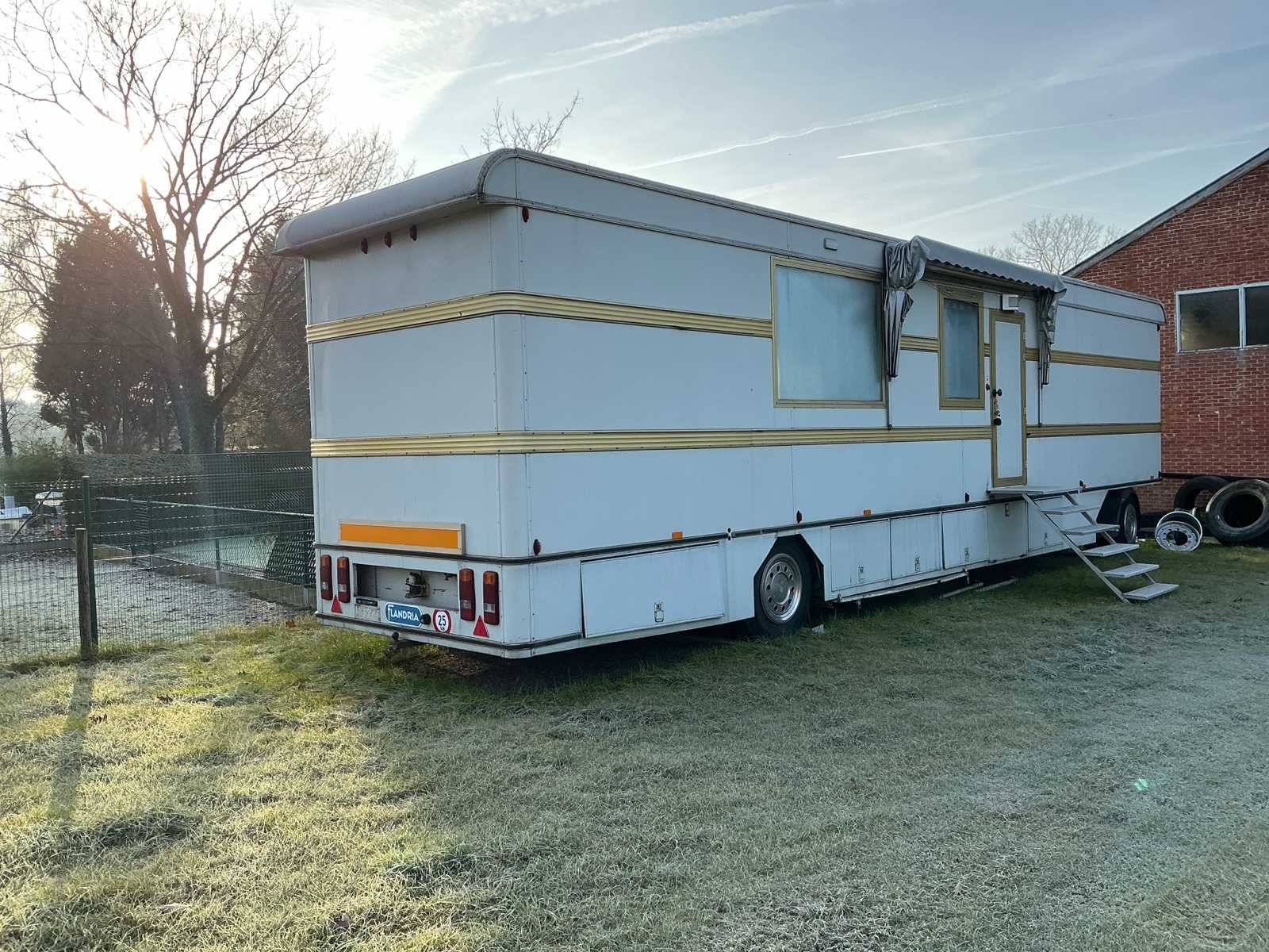 Mooie woonwagen als project of direct inzetbaar. Zie foto’s en video voor alle details. Opstelling bestaande uit 2 slaapkamers: 1 met stapelbed voor 2 personen en 1 grote slaapkamer met dubbelbed voor 2 personen, voorzien van open keuken ( gasvuur en koelkast - diepvries combinatie ) met living en badkamer en overal tal van opbergmogelijkheden zowel in da wagen als in het onderstel. Gewicht is geschat tussen de 12000 kg en 15000 kg Nee Chassisnummer: 140058 Aantal sleutels: 3 Bouwjaar: 1984 Lengte: 1200cm Breedte: 250cm Hoogte: 380cm