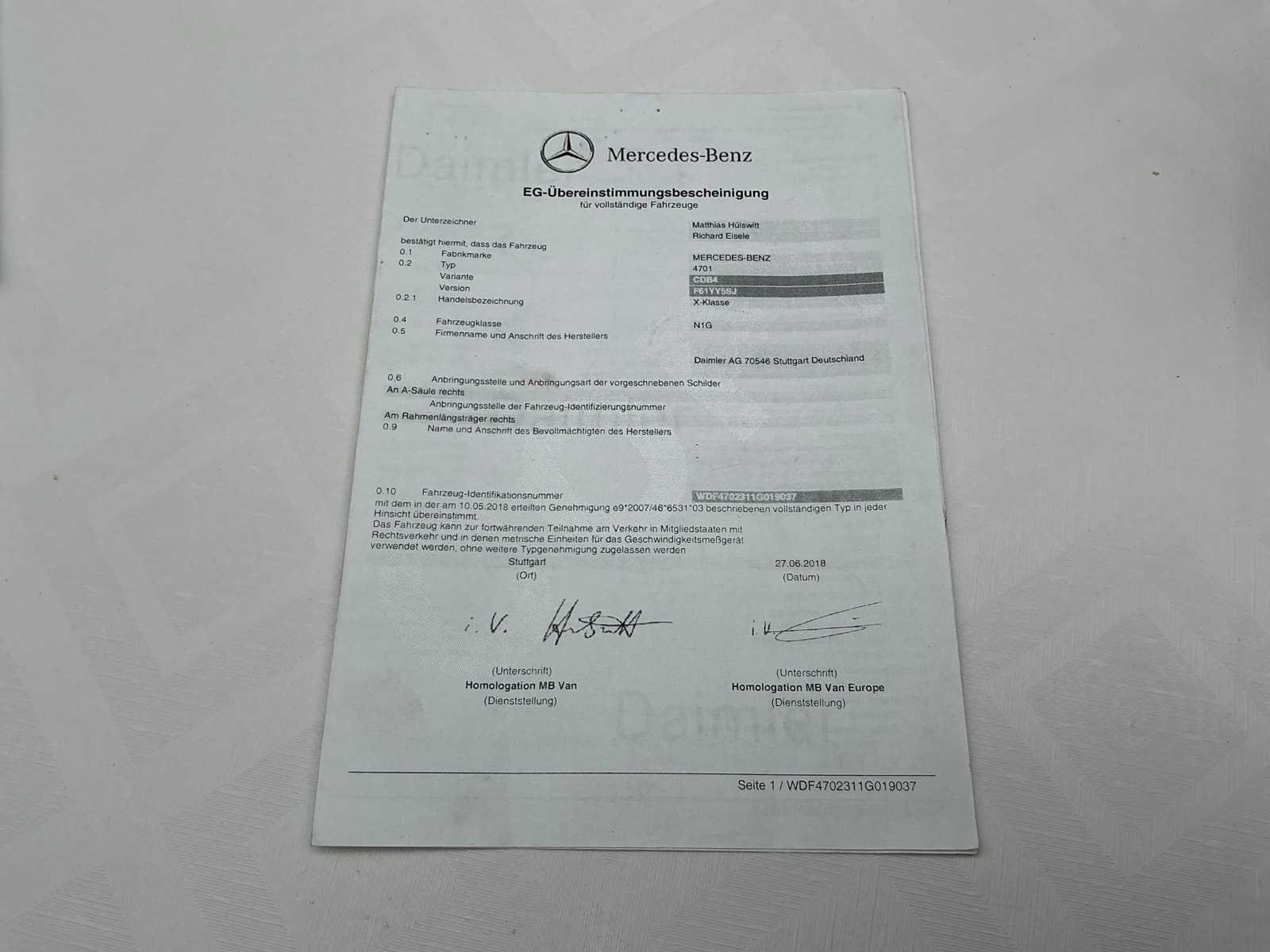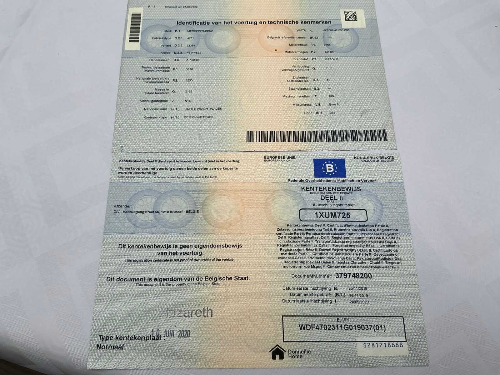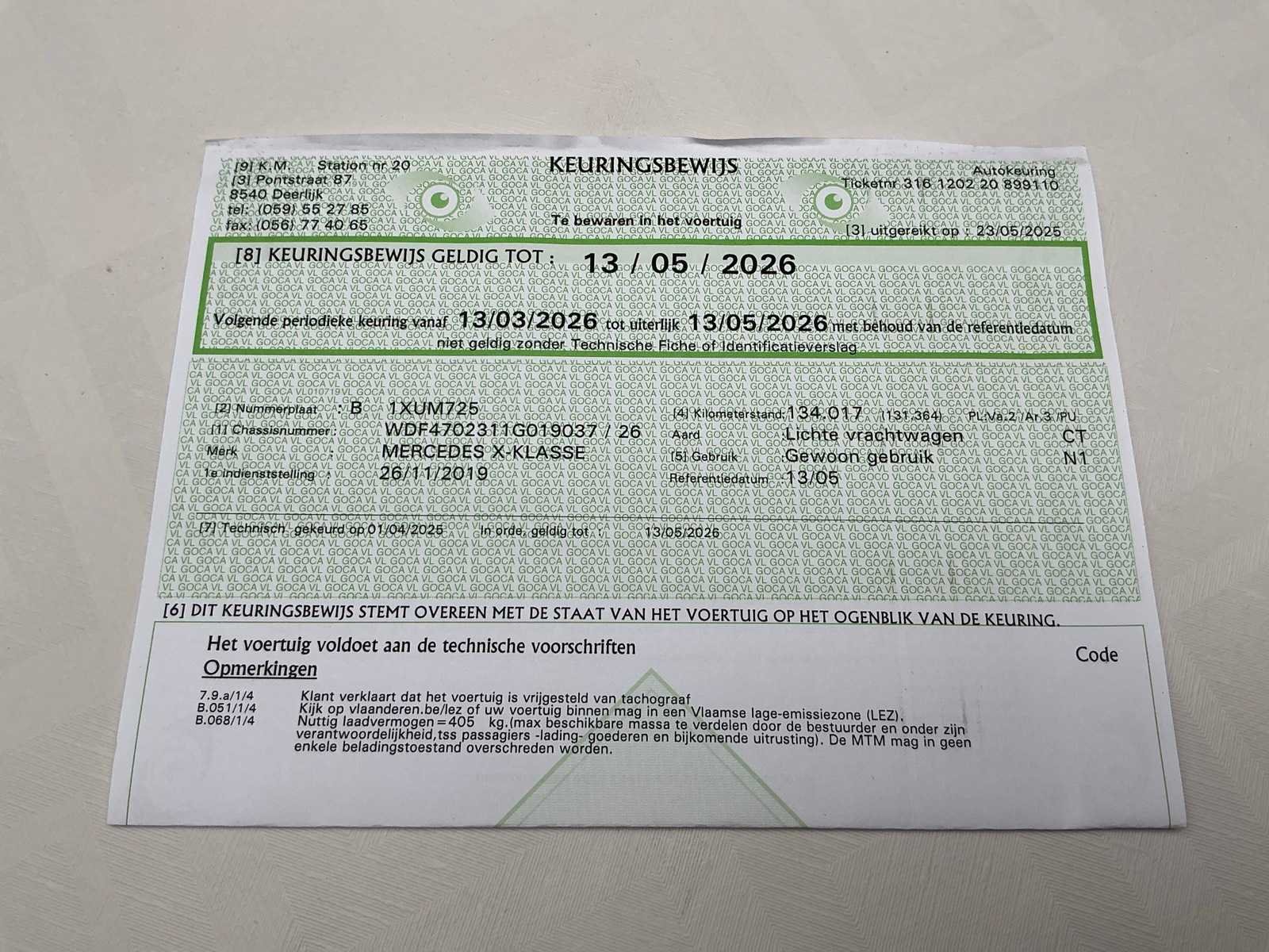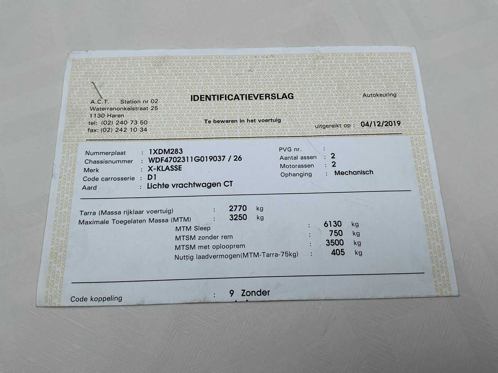 No Kenteken: 1XUM725 Merk: Mercedes-Benz Model: X-Klasse Bouwjaar: 2019 Afgelezen kilometerstand: 154798km Cilinderinhoud: 2298cc Vermogen (kW): 140kW Brandstof: diesel Chassisnummer: WDF4702311G019037 Datum eerste toelating: 26/11/2019 Aantal zitplaatsen: 5 Transmissie: Handgeschakeld Emissieklasse: Euro 5b Nationaliteit documenten: Belgische Start en rijdt: Ja Keuringsrapport geldig tot: 13/05/2026 Vavato voert geen technische keuring uit.: true Inschrijvingsbewijs - deel 1 : Aanwezig Inschrijvingsbewijs - deel 2: Aanwezig