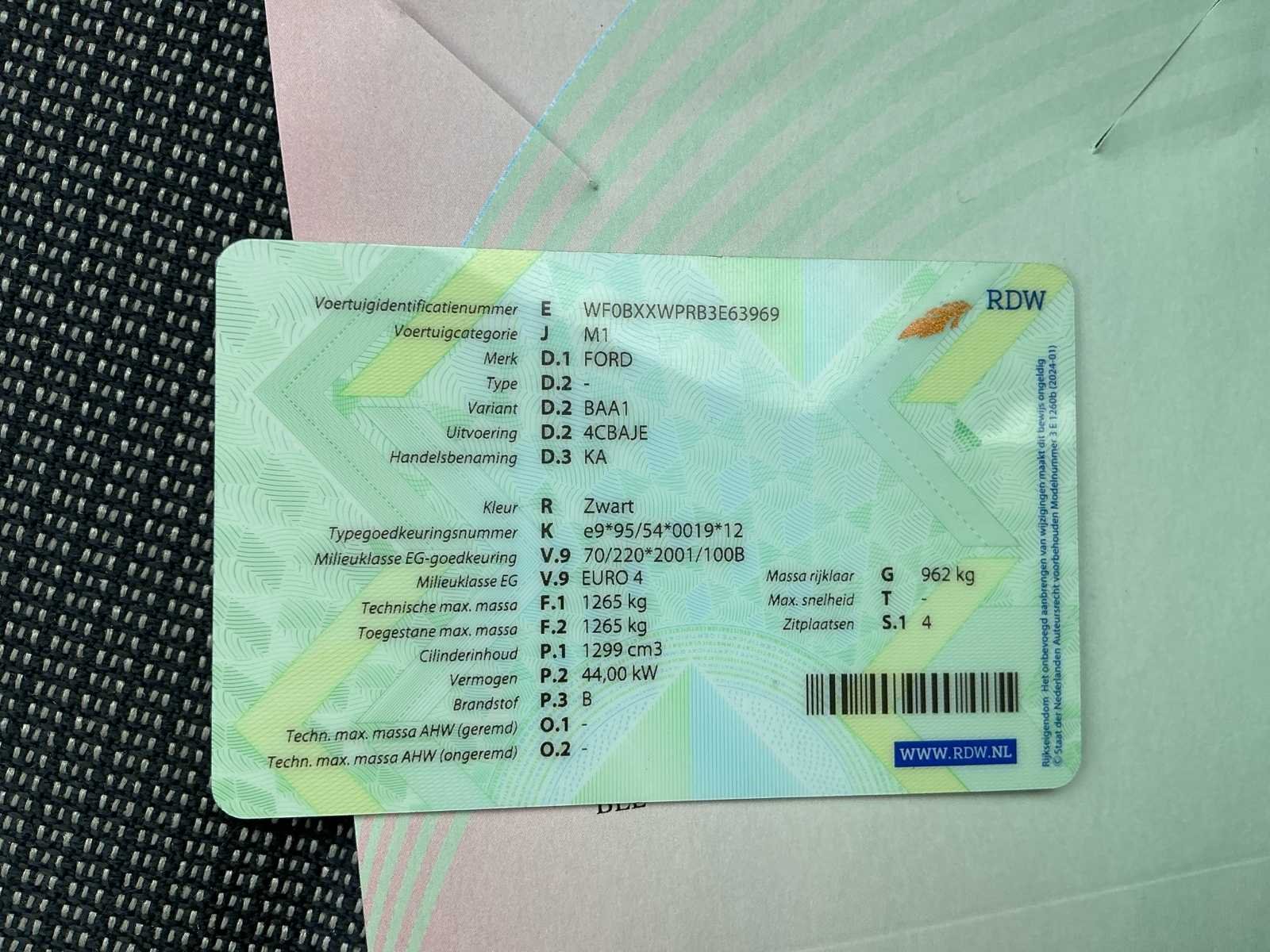Stat en rijd goed Scheur in voorruit No Merk: Ford Model: KA Bouwjaar: 2003 Afgelezen kilometerstand: 186299km Cilinderinhoud: 1299cc Vermogen (kW): 44kW Brandstof: Benzine Chassisnummer: WF0BXXWPRB3E63969 Datum eerste toelating: 07/05/2003 Datum eerste toelating (NL): 07/05/2003 Aantal zitplaatsen: 4 Kleur: Zwart Transmissie: Handgeschakeld Stuurwiel: Links Aantal deuren: 3 Aantal sleutels: 2 Nationaliteit documenten: Nederlands Self drive export possible : true Vavato voert geen technische keuring uit.: true Inschrijvingsbewijs - deel 1 : JA Inschrijvingsbewijs - deel 2: JA